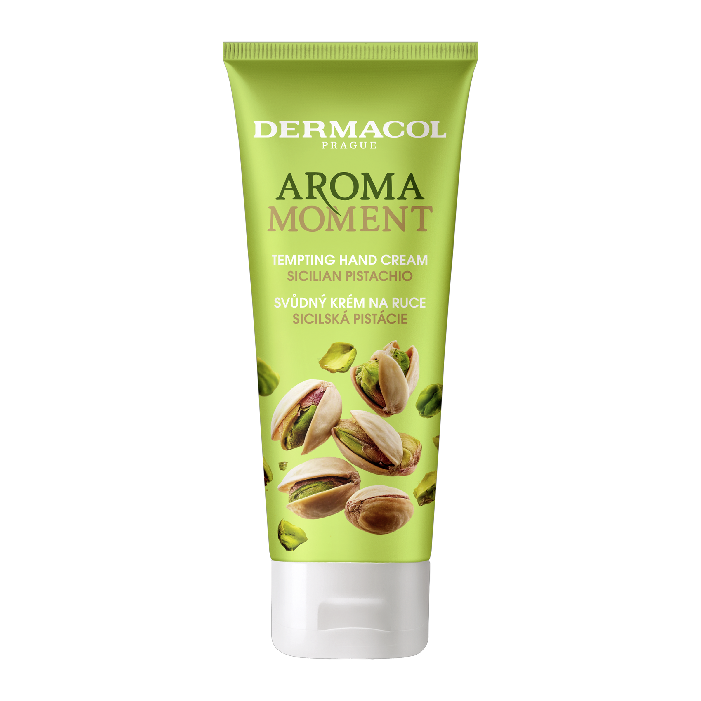 Zvláčňující krém na ruce Aroma Moment s vůní pistáciových ořechů poskytuje namáhané pokožce rukou kvalitní péči a ochranu po celý den. Díky obsahu vitamínu E, panthenolu a olivového oleje navíc podporuje její regeneraci, hydrataci a také zpomaluje stárnutí. Po aplikaci krému je kůže jemná a zvláčněná. Ochranu a výživu poskytuje i nehtům. Svůdná vůně pistácií, které se nebudete moci nabažit, vás přenese do horkých letních dní ke kopečku pistáciové zmrzliny. Dokonalá relaxace všech vašich smyslů a uvolnění nahromaděného stresu, to je krém na ruce Aroma Moment Sicilská pistácie.