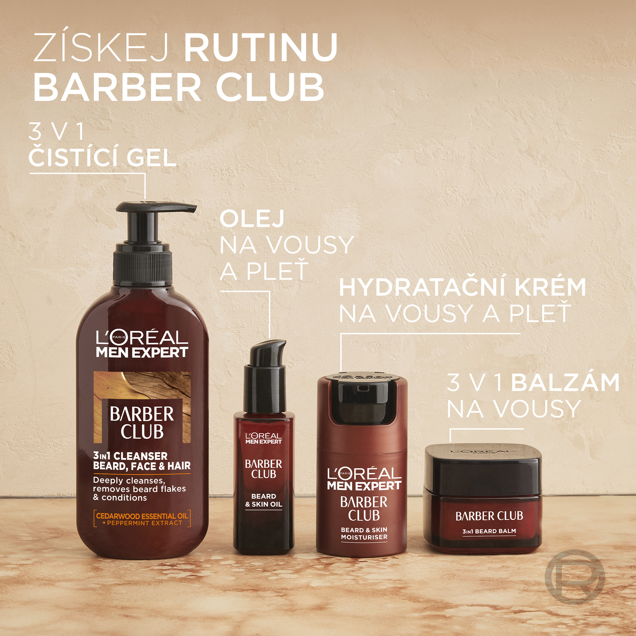 L'Oréal Paris Men Expert Barber Club Beard Cream je přípravek obsahující esenciální olej z cedrového dřeva pro zdravý vzhled vousů. Esenciální olej z cedrového dřeva - má zemitou, uklidňující, dřevitou vůni. Pomáhá udržovat zdravý vzhled vousů. Má čisticí a přirozeně dezodorační vlastnosti.