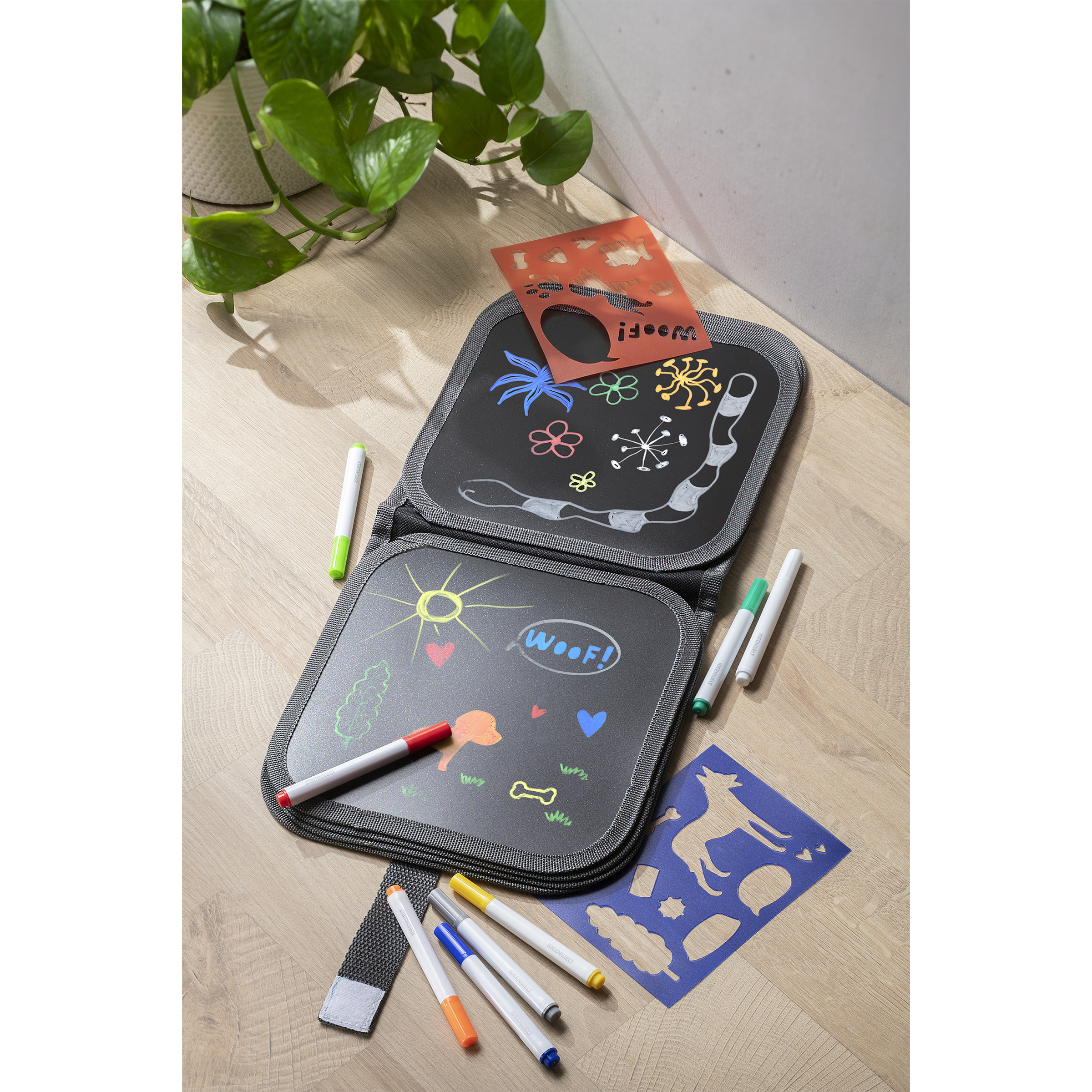 - se 14 stranami, 8 křídovými fixy a 2 šablonami