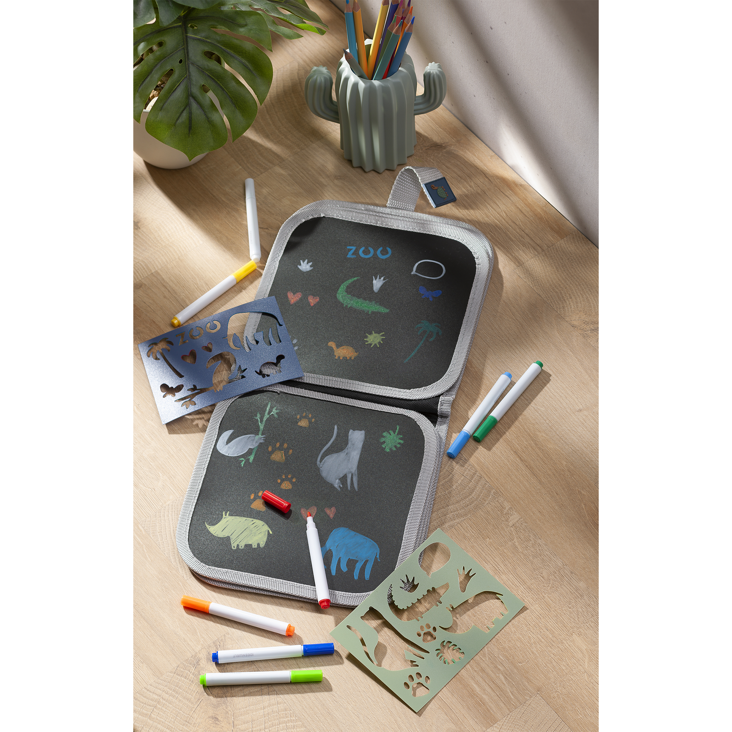 - se 14 stranami, 8 křídovými fixy a 2 šablonami