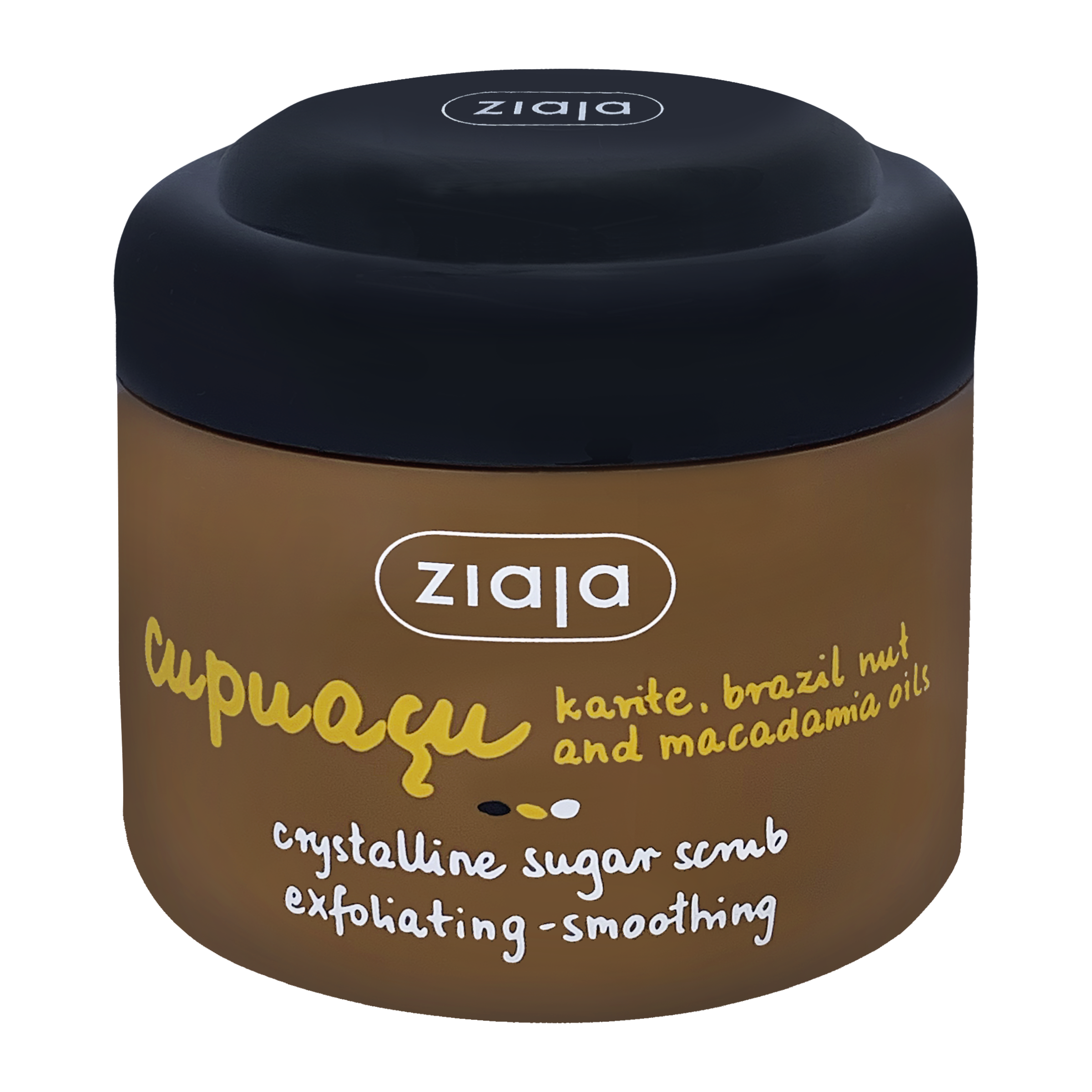 Krystalický cukrový peeling s máslem Cupuacu pro všechny typy pokožky. Máslo Cupuacu ze semen amazonského stromu Theobroma grandiflorum s chutnými plody a krásnými květy. Má vysoký obsah nasycených a nenasycených mastných kyselin. Vykazuje pozoruhodné výživné a regenerační vlastnosti. Intenzivně hydratuje pokožku, zjemňuje ji a obnovuje správnou elasticitu a obsahuje přírodní filtr proti UV záření. Rozpouští se při teplotě těla. Peeling jemně myje, exfoliuje, změkčuje a vyhlazuje pokožku. Obsahuje krystalický cukr a jemnou drť skořápek ořechů, které aktivují pokožku během masírování a vyhlazují svrchní vrstvu pokožky. Snižuje drsnost a suchost pokožky. Vytváří na pokožce ochranný saténový film a poskytuje příjemnou a podmanivou vůni. Máslo cupuacu a máslo karité tvoří na povrchu pokožky ochranný saténový film. Redukují drsnost, suchost a nadměrné loupání pokožky. Zaručují efekt měkké pokožky. Makadamiový olej a olej z brazilských para ořechů vyživují a chrání svrchní vrstvu pokožky. Jemně myjí a pečují o pokožku. Chrání pokožku před vysoušením během mytí. Cukr a přírodní skořápky ořechů aktivují pokožku během masírování, jemně odstraňují a vyhlazují svrchní vrstvu pokožky.