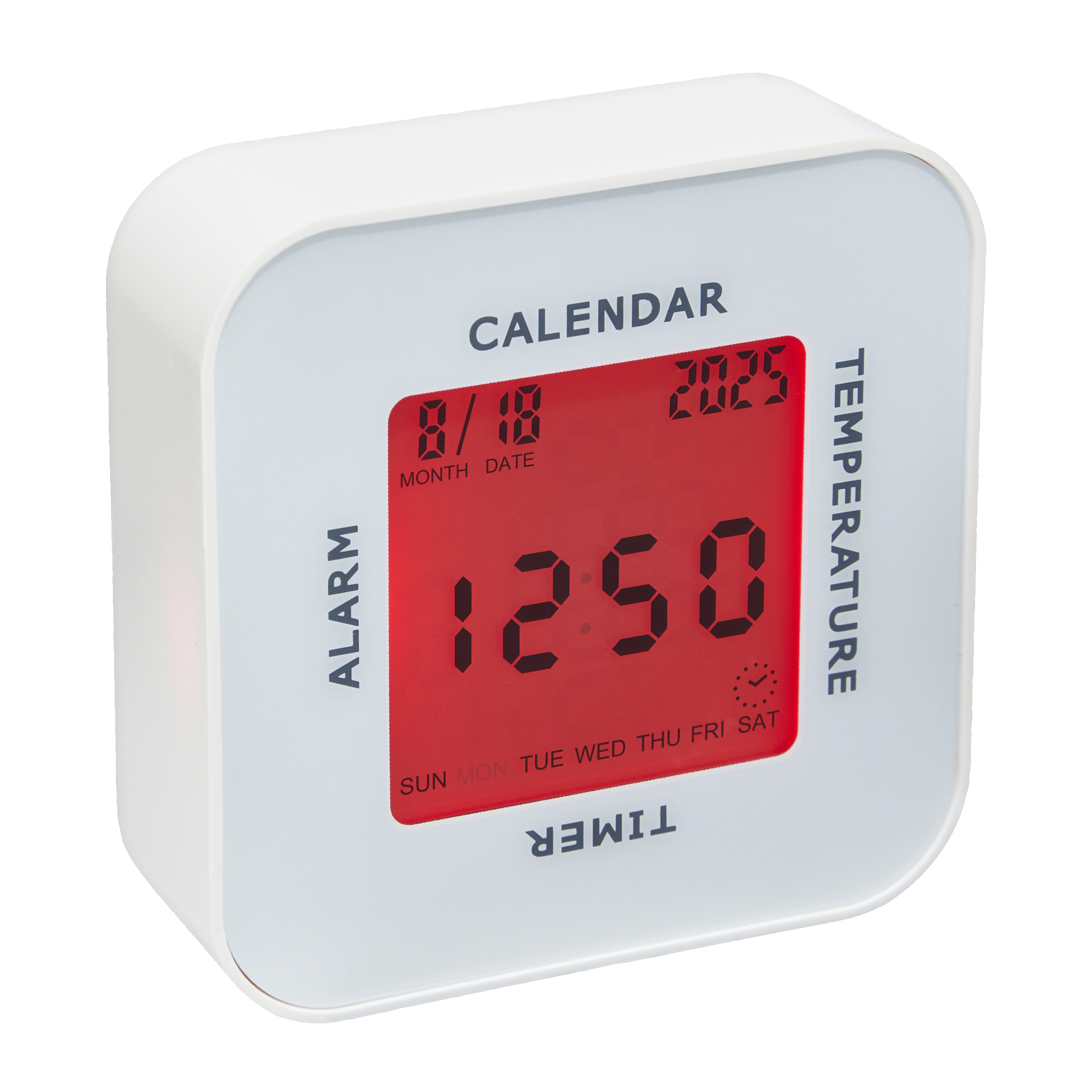 - S funkcí časovače, zobrazením času, teploty a kalendářem