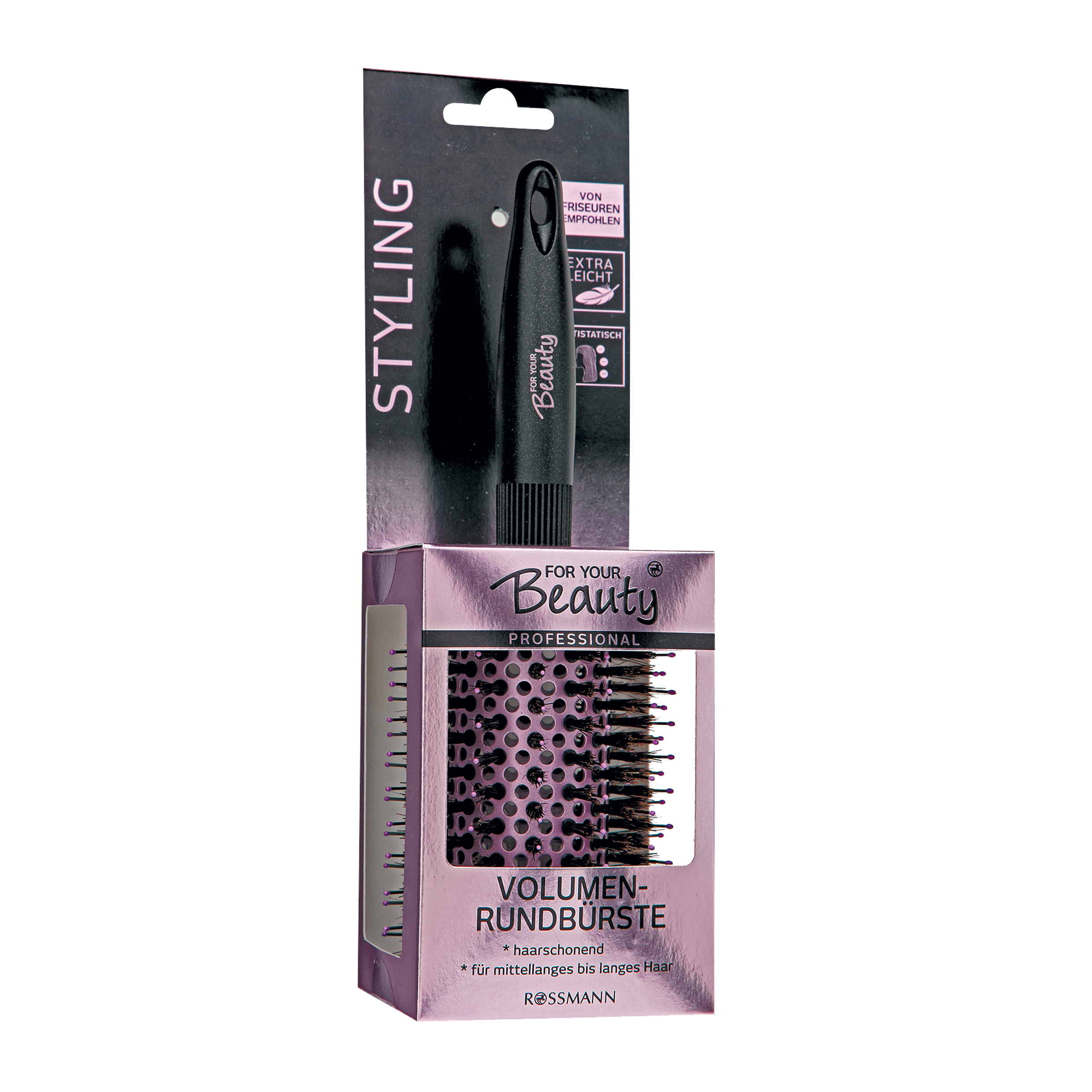 Profesionální stylingový kulatý kartáč s ergonomickou hlavou s průměrem 45 mm, vhodný pro styling horkým vzduchem a vytvoření velkého objemu vlasů. Kombinace plastových a klasických štětin zajistí, aby vlasy po fénování zůstaly saténově lesklé. Vyrobeno s antistatickou úpravou. S praktickým očkem pro zavěšení.