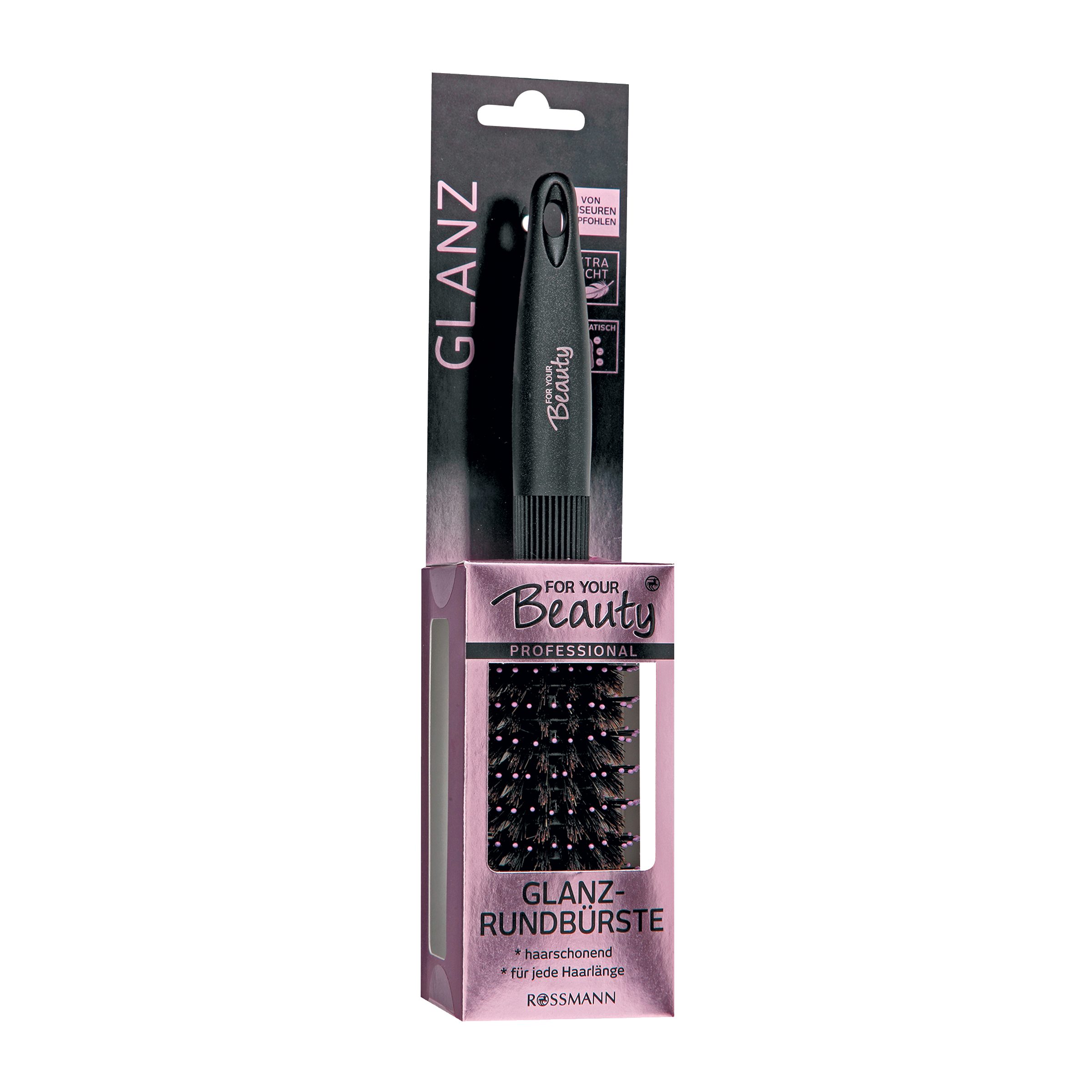 Profesionální kulatý kartáč na vlasy, který dodává lesk. Díky zakřiveným přírodním štětinám dokáže pojmout více vlasů a poskytne jim lesklý vzhled při úpravě účesu. Vhodný pro všechny typy a délky vlasů při každodenním používání. Vyrobeno s antistatickou úpravou. S praktickým očkem pro zavěšení.