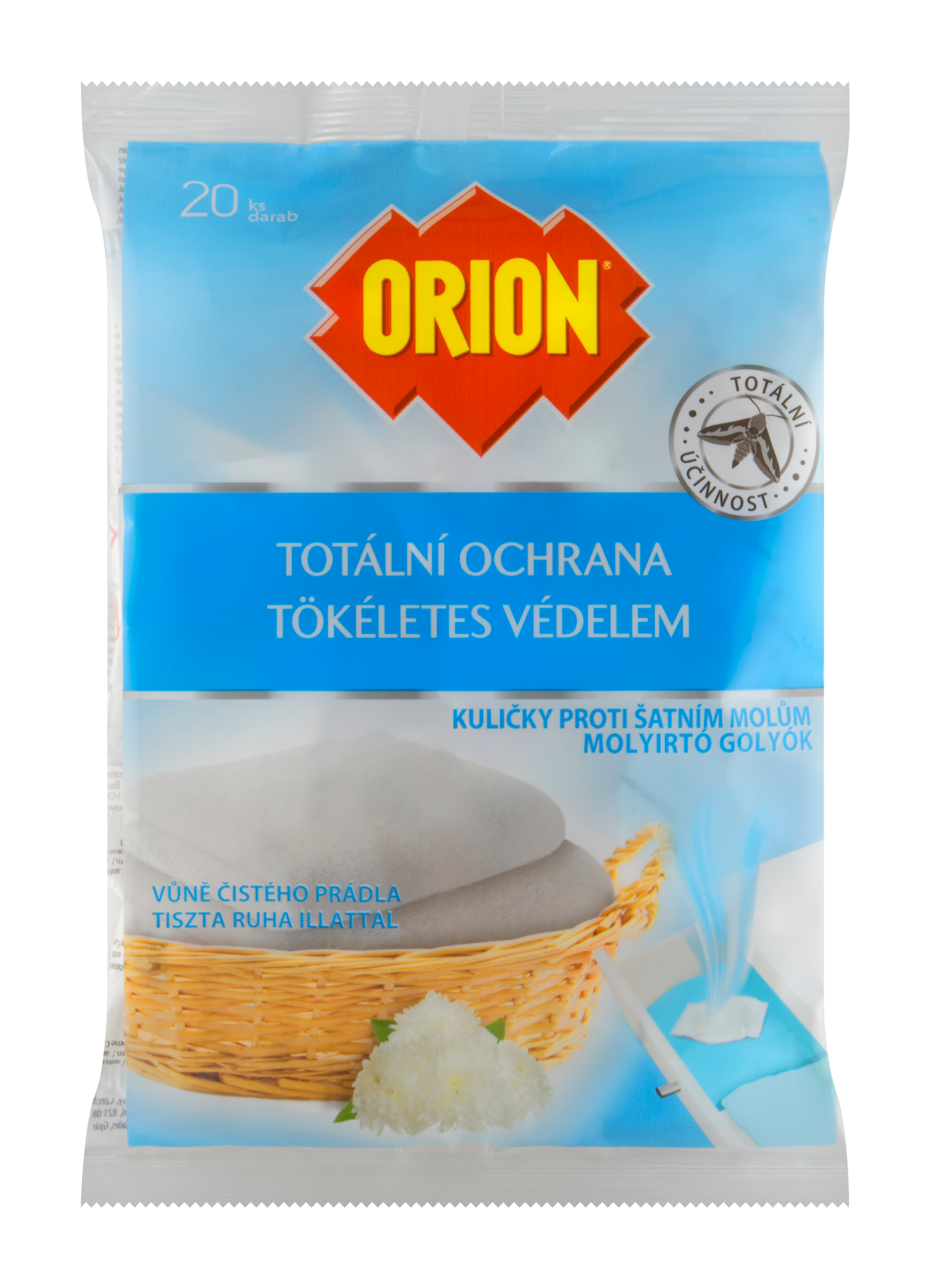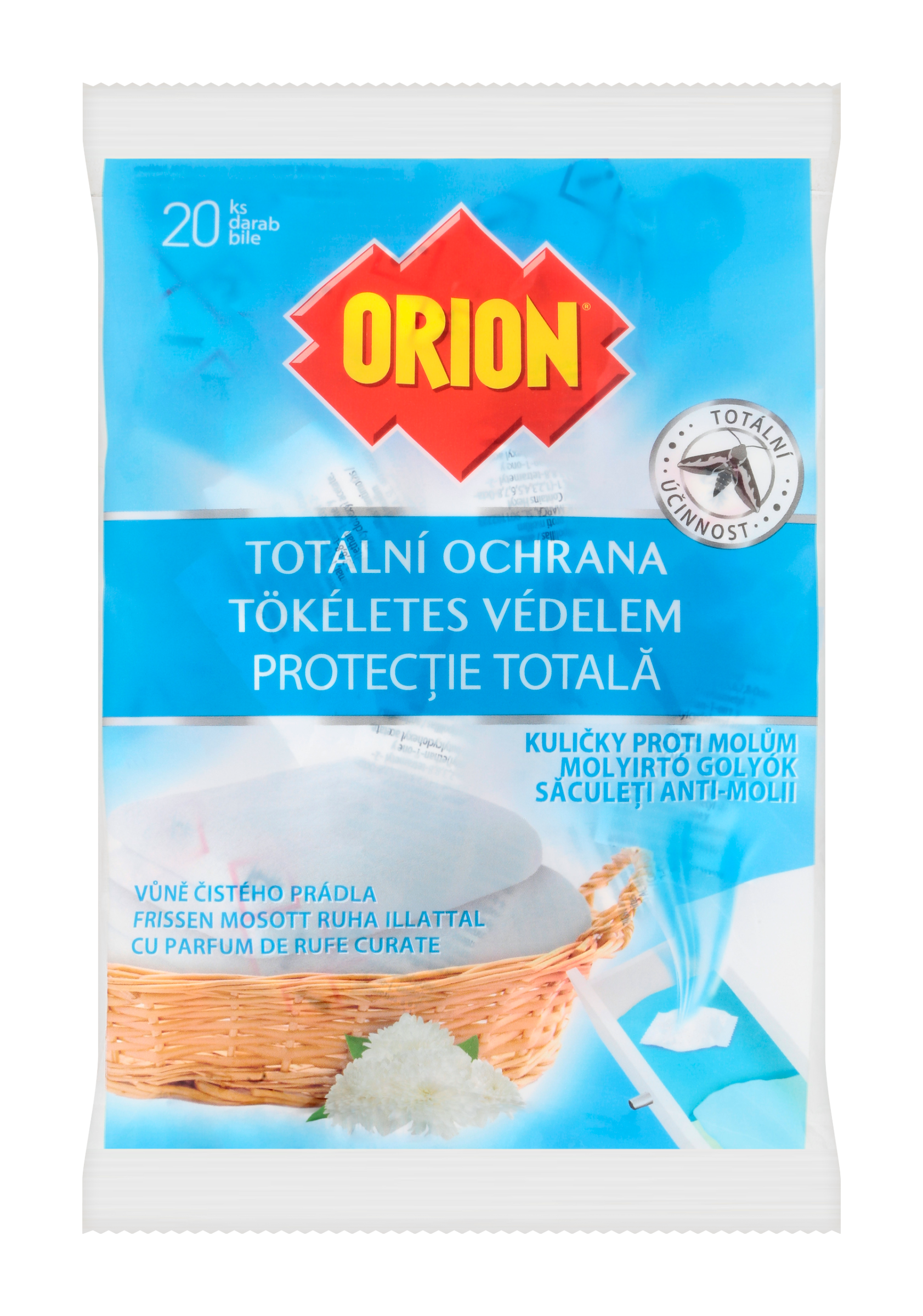 Orion totální ochrana kuličky proti šatním molům - vůně čistého prádla jsou insekticidní přípravky, které zabíjí šatní moly, aniž by došlo k ušpinění oděvu nebo rukou.
