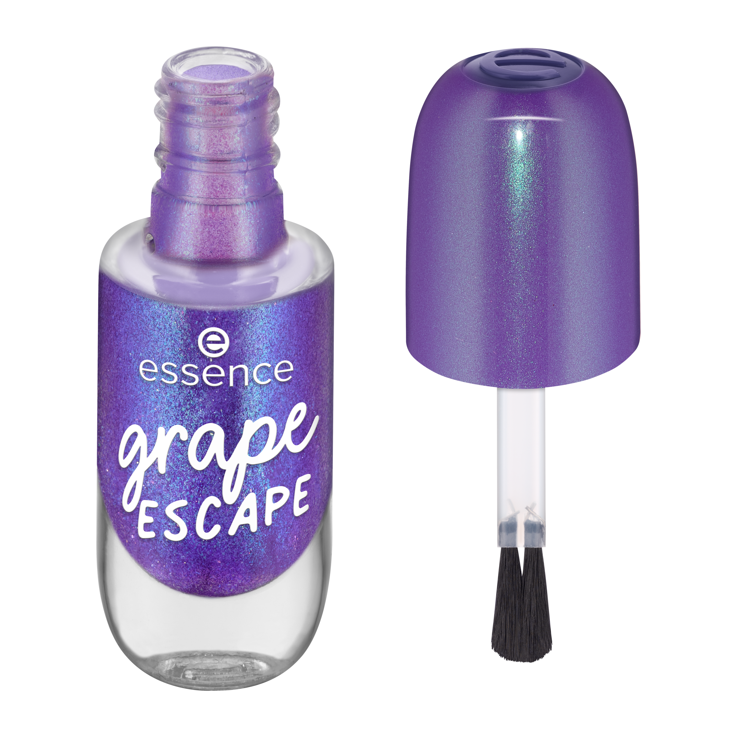 Lak na nehty s výkonem WOW! S essence lakem na nehty gel nail 79 Grape Escape v levandulové barvě s třpytkami nejsou žádné kompromisy: Díky patentovanému širokému štětečku double touch je nanesení laku rychlé a snadné. Navíc essence barevný lak na nehty rychle zasychá - za pouhých 40 sekund. Dlouhotrvající lak na nehty s gelovým efektem v sobě snoubí všechno – včetně toho, že je veganský, má clean beauty složení a neobsahuje mikroplasty! Pro optimální krytí naneste dvě vrstvy. Gelový lak na nehty v odstínu 79 Grape Escape je součástí řady gel nail colour.