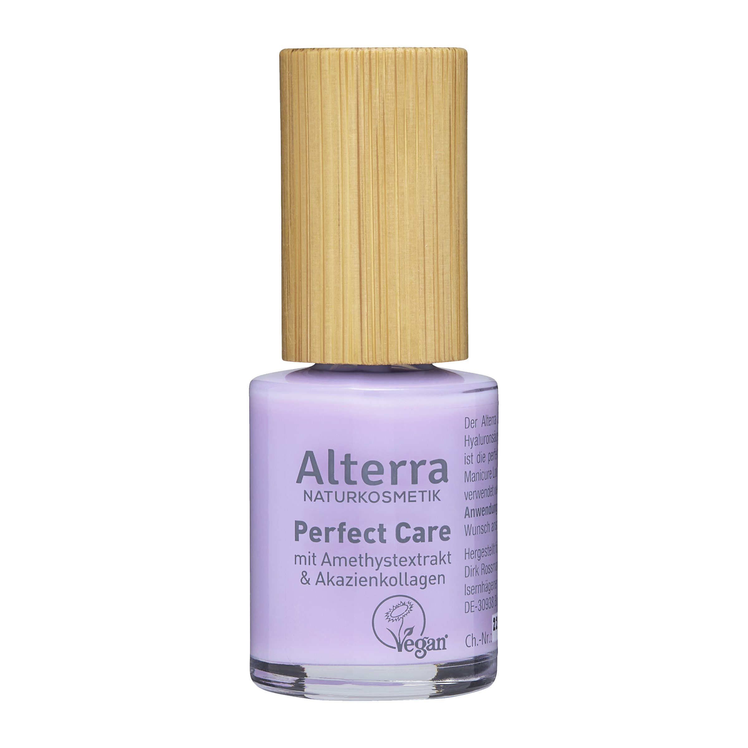 Péče Alterra 3v1 Perfect Care s extraktem z ametystu, kyselinou hyaluronovou, akáciovým kolagenem a extraktem z růženínu je dokonalou péčí o vaše nehty. Lak ve vzhledu francouzské manikúry zpevňuje nehty a lze jej použít i jako podkladový lak.