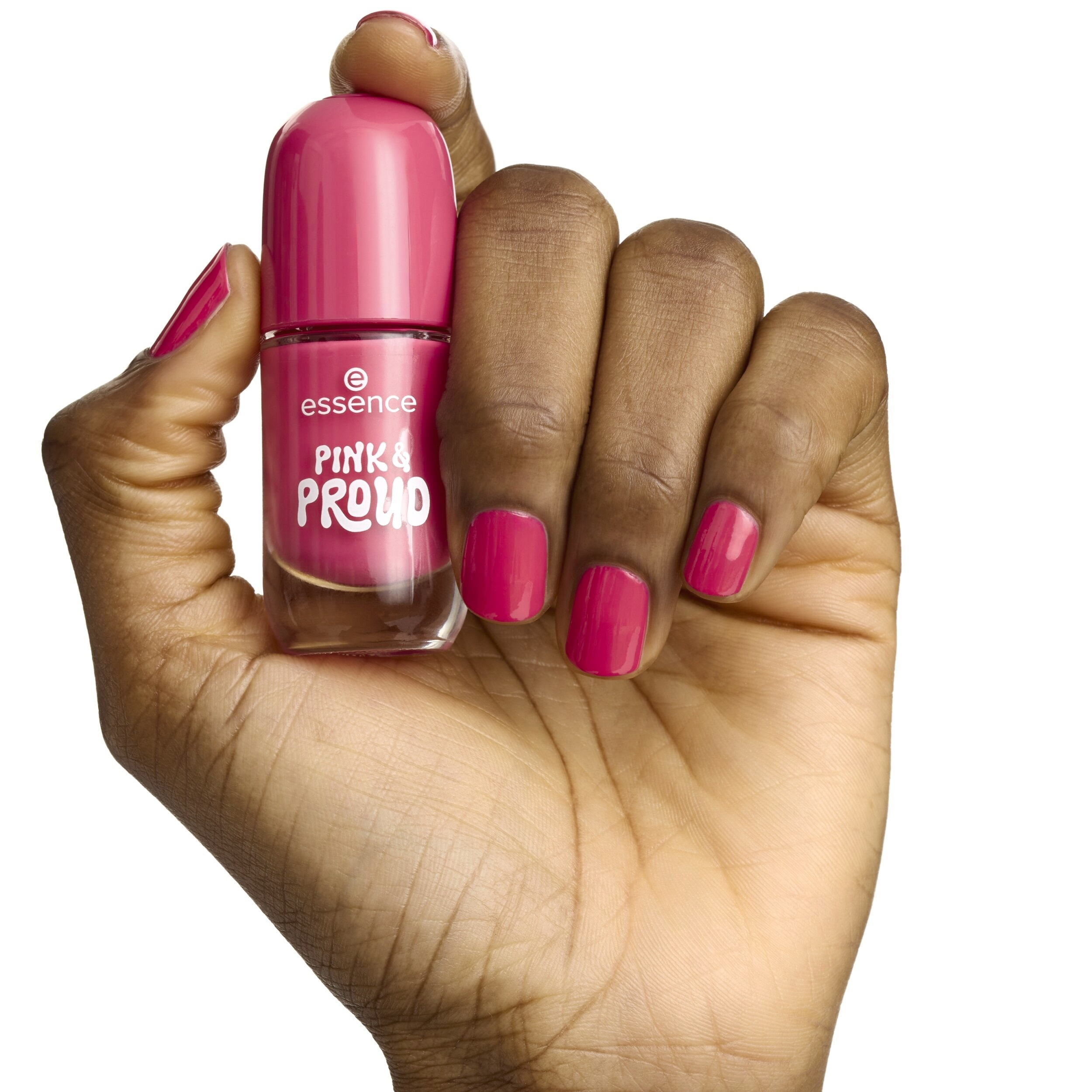 Připravte se na dlouhotrvající barvu! essence lak na nehty gel nail 22 PINK & PROUD ve výrazném purpurovém odstínu dodá vašim nehtům dávku zářivě lesklé dokonalosti. Od jemného po odvážný vzhled, je tu pro každou náladu. Jeho hladká textura se snadno nanáší na nehty a rychle schne, vytváří intenzivní barvu a gelový lesk – to vše bez UV lampy. Inovativní štěteček obepíná přirozený tvar nehtu a zajišťuje hladkou a rovnoměrnou aplikaci. Zakončete essence krycím lakem na nehty TOP GLOSS a užijte si vysoce zářivou manikúru, která vydrží až 10 dní.*