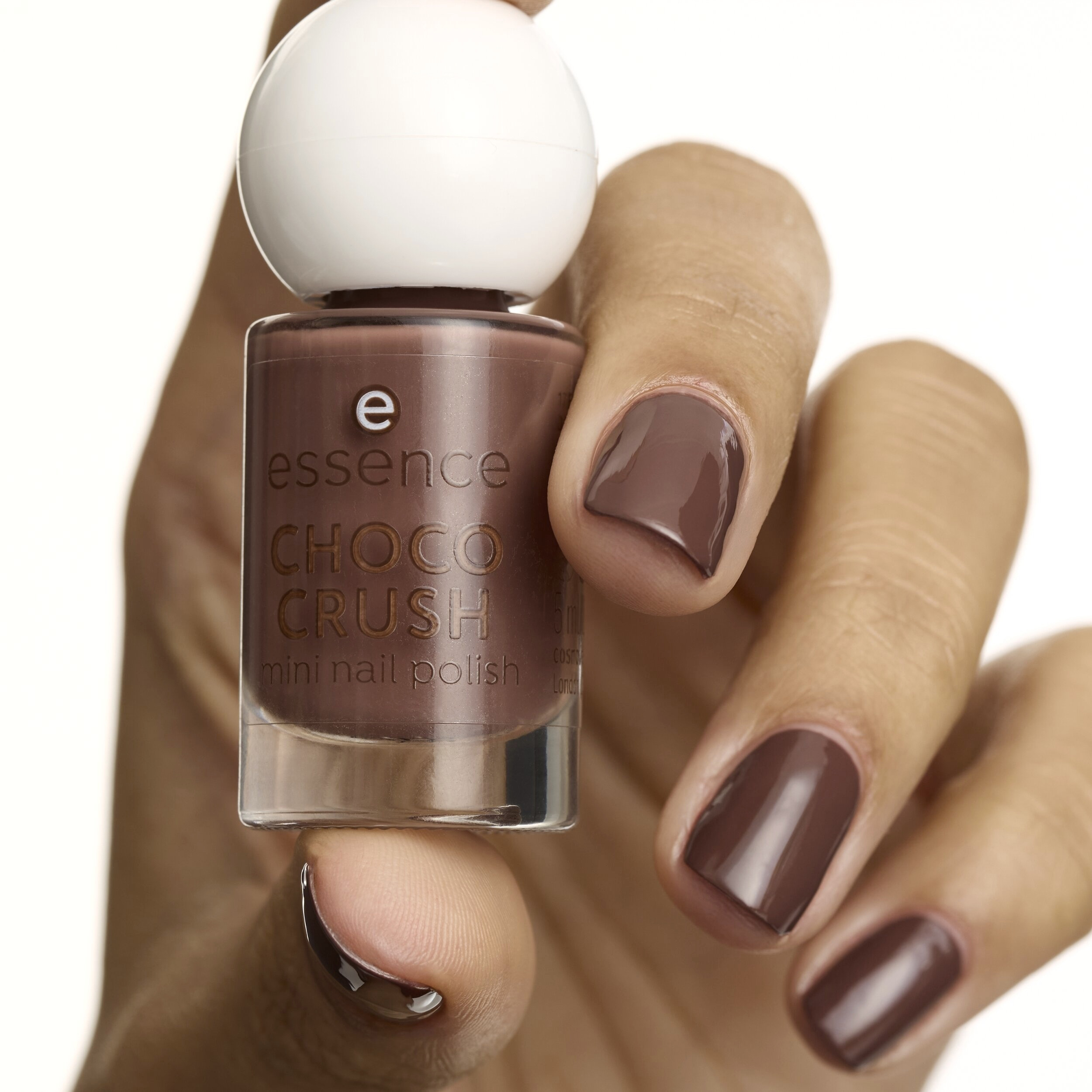 essence mini lak na nehty CHOCO CRUSH 17 promění každou manikúru v čokoládový okamžik! Tato bohatá čokoládově hnědá barva vypadá delikátně a po zaschnutí odhaluje sladké překvapení: čokoládovou vůni, která vám okamžitě připomene čerstvě upečený čokoládový dort! Ideální pro všechny mlsné beauty nadšence! Hladká krémová textura se snadno nanáší a zahalí nehty do hluboké lesklé barvy, která je jednoduše neodolatelná. Roztomilá mini velikost navíc usnadňuje nošení kdekoli – vaše malá dávka čokoládového štěstí na cestách!