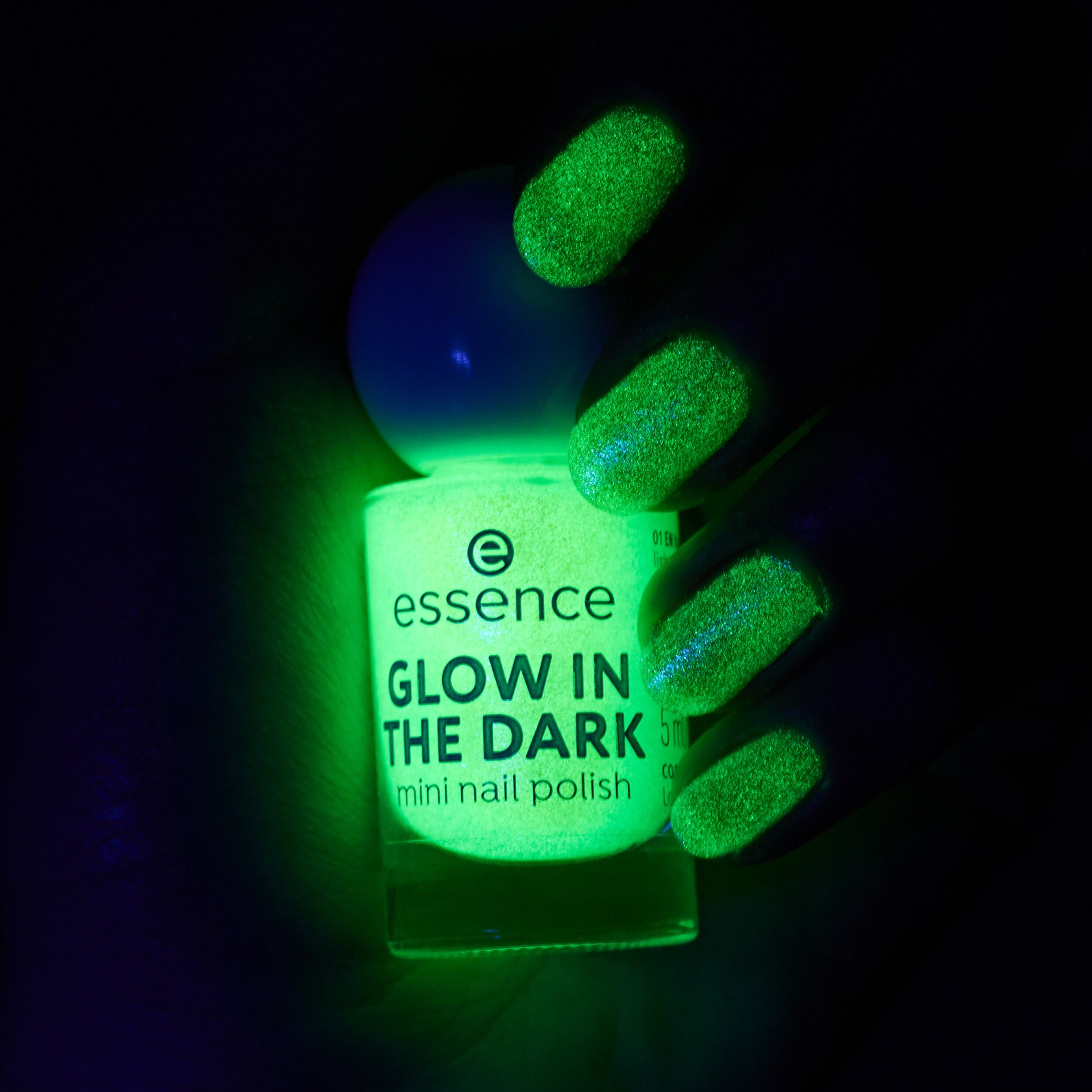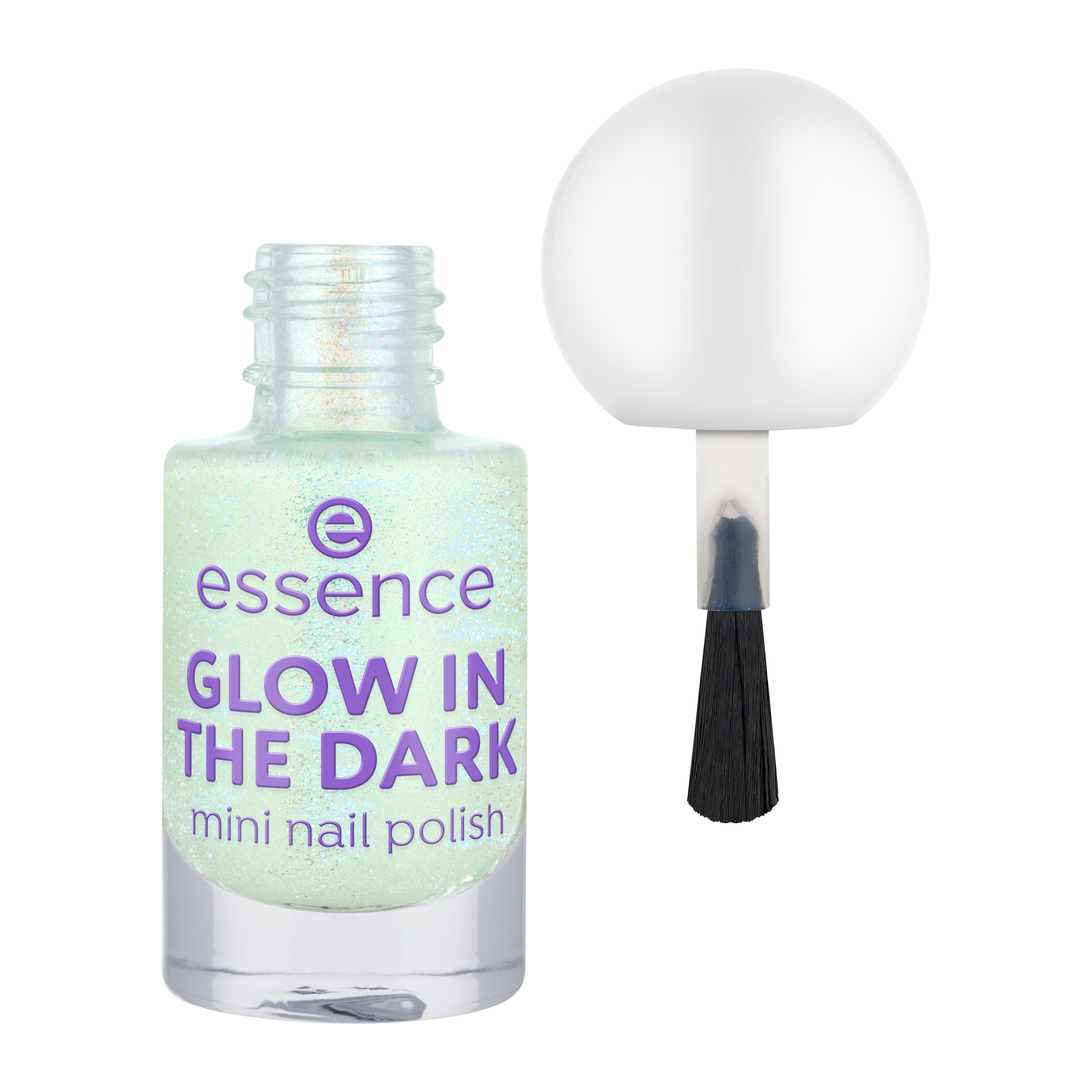 Spousta záře v malé lahvičce – essence mini lak na nehty Glow In The Dark 01. Hravý obal s kulatým víčkem obsahuje třpytivou, světle mátově zelenou texturu, díky které budou vaše nehty zářit ve tmě. Můžete jej použít buď samostatně, nebo jako krycí lak k jiným barvám, svítivý efekt funguje nejlépe u světlých odstínů, zejména bílých. Ať už tedy hledáte sváteční vzhled nebo extra třpyt pro každý den, lak na nehty dodá vašim nehtům úžasný zářivý vzhled.