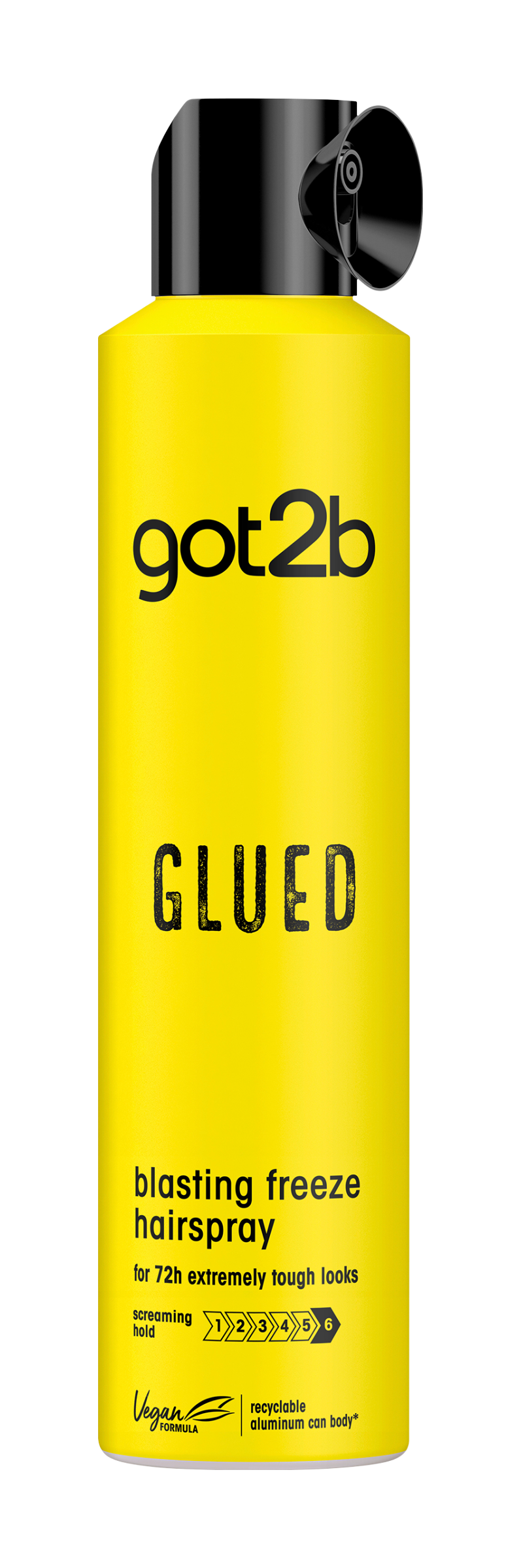 Got2b Glued Blasting Freeze lak na vlasy - pro extrémně odolný look po dobu 72h Používá se jako sprej, drží jako lepidlo! Glued lak na vlasy zmrazí odvážné účesy až do dalšího umytí. Získejte až 72 hodin ultra silné fixace bez slepení a vysoušení. Složení je veganské*. Hliníkové tělo plechovky je recyklovatelné.**