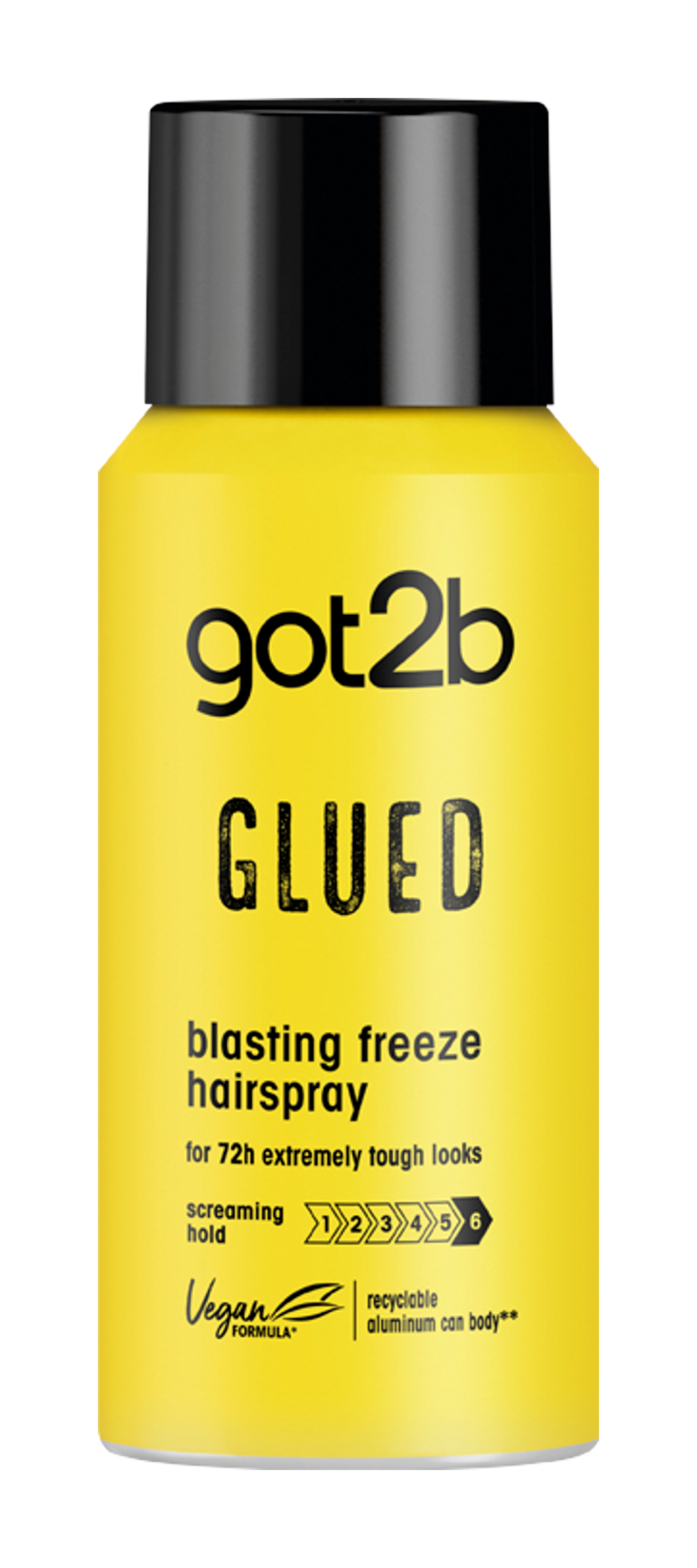 - Glued Blastin Freeze lak na vlasy: Používá se jako sprej, drží jako lepidlo! Lak na vlasy got2b Glued Blasting Freeze zafixuje odvážné účesy až do dalšího mytí