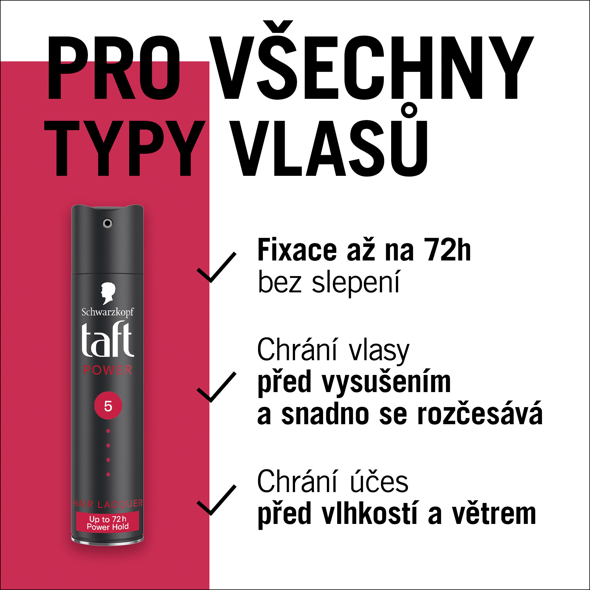 - Lak na vlasy Taft Power: tento lak na vlasy Taft poskytuje silnou fixaci až po dobu 72 hodin a posiluje vlasy od kořínků ke konečkům, je vhodný pro všechny typy vlasů. Pomáhá chránit vlasy před pocitem suchých vlasů