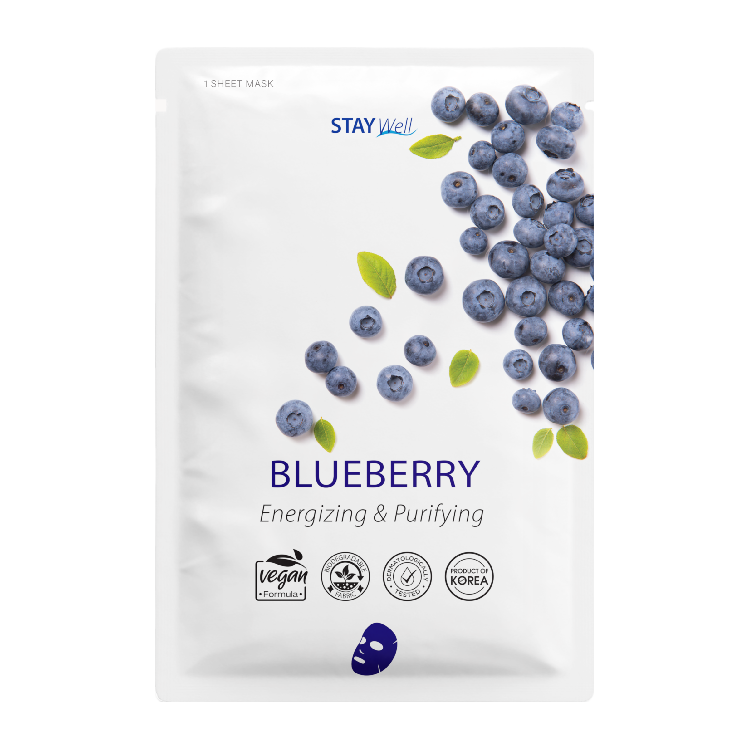 Maska STAY WELL Vegan Blueberry Sheet Mask s extraktem z borůvek a vitamínem B má bohaté antioxidační vlastnosti, které čistí a revitalizují pokožku. Látka je přírodní a biologicky odbouratelná. Zajišťuje výjimečnou hebkost a jemnou péči o pokožku.