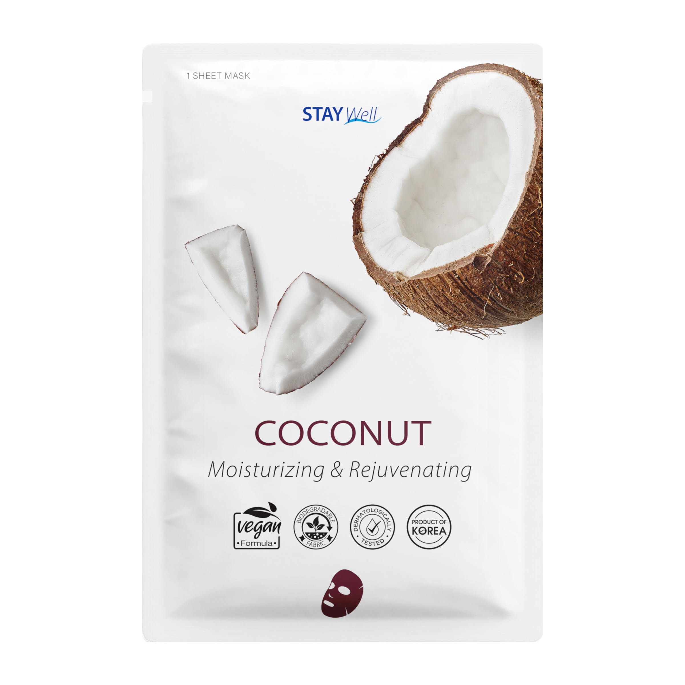Směs kokosového extraktu a kyseliny hyaluronové v masce STAY WELL Vegan Coconut Sheet Mask udržuje ideální hladinu vlhkosti vaší pokožky pro omlazující a trvalý účinek. Látka je přírodní a biologicky odbouratelná. Zajišťuje výjimečnou hebkost a jemnou péči o pokožku.