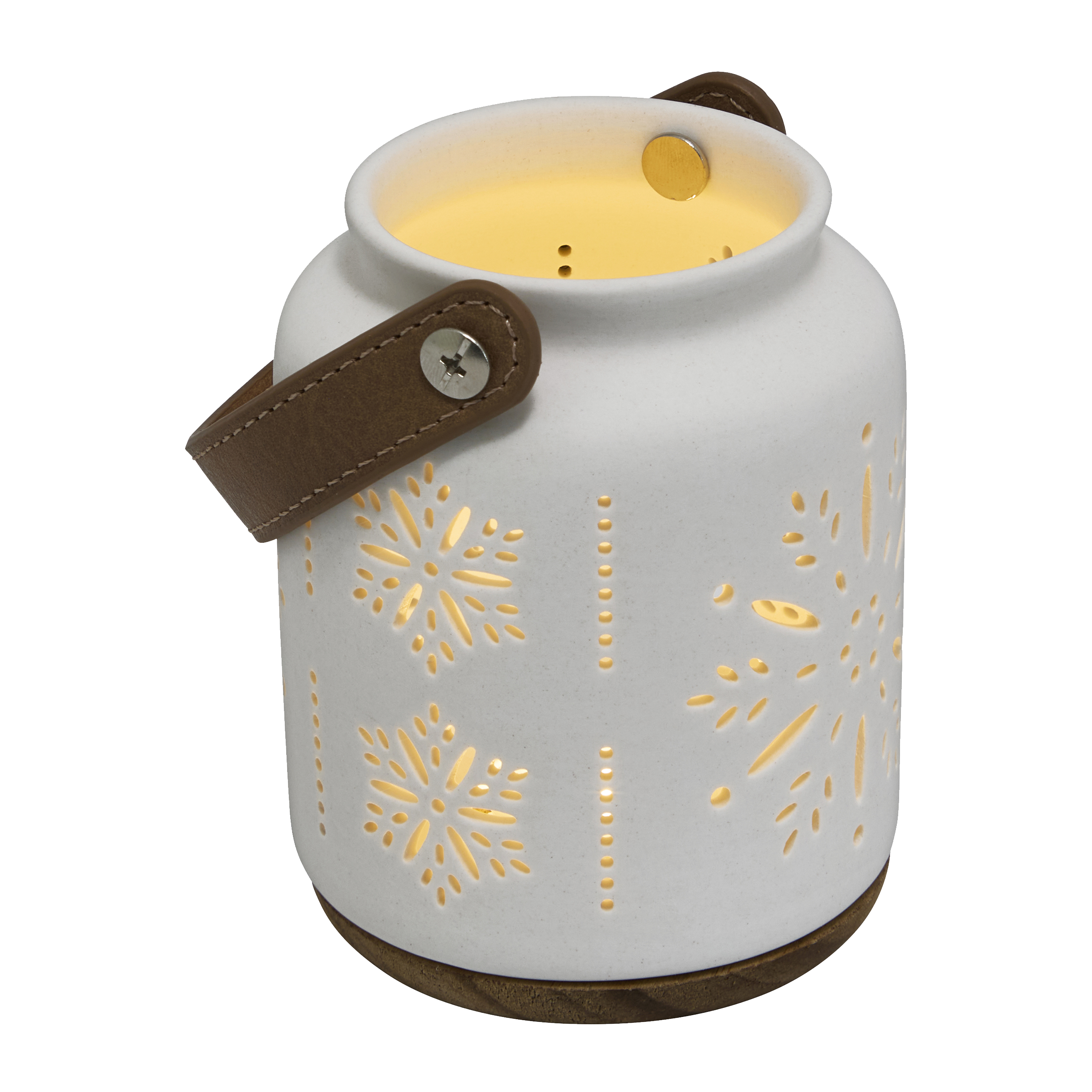 Stylová lucerna s LED osvětlením a výřezy ve tvaru sněhových vloček. Vydává příjemné teplé světlo, které navodí útulnou zimní atmosféru. Praktické kožené poutko umožňuje snadné zavěšení nebo přenášení. Ideální jako vánoční dekorace do interiéru.
