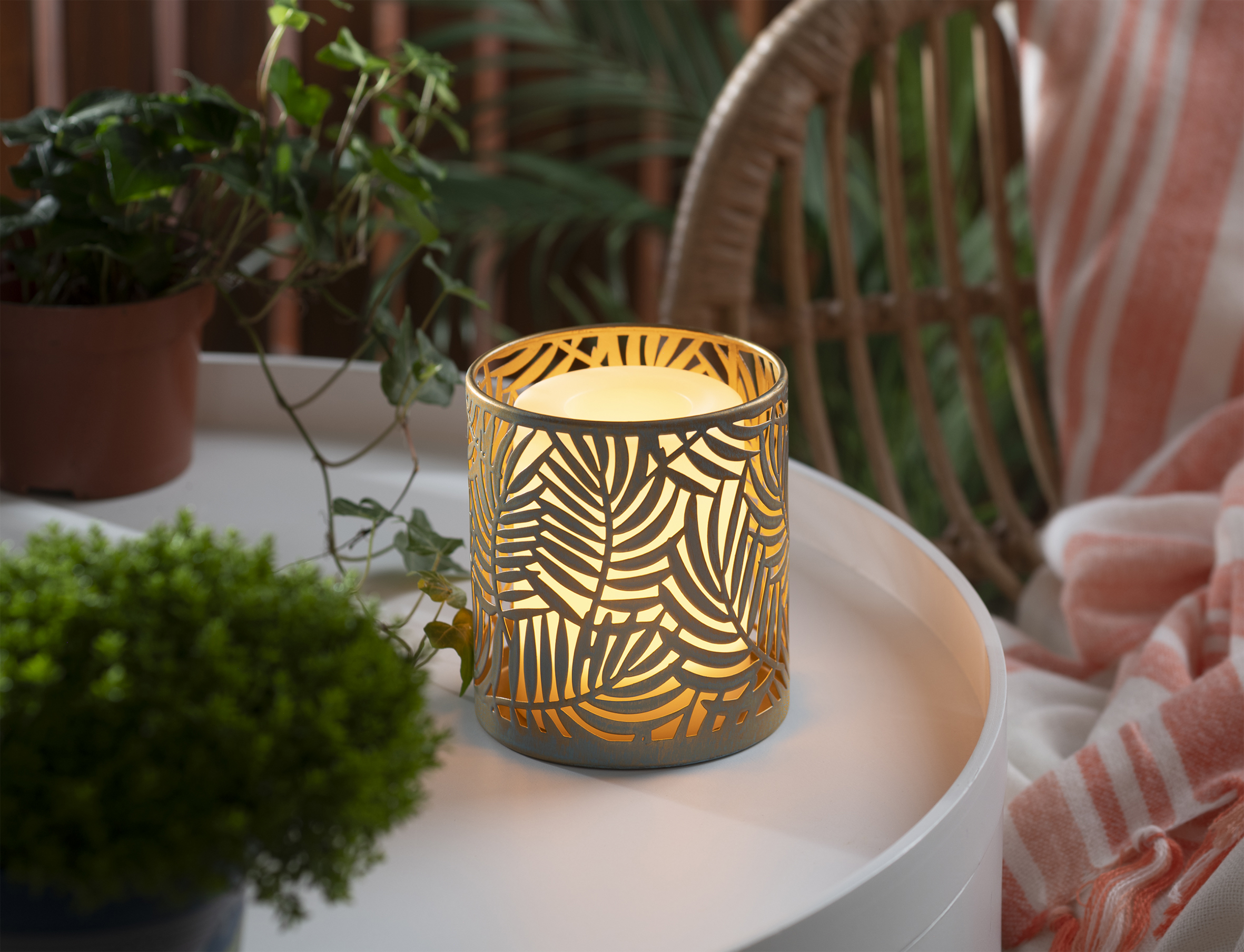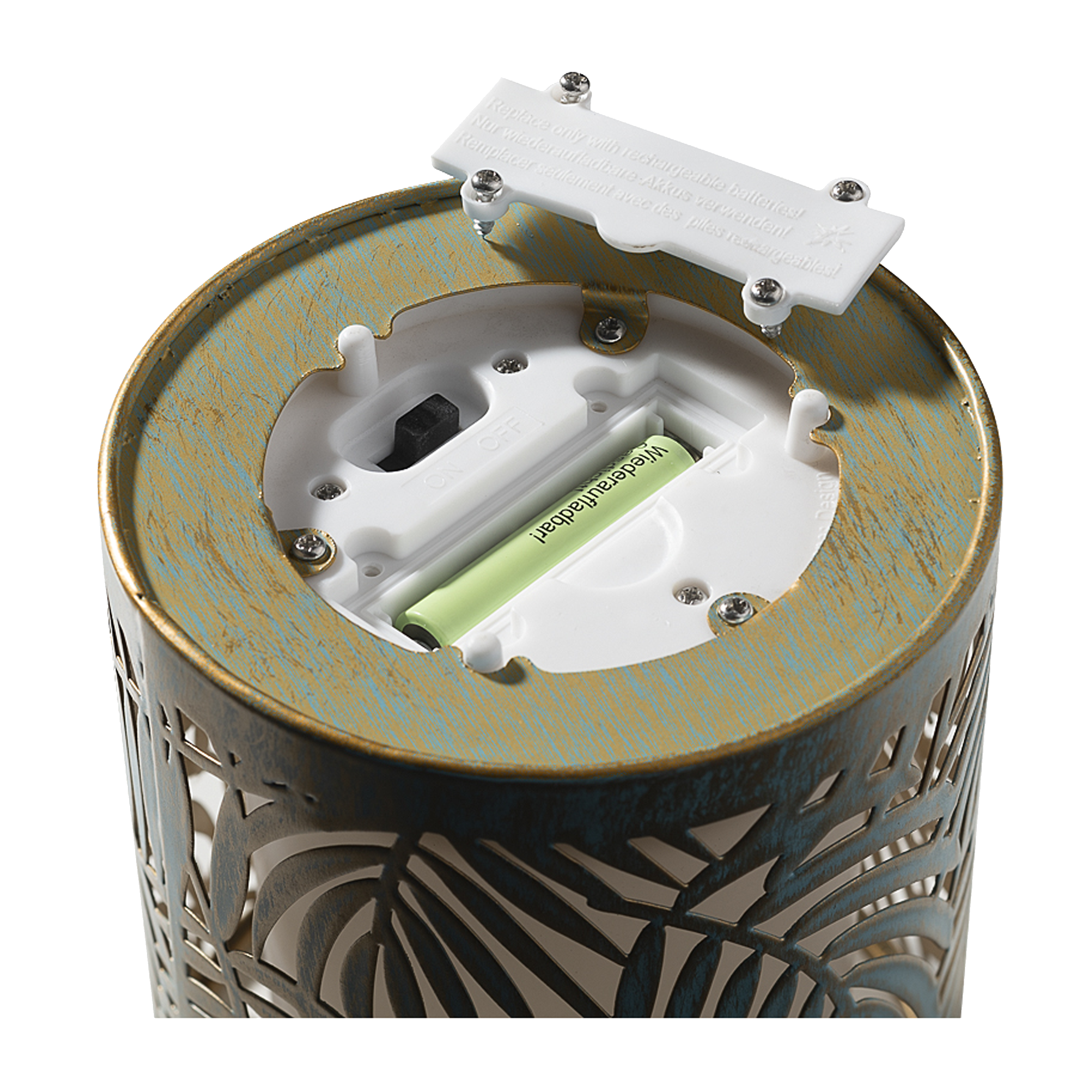LED solární lucerna s designem palmových listů přináší příjemné, teplé světlo a kouzelnou atmosféru do vašeho interiéru i exteriéru. Díky soumrakovému čidlu se automaticky rozsvítí při setmění a napájí se pomocí vestavěné Ni-MH baterie, která se dobíjí solární energií. Průměr lucerny je cca10 cm.