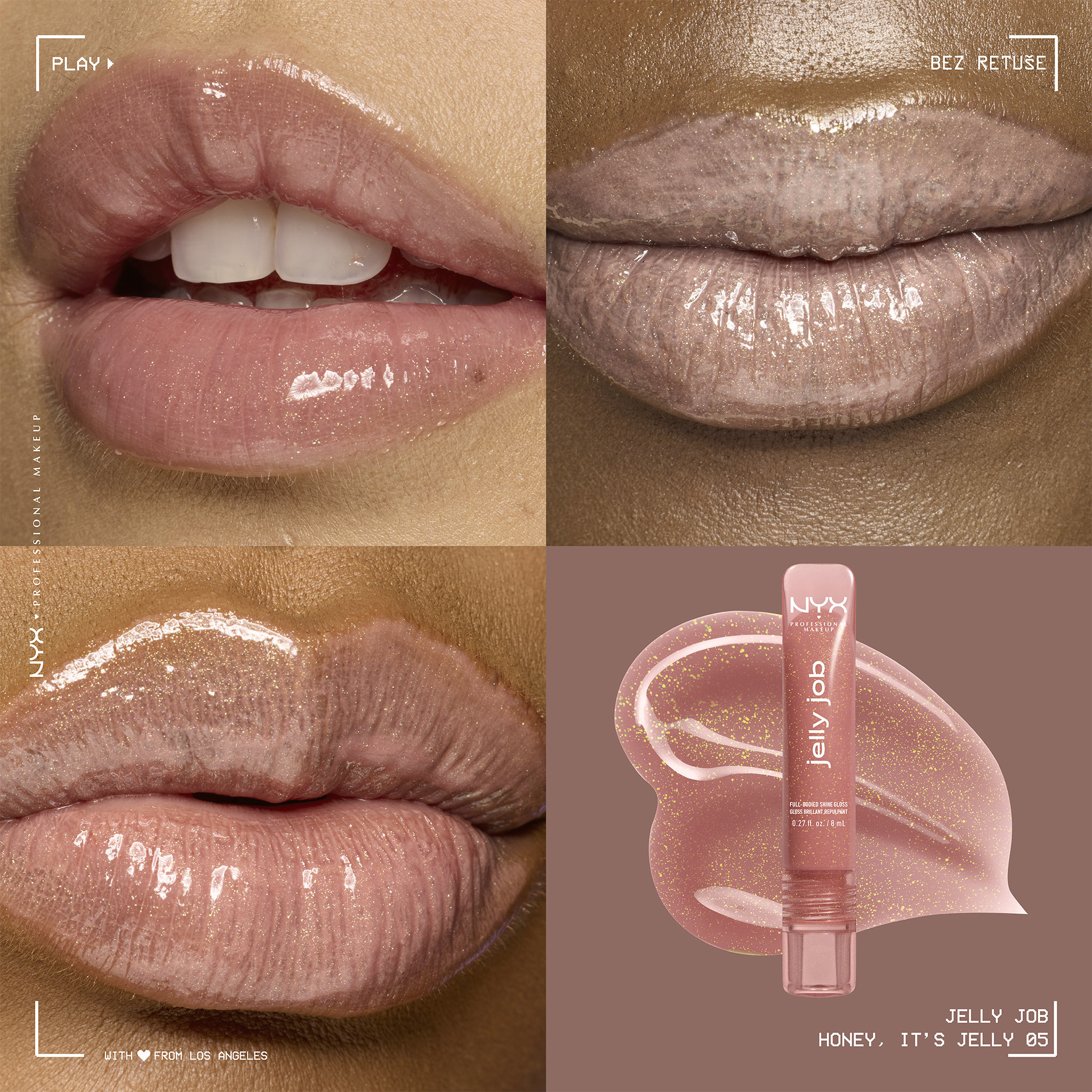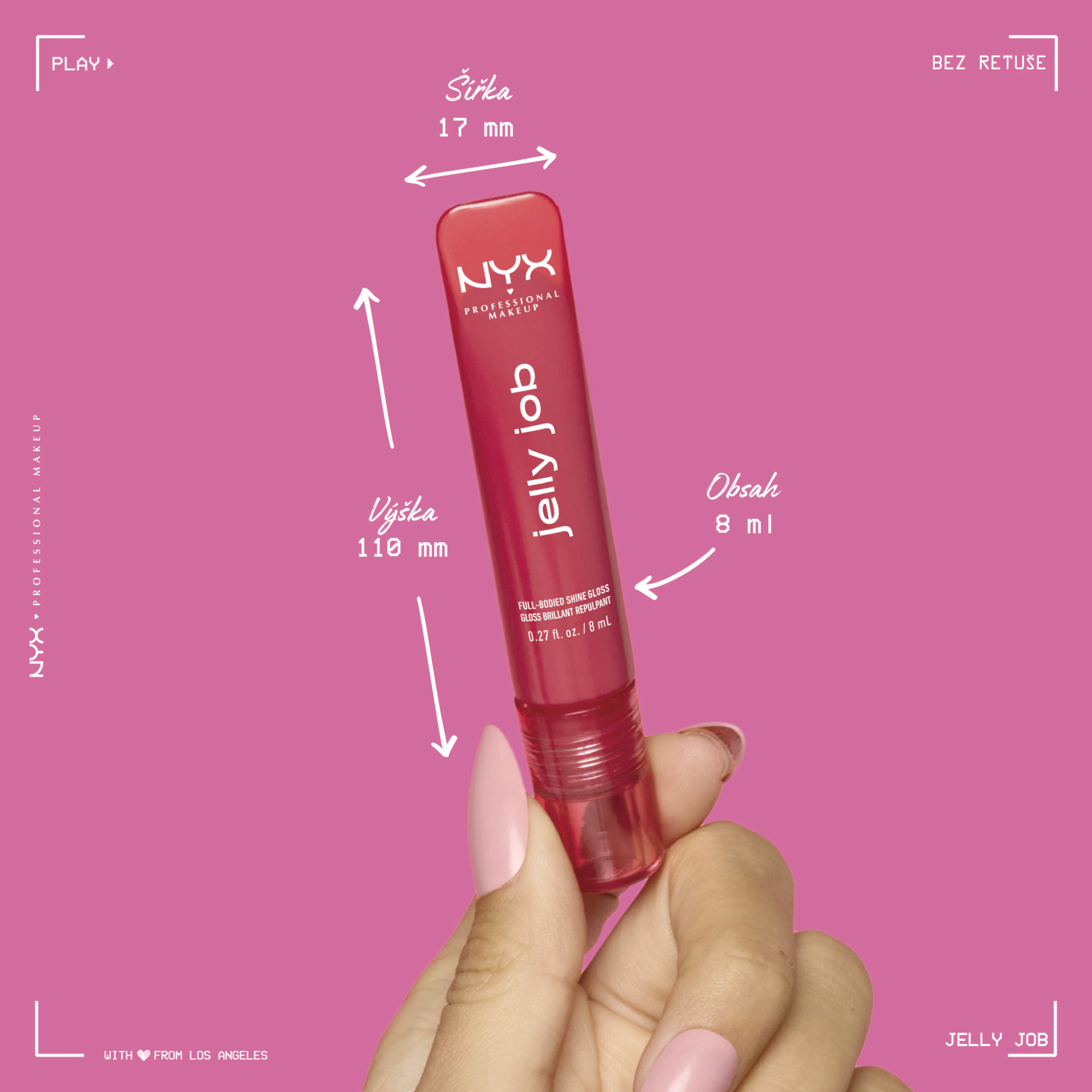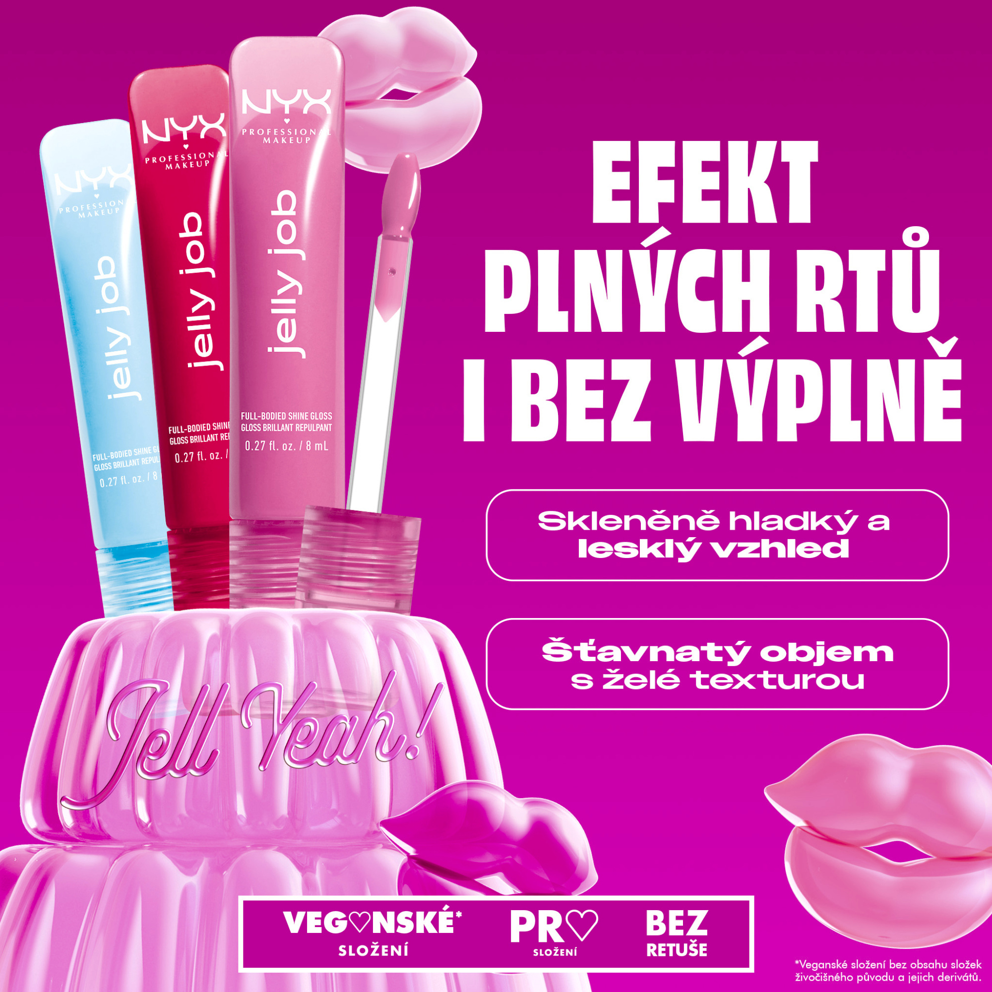 Chceš plnější, hladší a lesklejší rty? My na tom makáme! Plné rty, jell-yeah! Získej plný lesk pro opticky objemné rty s Jelly Job! Dej se do práce a získej želatinově hladký objem a šťavnatý lesk! Jednoduše nanes tuhle lehkou formuli a získej plné, želé rty snů. Abychom pozvedli hladkost tvých rtů na další úroveň, náš zbrusu nový aplikátor ve tvaru špachtle obepne každou křivku tvých rtů, dodá lehkou, rovnoměrnou vrstvu a nádherný skleněný finiš rtů, který je stejně želatinový, jako vypadá.