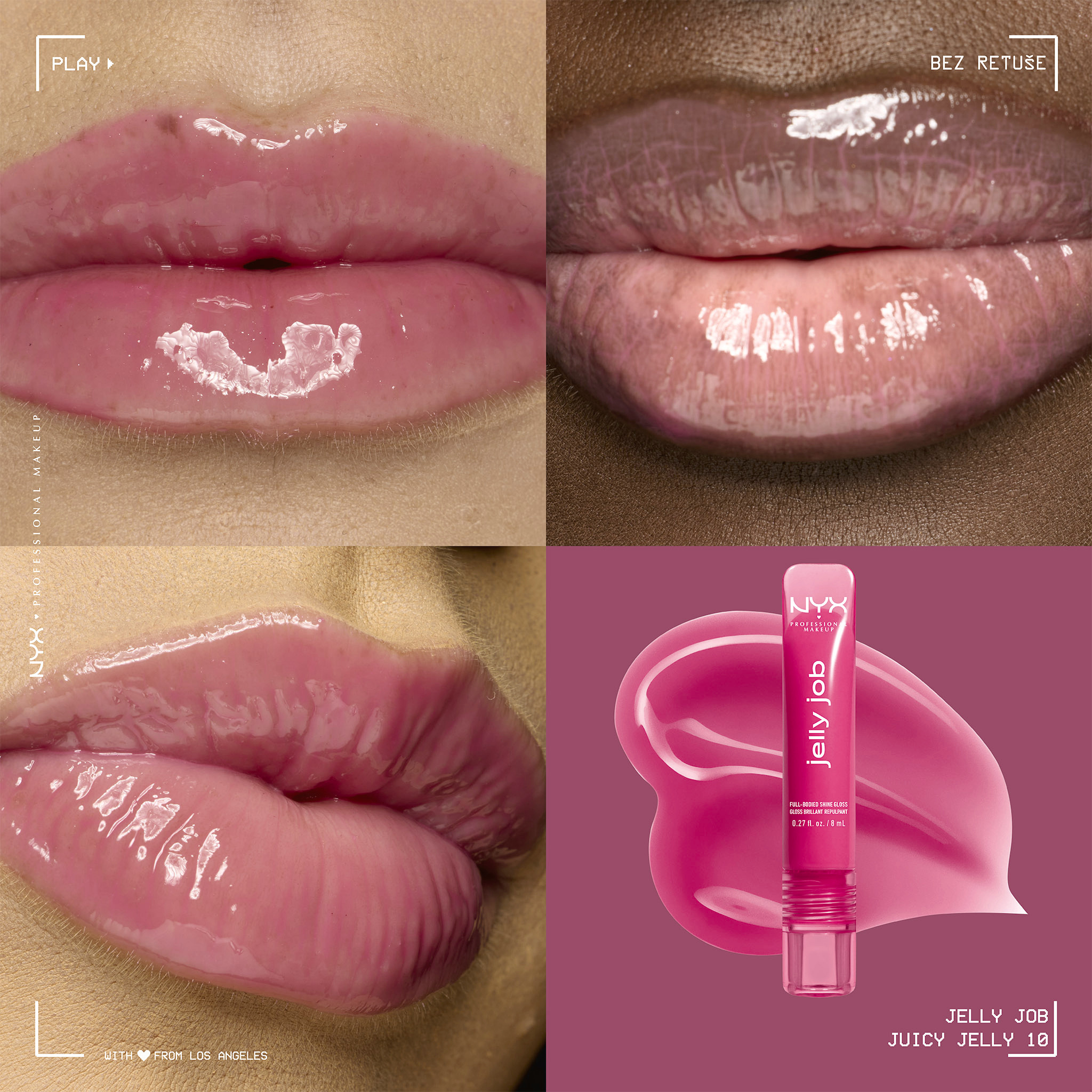 Chceš plnější, hladší a lesklejší rty? My na tom makáme! Plné rty, jell-yeah! Získej plný lesk pro opticky objemné rty s Jelly Job! Dej se do práce a získej želatinově hladký objem a šťavnatý lesk! Jednoduše nanes tuhle lehkou formuli a získej plné, želé rty snů. Abychom pozvedli hladkost tvých rtů na další úroveň, náš zbrusu nový aplikátor ve tvaru špachtle obepne každou křivku tvých rtů, dodá lehkou, rovnoměrnou vrstvu a nádherný skleněný finiš rtů, který je stejně želatinový, jako vypadá.