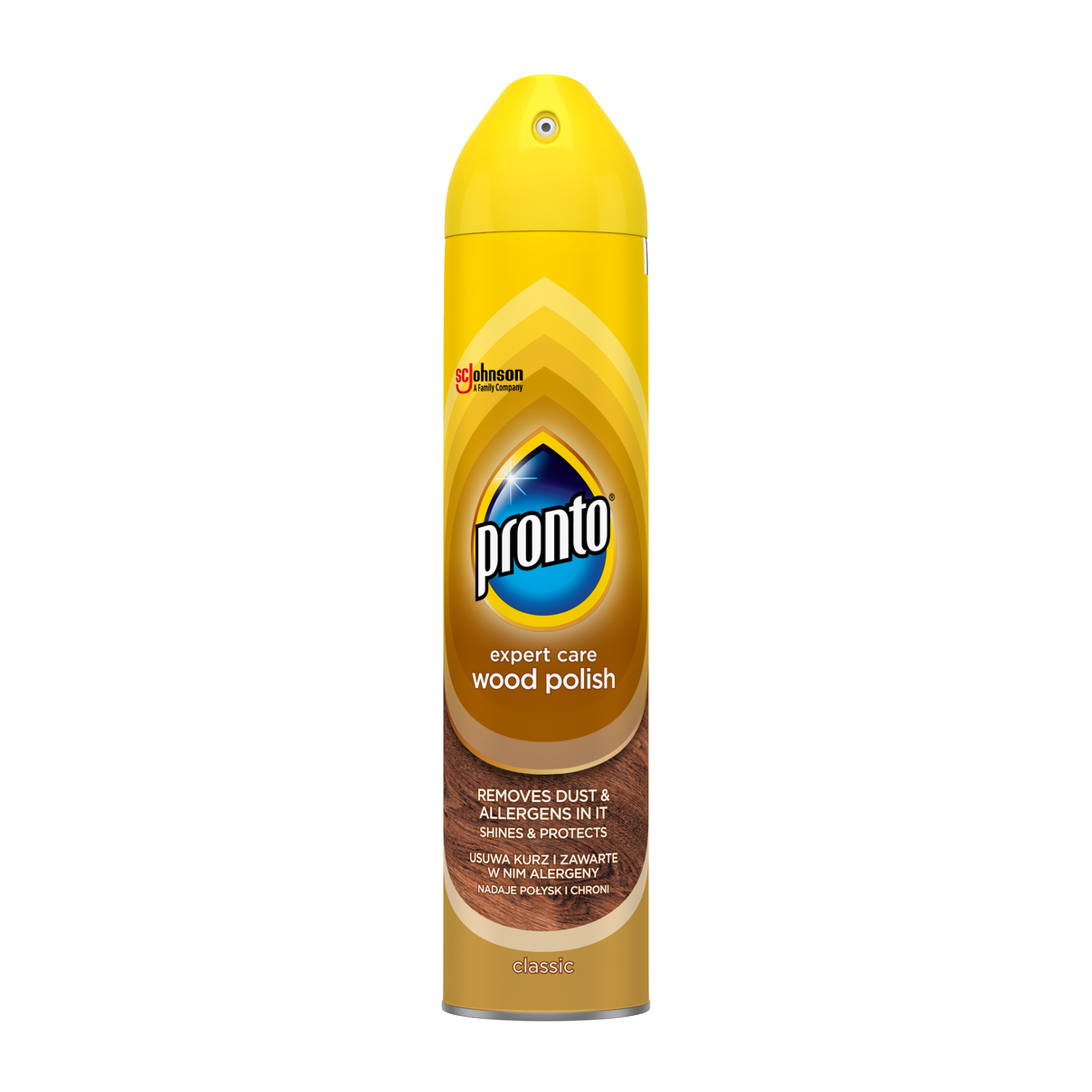Aerosol Pronto Expert Care Classic pečuje o dřevěný nábytek tak, aby si zachoval svůj přirozený vzhled a lesk. Přípravek účinně odstraňuje prach a nečistoty, obnovuje povrch nábytku a zanechává jej viditelně oživený.