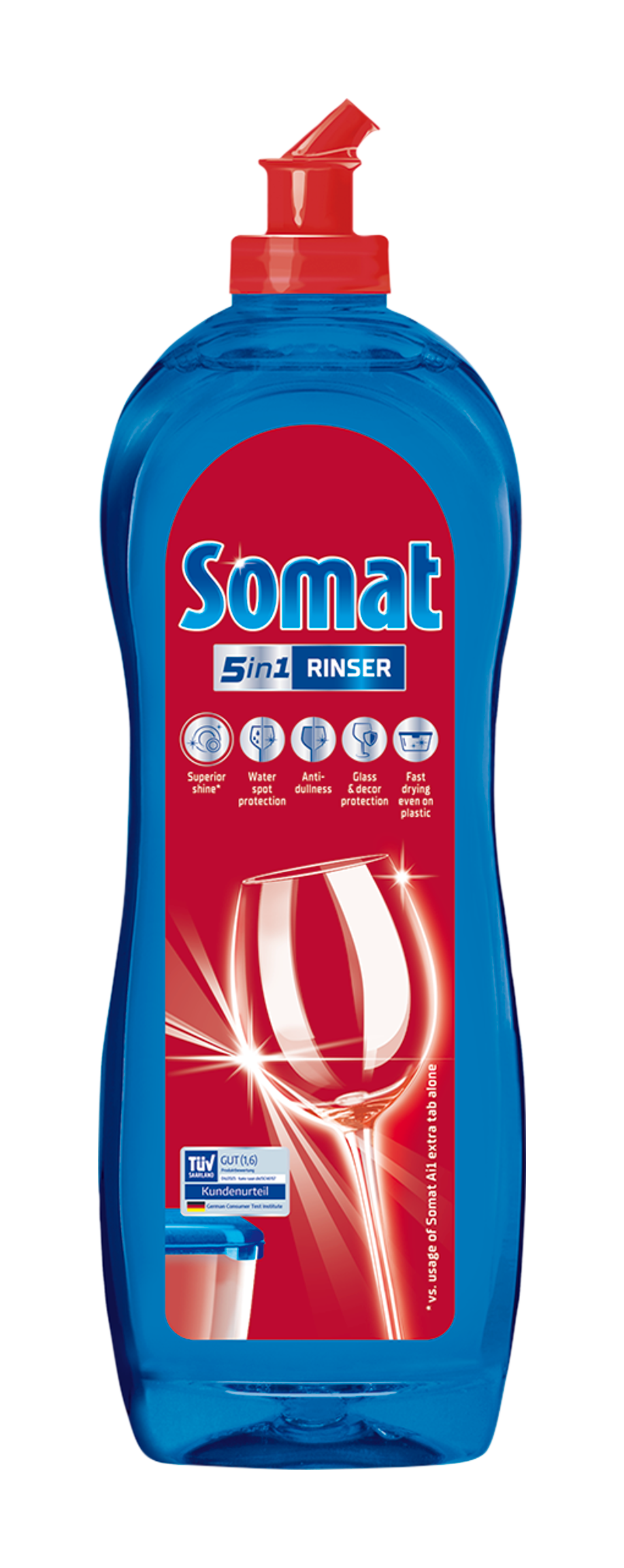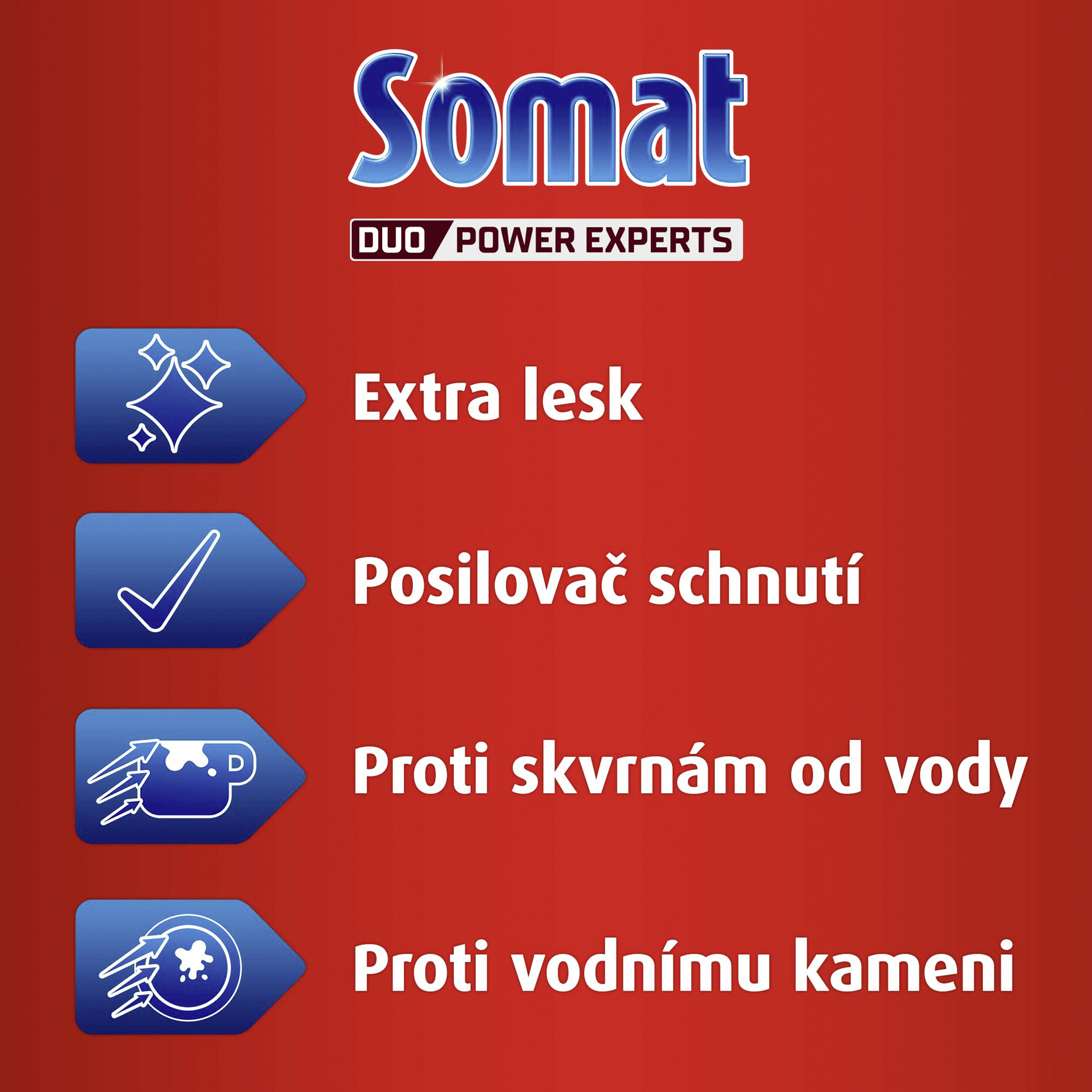 - Somat leštidlo účinně působí proti skvrnám od vody a zanechá vaše nádobí a sklenice čisté a zářivě lesklé