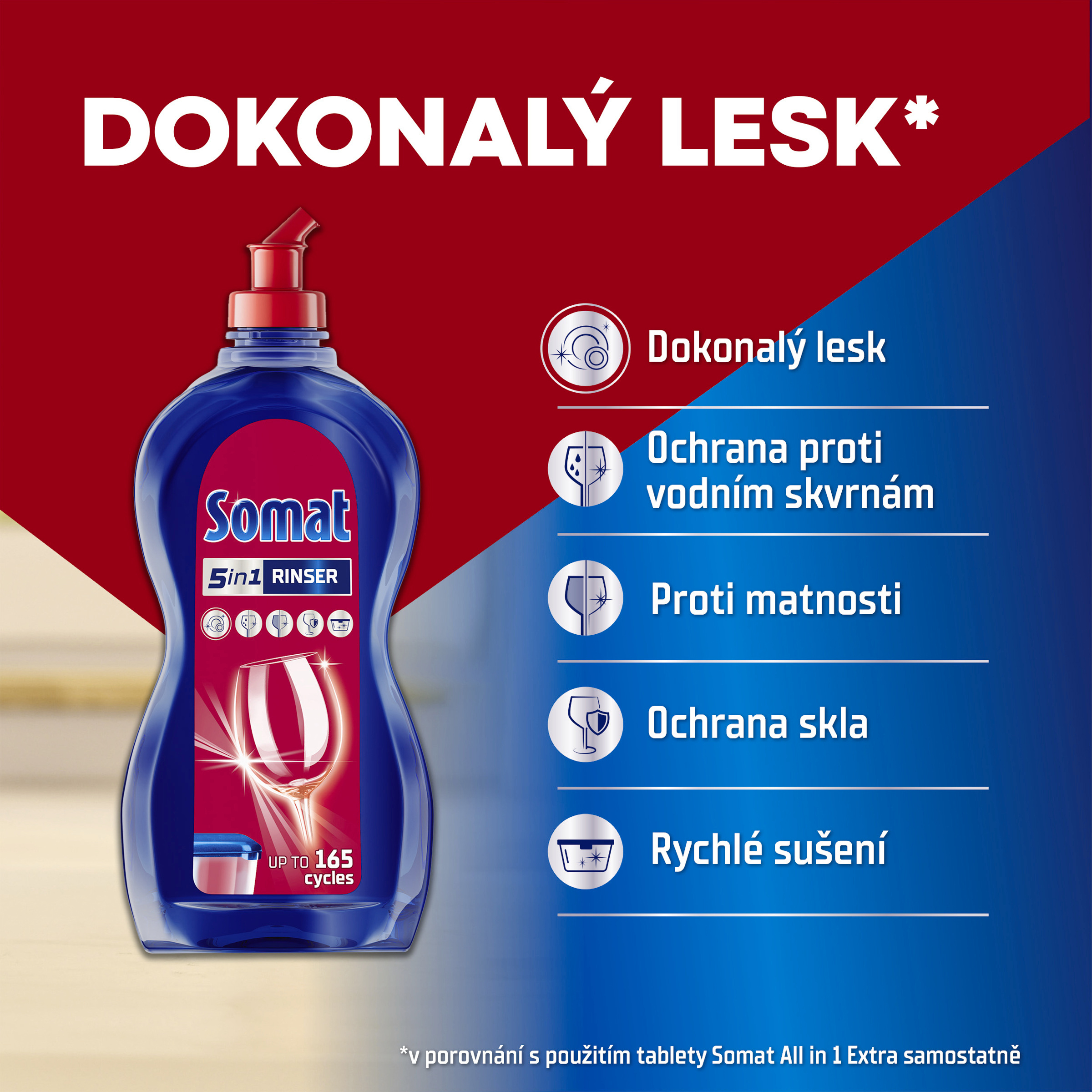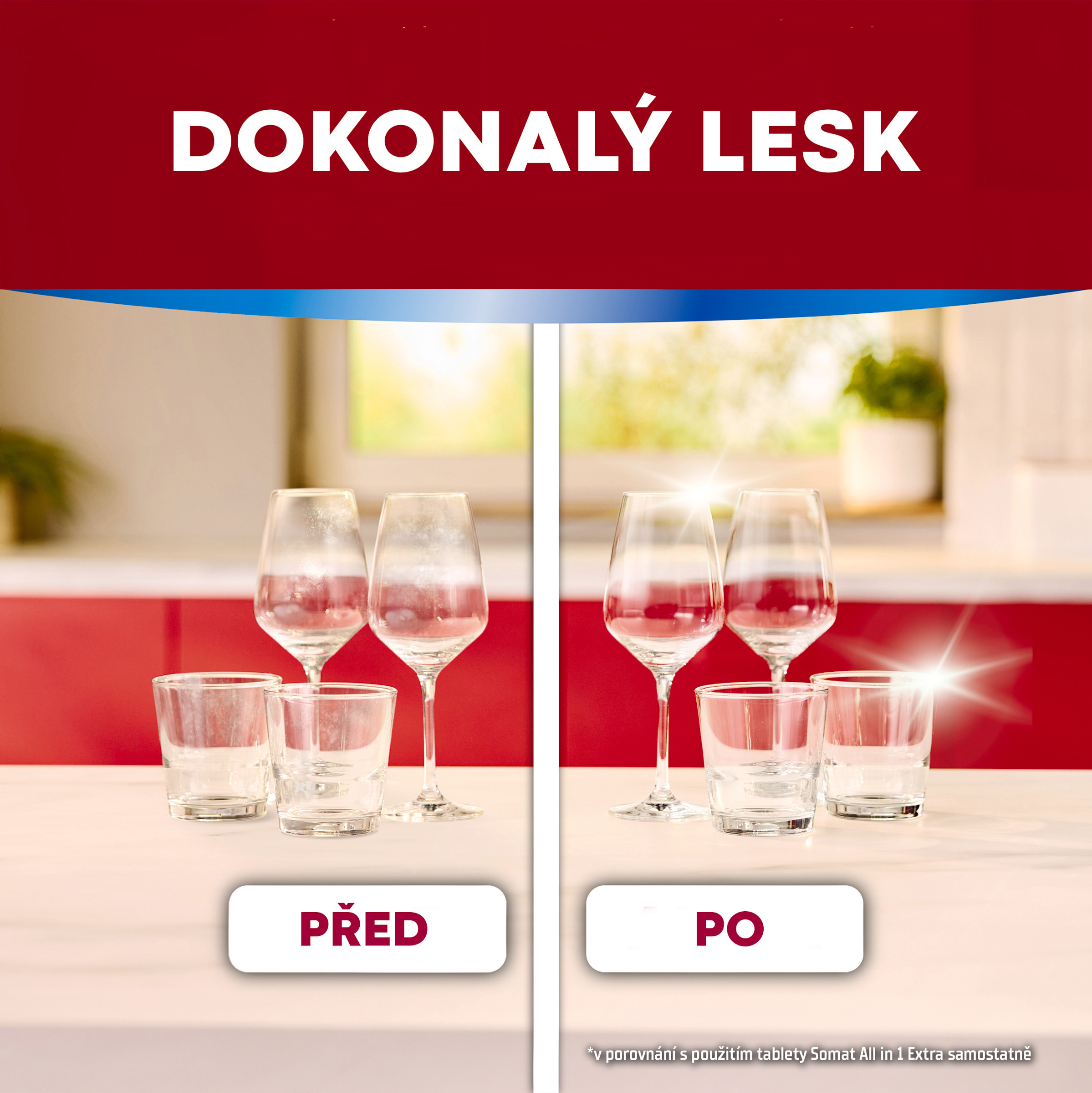 - Somat leštidlo účinně působí proti skvrnám od vody a zanechá vaše nádobí a sklenice čisté a zářivě lesklé