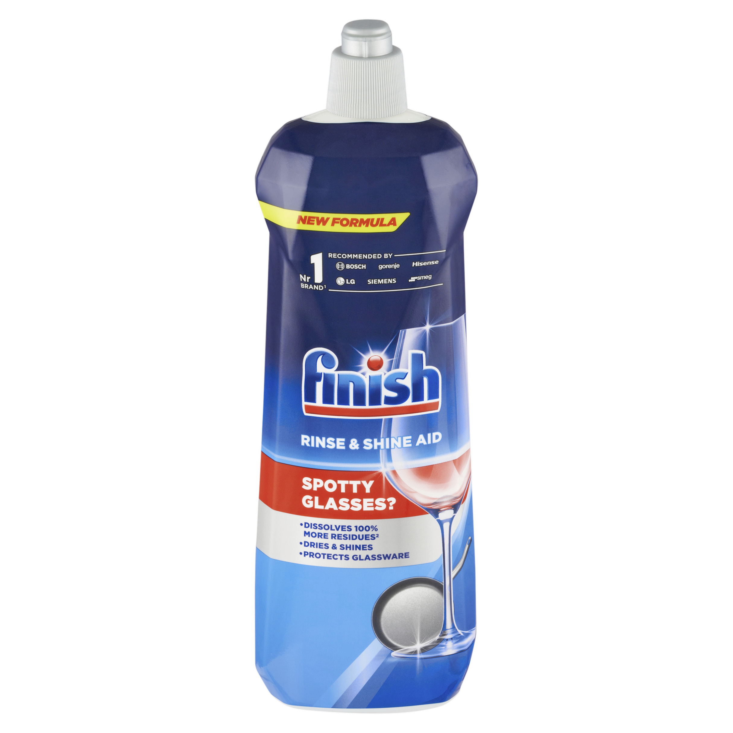 2x lepší schnutí vs. použití samotného detergentu Finish. Speciálně vytvořená směs povrchově aktivních látek pro lesk. Finish je nejvíce prodávanou značkou v kategorii automatického mytí nádobí na základě obratu dosaženého v EU (kromě Kypru, Finska, Lucemburska a Malty) v předchozím roce. Zdroj: Nielsen. Nádobí z myčky může zůstat mokré, se skvrnami od vody a vodního kamene. Finish leštidlo rozpouští o 100 % více usazenin², urychluje schnutí a činí nádobí lesklejší, chrání sklo. ²vs. použití samotného detergentu Finish. Usazeniny: vodní kámen, šmouhy od vody, skvrny a povlak. Nepřilnavé keramické pánve.