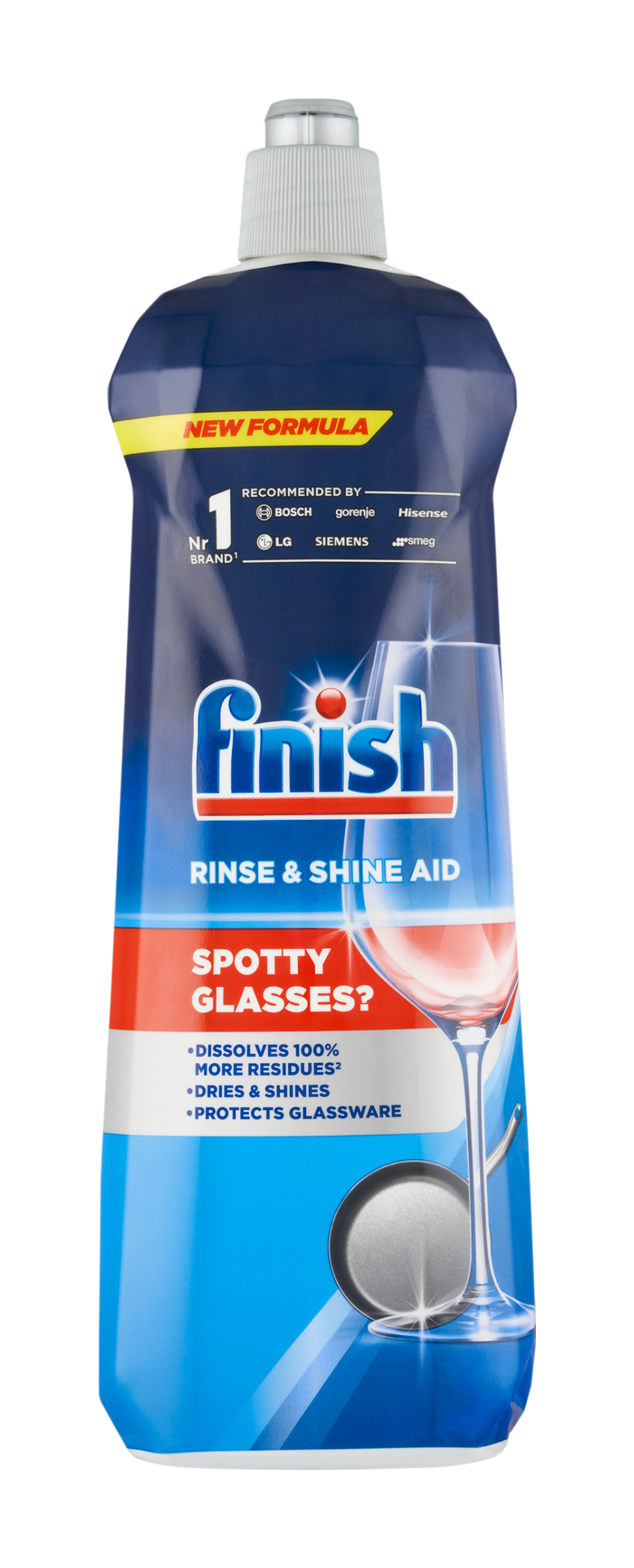 2x lepší schnutí vs. použití samotného detergentu Finish. Speciálně vytvořená směs povrchově aktivních látek pro lesk. Finish je nejvíce prodávanou značkou v kategorii automatického mytí nádobí na základě obratu dosaženého v EU (kromě Kypru, Finska, Lucemburska a Malty) v předchozím roce. Zdroj: Nielsen. Nádobí z myčky může zůstat mokré, se skvrnami od vody a vodního kamene. Finish leštidlo rozpouští o 100 % více usazenin², urychluje schnutí a činí nádobí lesklejší, chrání sklo. ²vs. použití samotného detergentu Finish. Usazeniny: vodní kámen, šmouhy od vody, skvrny a povlak. Nepřilnavé keramické pánve.