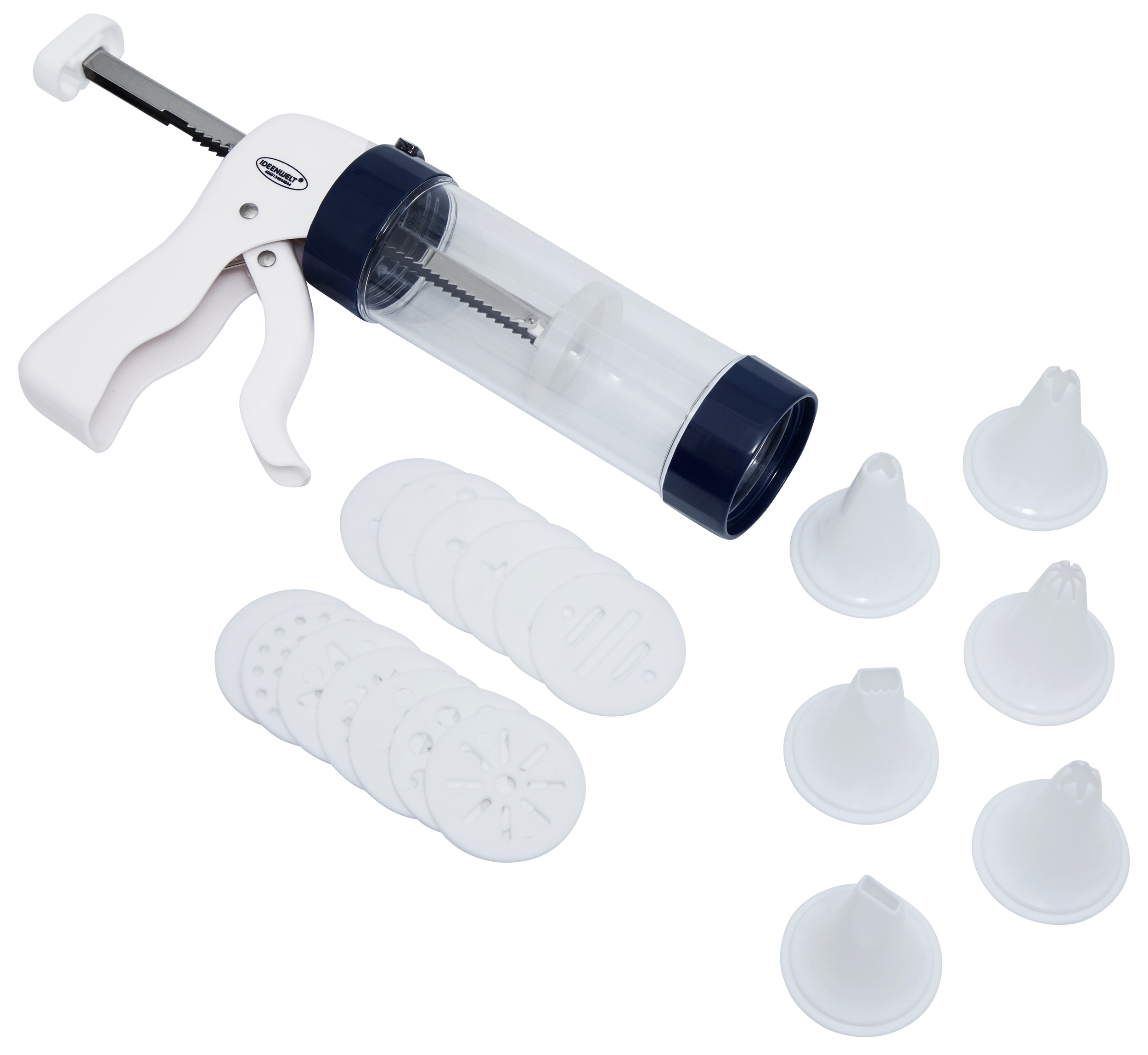 S 6 vyměnitelnými nástavci a 13 šablonami pro pečení a zdobení dortů.