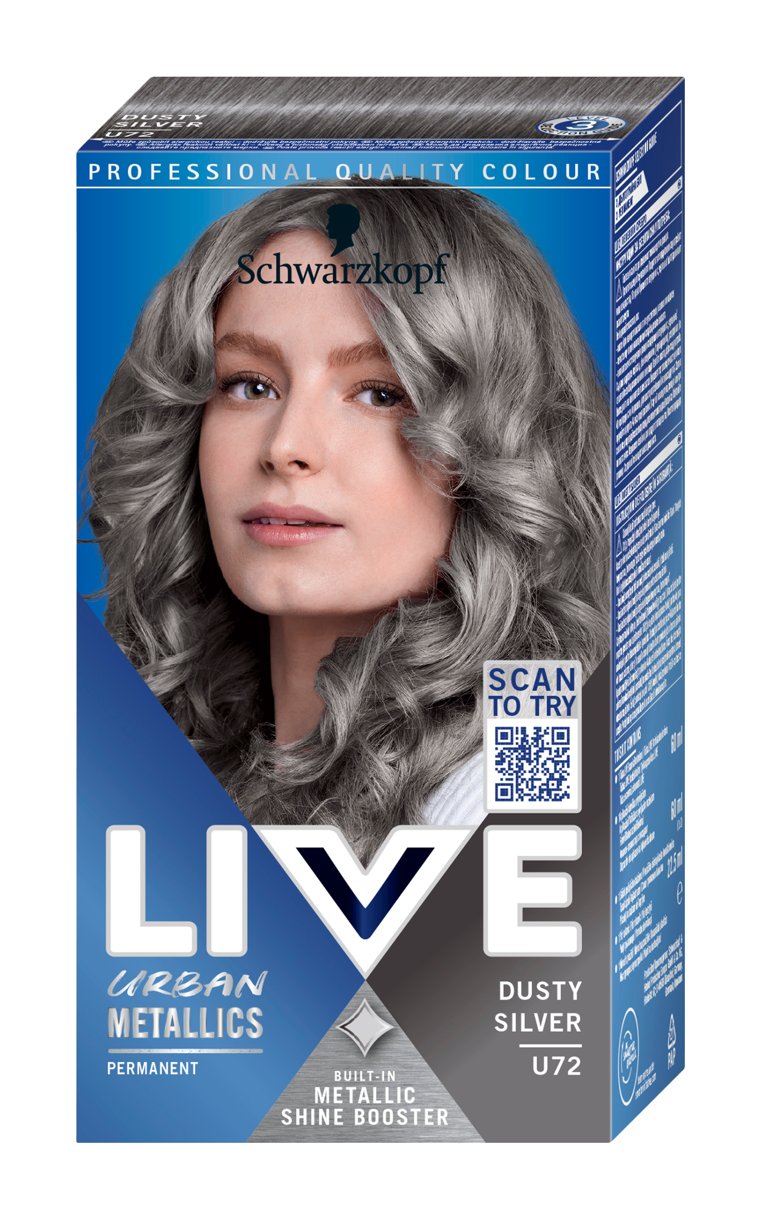 Jsou metalické odlesky váš styl? Objevte řadu úžasných odstínů Schwarzkopf LIVE Urban Metallics, které vám umožní dosáhnout chladných odstínů s metalickým efektem, výraznou barevnou intenzitou a nádherným leskem. Efekt proti vyblednutí zajistí, že barevný výsledek bude dlouhotrvající. Intenzivní péče s kokosovým olejem navíc zanechá vlasy zdravě vypadající a jemné na dotek. Tento odstín je vhodný pro světlé blond až středně hnědé vlasy.