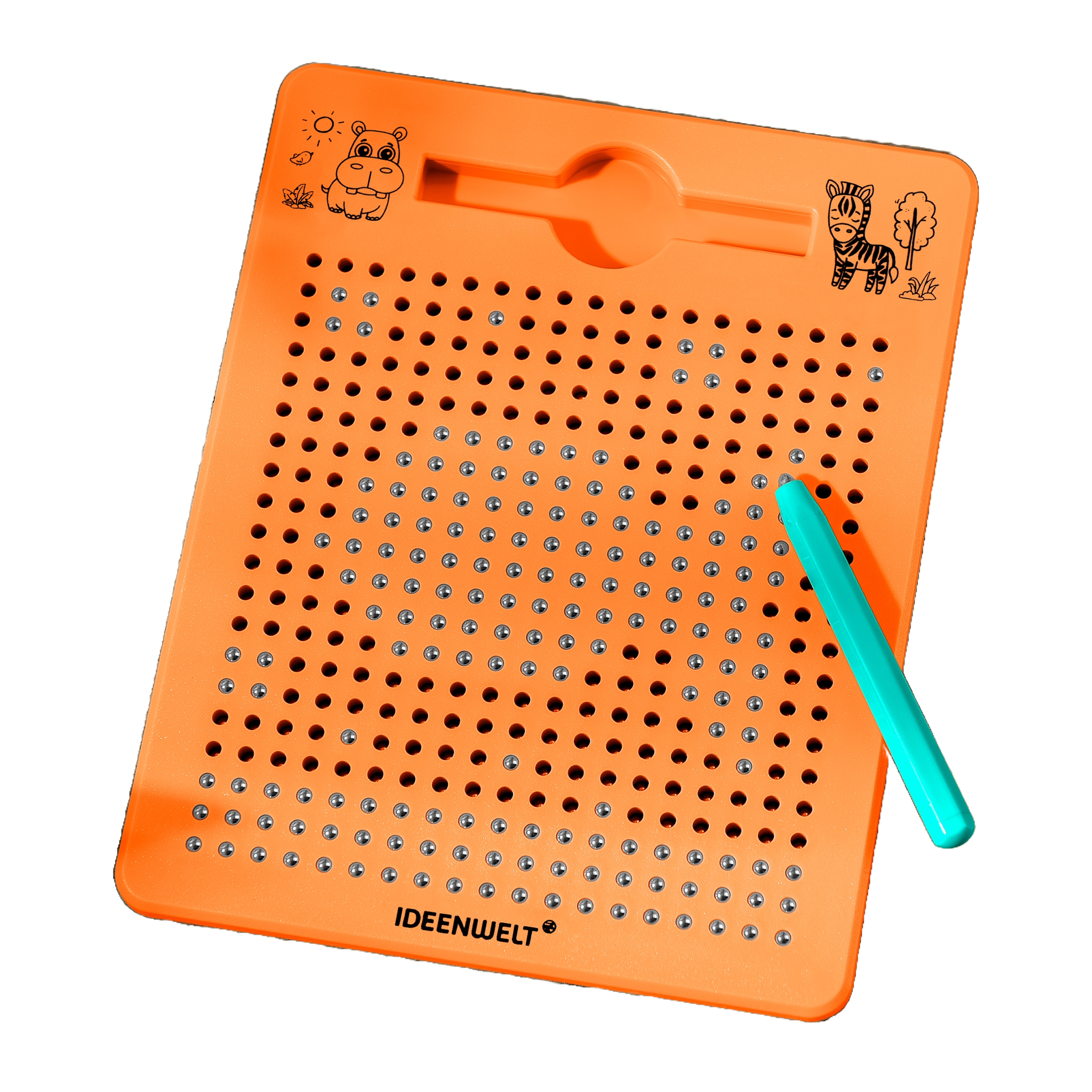 Magnetická kreslicí tabulka Ideenwelt nabízí zábavný způsob, jak rozvíjet kreativitu a motoriku. Děti mohou pomocí speciálního pera vytvářet různé obrázky a vzory, přičemž magnetické kuličky reagují na pohyb. Tabule je snadno přenosná a poskytuje nekonečné hodiny zábavy. Je ideální jak pro domácí, tak pro cestovní použití.
