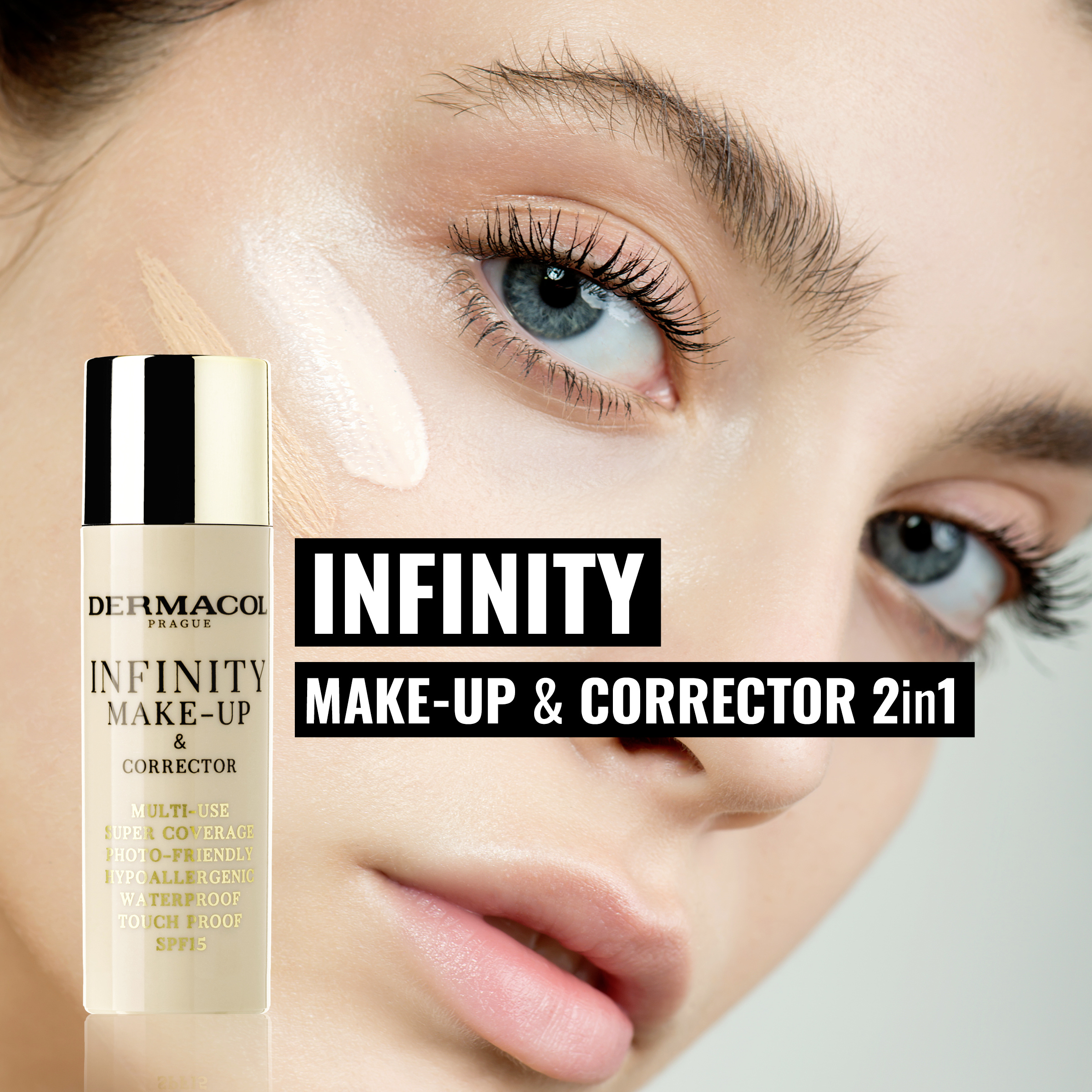 Víceúčelový, vysoce krycí make-up a korektor 2v1, zakryje všechny nedokonalosti, pigmentové skvrny a dodá pleti bezchybný sametový vzhled. Bezvodá, extra lehká, vysoce krycí fluidní textura nezanechává pocit „těžké“ pleti. Stačí velmi tenká vrstva, která vytvoří krásný a kompaktní efekt na pokožce. Obsahuje částečky jojobového vosku, který se při kontaktu s kůží rozehřeje a vytvoří tak ochrannou vrstvu. Výsledkem je hedvábně hladká a krásná pleť. Obsahuje vitamin E. Bez parabenů, konzervantů, bez parfemace, bez minerálních olejů. Hypoalergenní, voděodolný a dotekuodolný. SPF 15.