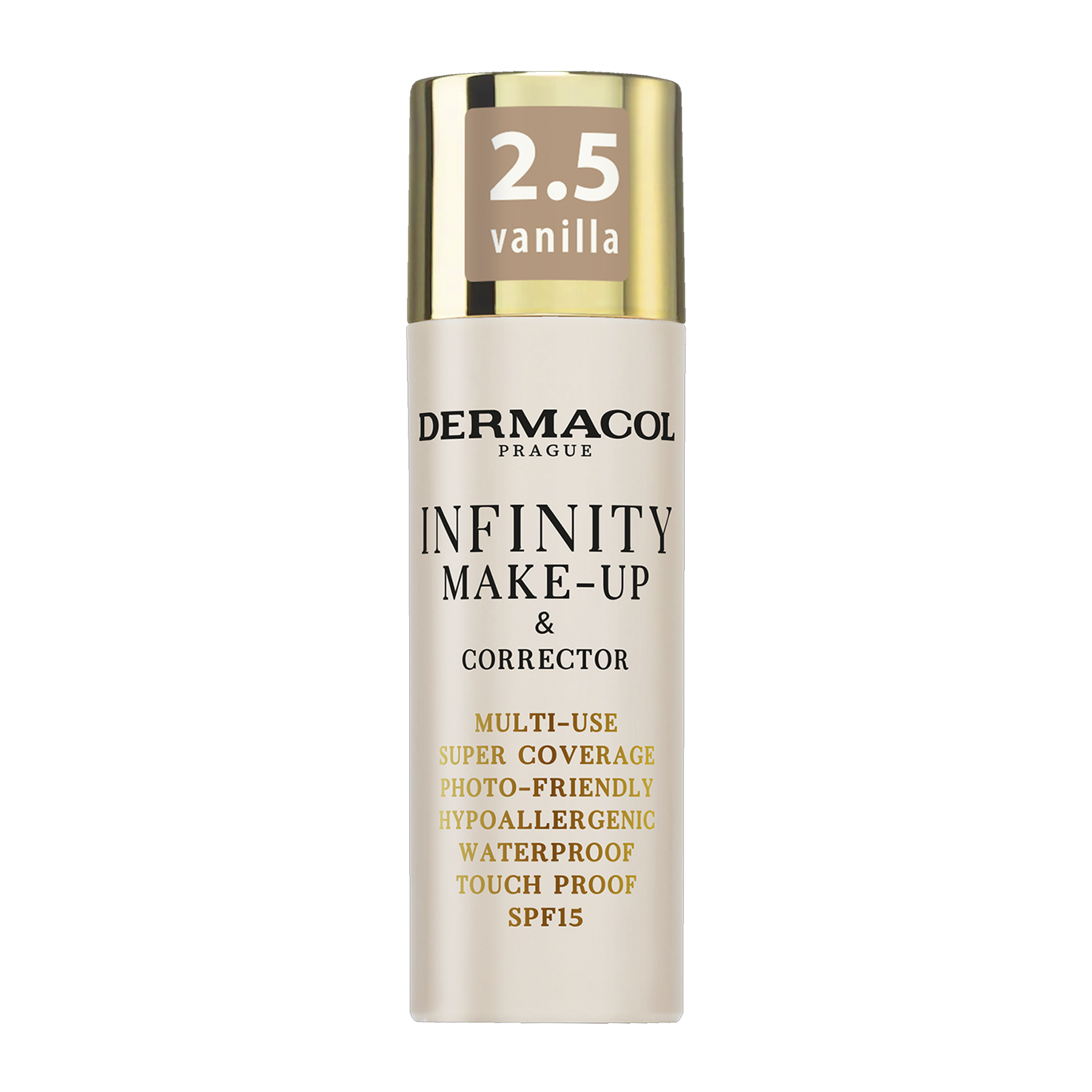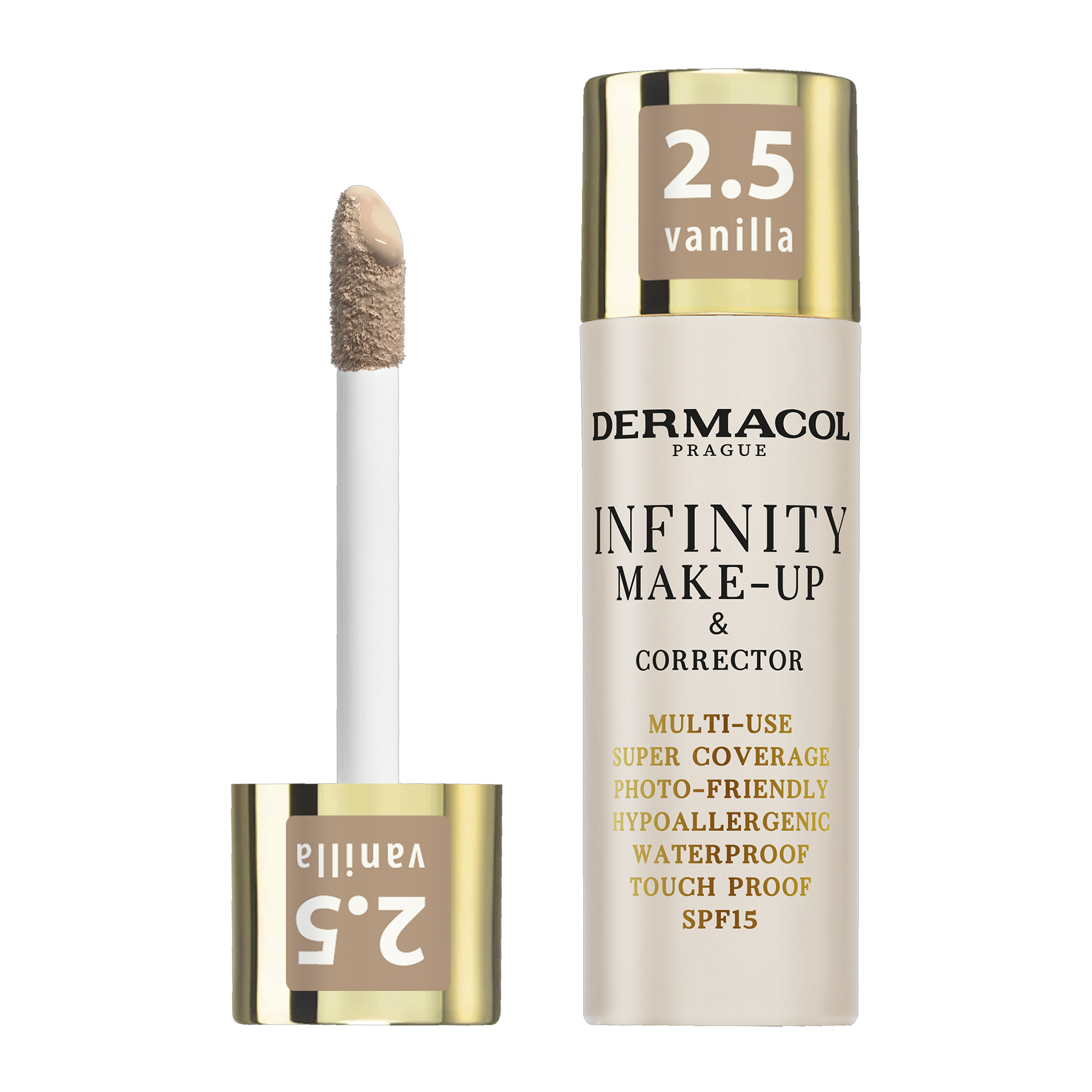 Make-up a korektor Infinity č. 2,5 Vanilla přináší bezchybný sametový vzhled pleti v jediném kroku. Tento multifunkční make-up 2v1 slouží zároveň jako korektor, a díky své vysoké krycí schopnosti spolehlivě sjednocuje tón pleti, maskuje pigmentové skvrny, začervenání i další nedokonalosti. Ultralehká bezvodá textura přilne k pokožce jako druhá kůže, aniž by ji zatěžovala, a vytváří hladký a přirozený finiš.
