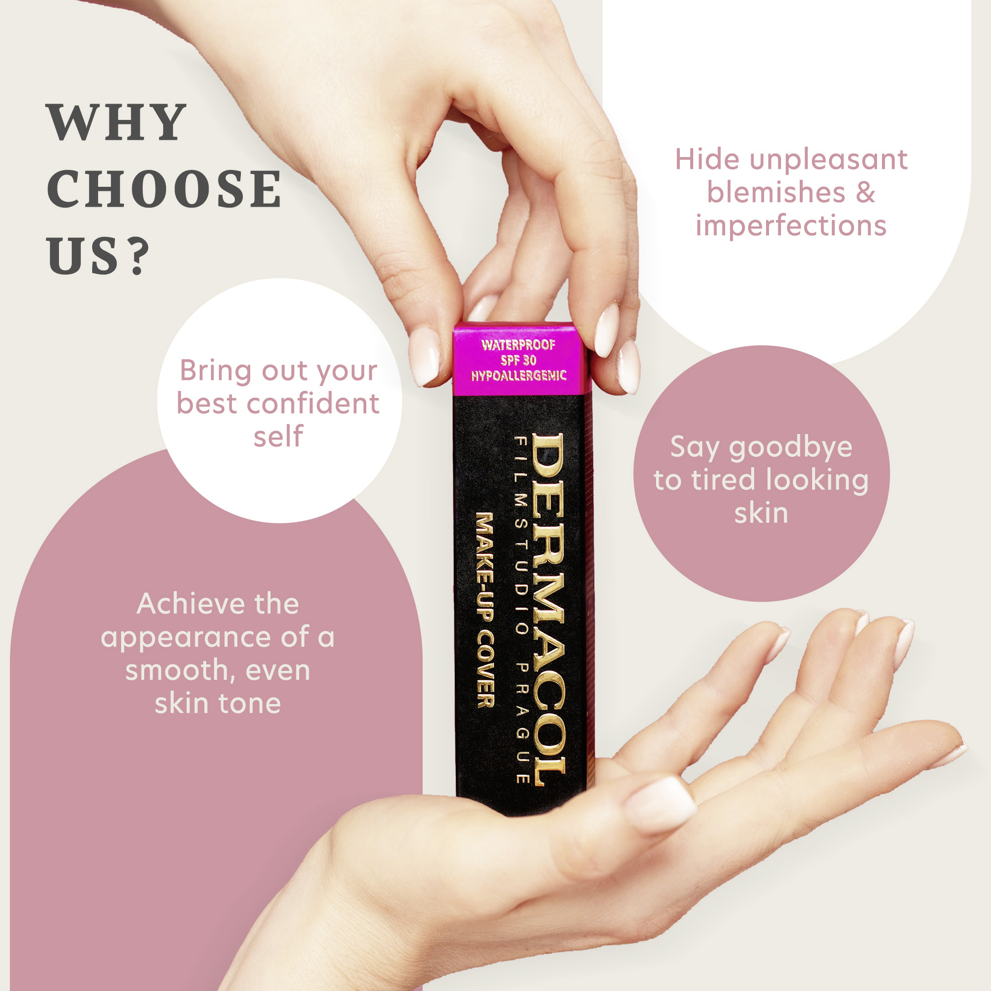 Klinicky testovaný, extrémně krycí make-up Cover vznikl jako jeden z prvních krycích make-upů v Evropě i ve světě. Jeho receptura byla vyvinuta ve Filmovém studiu Barrandov v Praze, pro potřeby profesionálních vizážistů a poté prodána do Hollywoodu.
