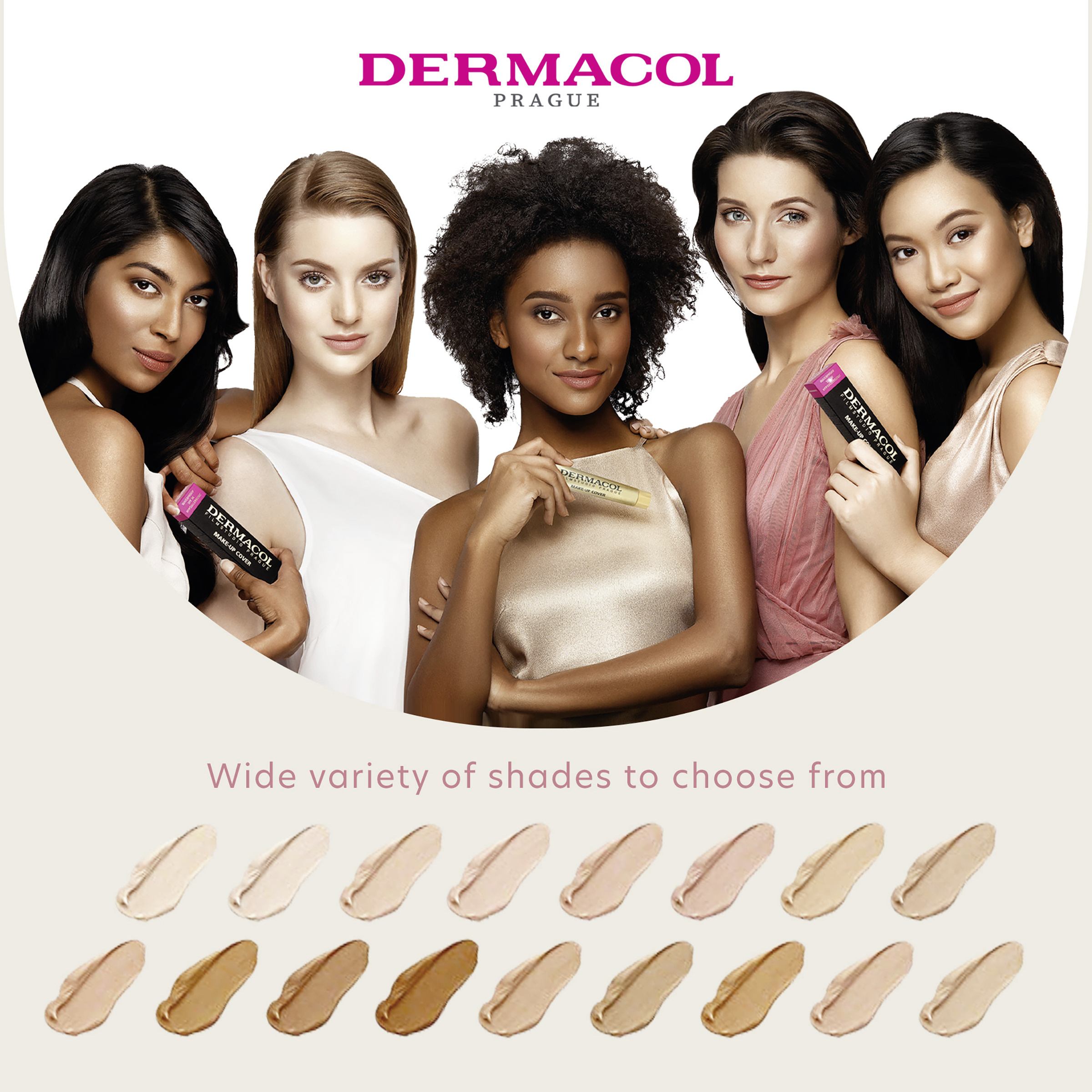 Má dlouhotrvající efekt a umožní překrytí jak drobných, tak i rozsáhlejších kožních vad: kruhů pod očima, jizviček, pupínků, ztrát pigmentu, barevných skvrn apod. Vylepšuje vhled unavené pleti, ztrátu jasu, nesjednocenou a bledou pokožku. Nanáší se na podkladový krém a je možné jej kombinovat s jinými make-upy řady Dermacol.