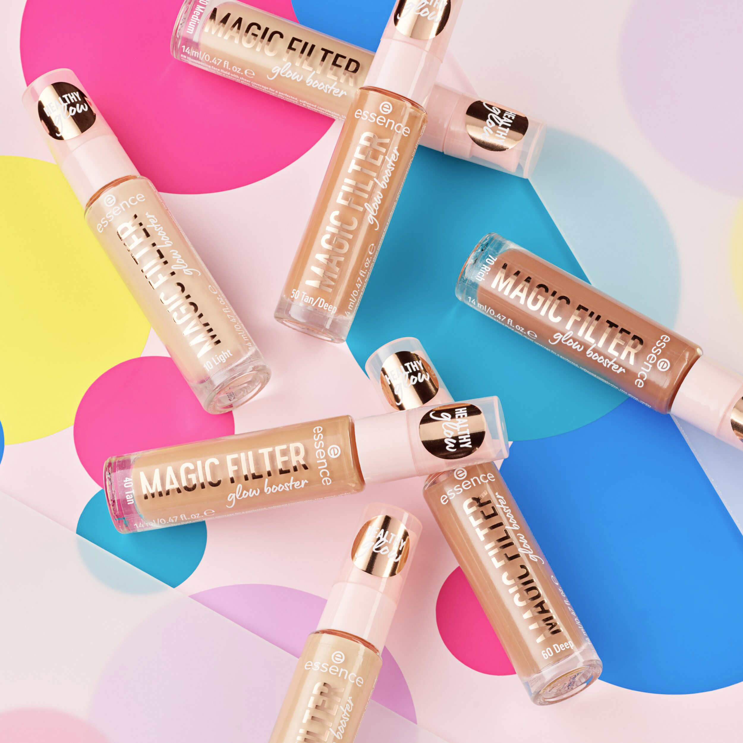 Není zapotřebí žádný filtr: essence podklad MAGIC FILTER glow booster 40 Tan pleť sjednocuje a dodává jí efekt soft-focus. Můžete jej použít jako rozjasňovač pod make-up nebo jen samostatně. Jeho lehké krytí zakrývá nedokonalosti a zarudnutí. To vytváří perfektní základ pro vytvoření vašeho oblíbeného looku nebo pro vyzkoušení nových trendů. Nebo vytvoříte přirozený vzhled s krásným rozjasněním, které vám dodá váš essence podklad MAGIC FILTER glow booster 40 Tan. Rozhodněte se, co vám vyhovuje!