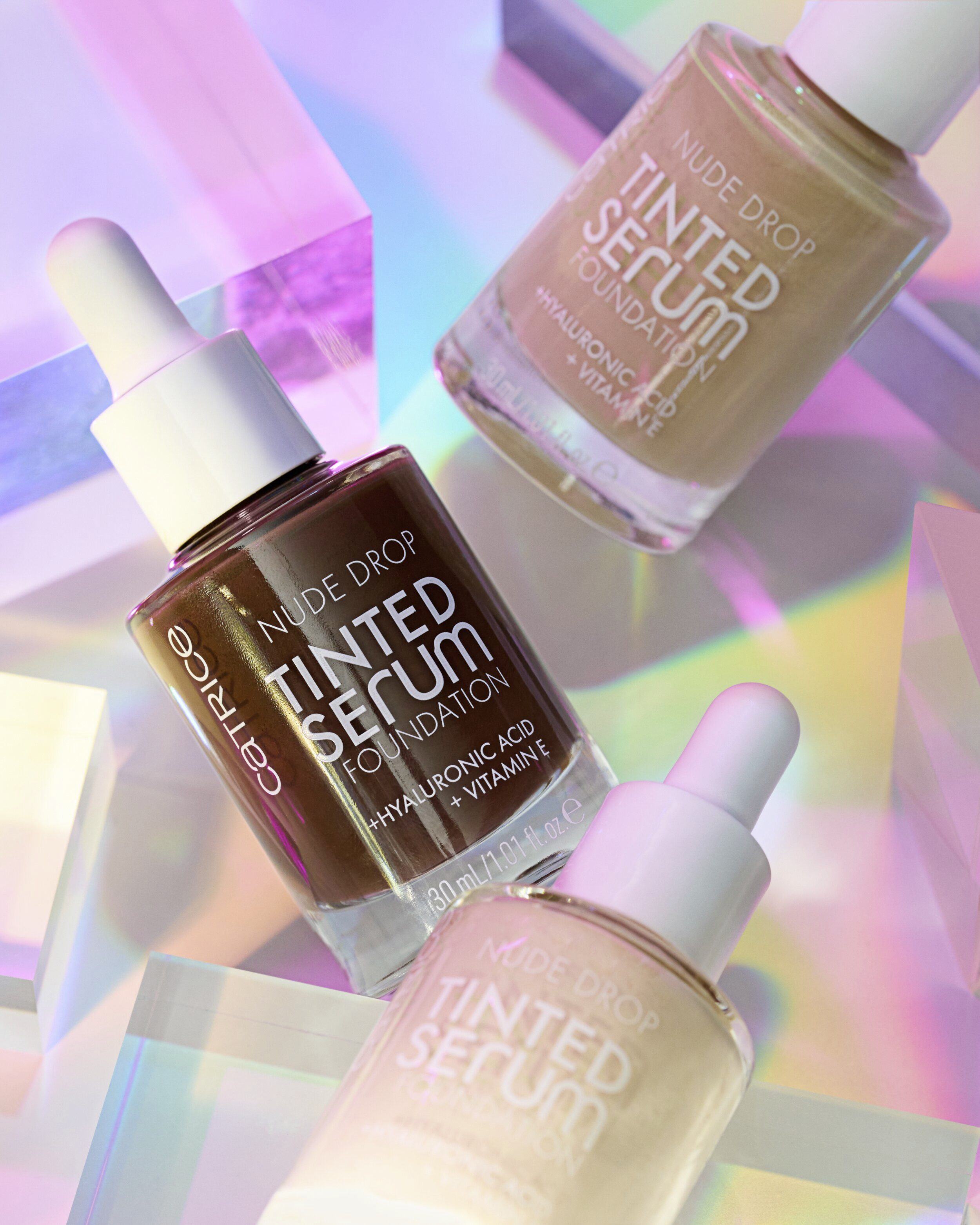 Textura jako sérum, krytí jako make-up: Make-up sérum Nude Drop má lehkou velmi tekutou texturu, která umožňuje pokožce dýchat. Obsahuje kyselinu hyaluronovou a vitamín E, které poskytují 24 hodinovou hydrataci. Speciálně obalené pigmenty zajišťují dlouhotrvající fixaci a vrstvitelné lehké až střední krytí pro zářivou pleť s přirozeným matným efektem. Složení neobsahuje parfemaci a je vhodné pro citlivou pokožku. Pro dosažení nejlepších výsledků před aplikací protřepejte k promíchání séra a make-upu.
