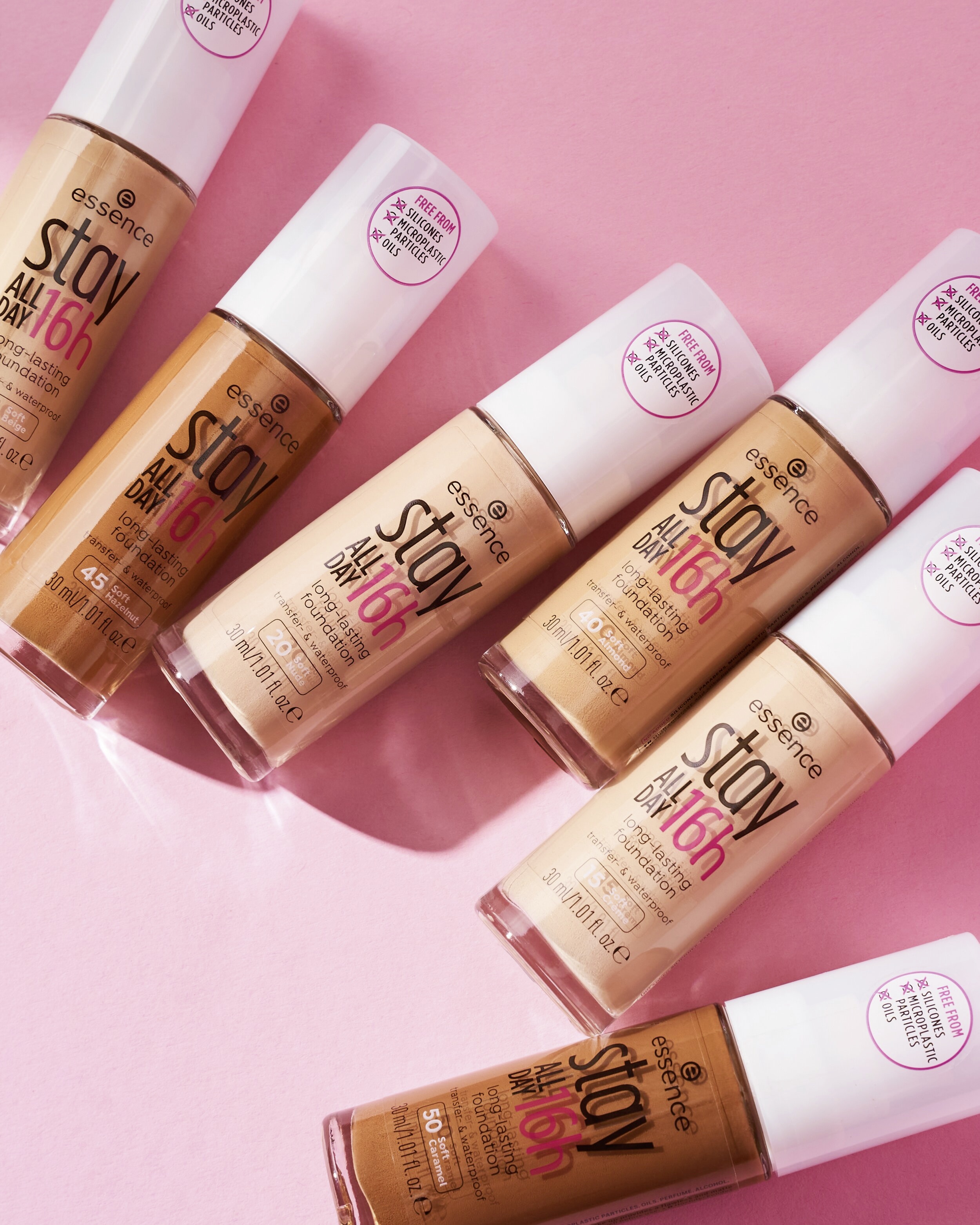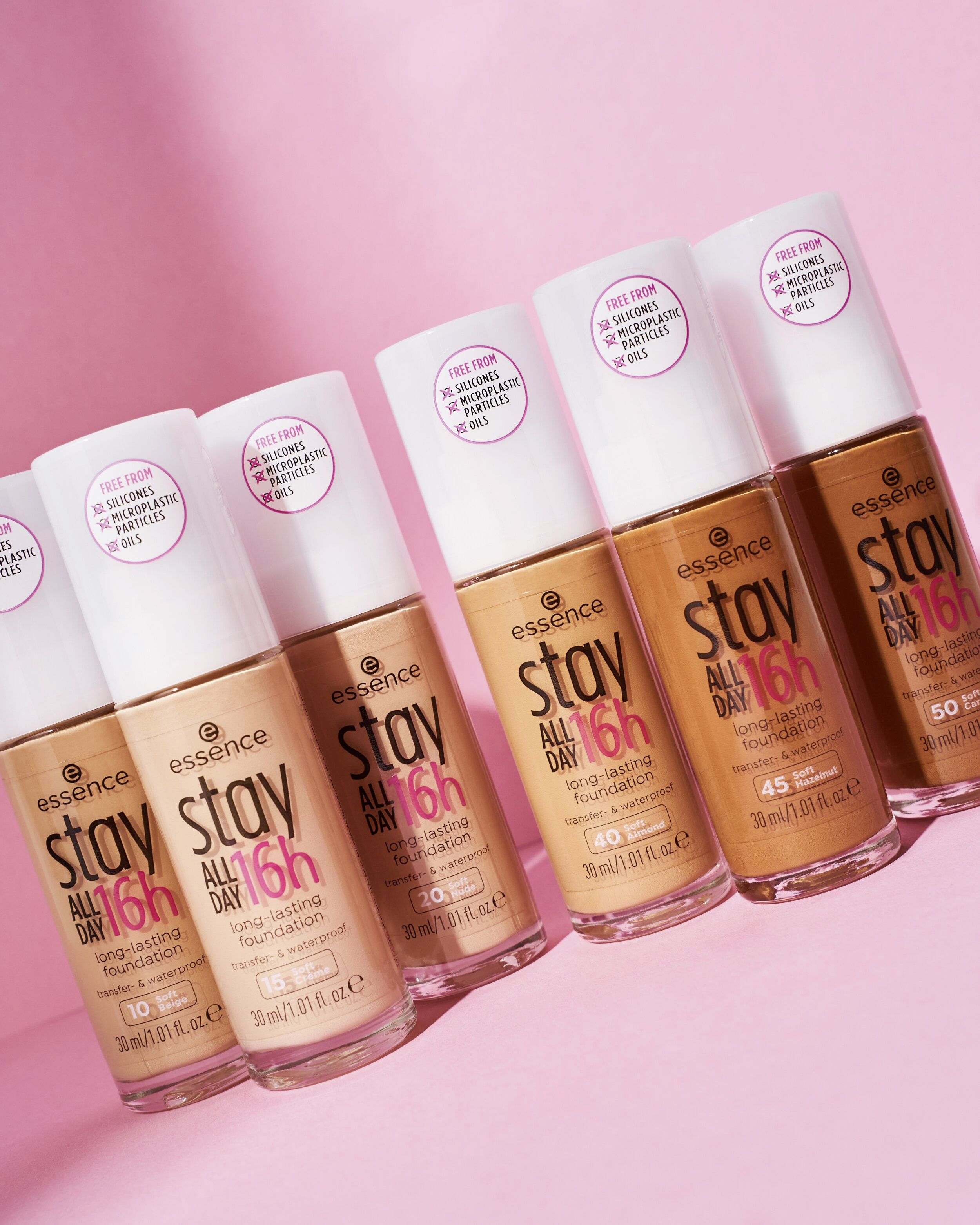 Složení make-upu STAY ALL DAY 16H neobsahuje mikroplasty, silikony, parabeny, alkohol ani olej. Make-up ve skleněné nádobce má jemnou texturu, zjemní a sjednotí povrch pleti po dobu až 16 hodin a nabízí střední až vysoké krytí. Je odolný proti vodě a neobtiskává se.