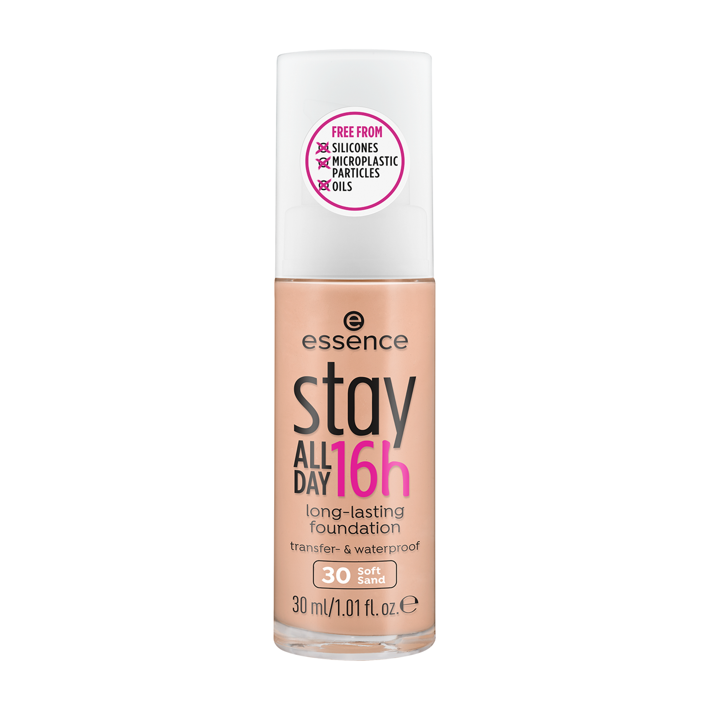 Složení make-upu STAY ALL DAY 16H neobsahuje mikroplasty, silikony, parabeny, alkohol ani olej. Make-up ve skleněné nádobce má jemnou texturu, zjemní a sjednotí povrch pleti po dobu až 16 hodin a nabízí střední až vysoké krytí. Je odolný proti vodě a neobtiskává se.