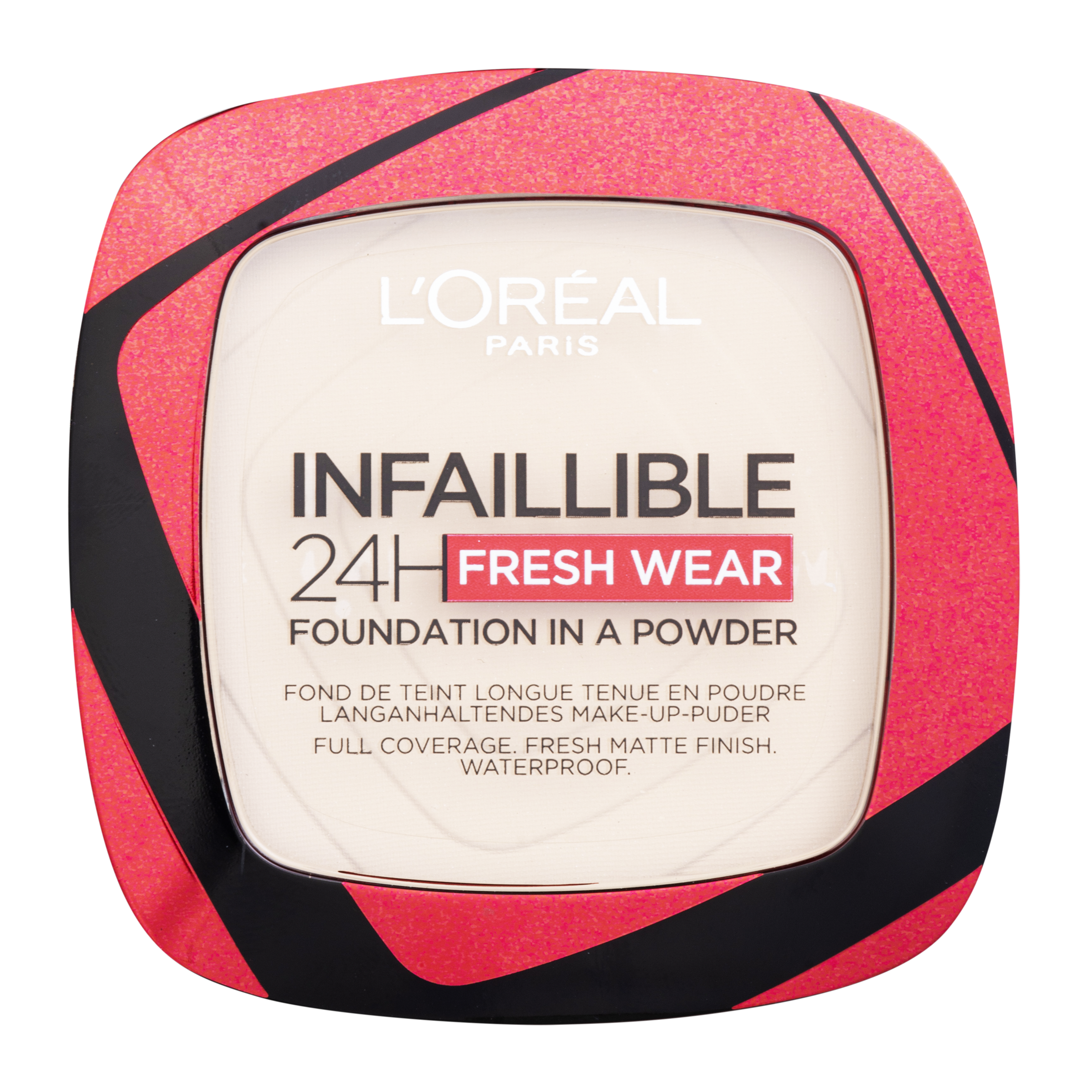 Infaillible 24H Fresh Wear Make-up v pudru od L’Oréal Paris kombinuje dlouhodobé krytí a výdrž tekutého make-upu spolu s matným efektem a jednoduchou aplikací pudru. Ultra jemné dlouhotrvající pigmenty zajištují plné krytí a dodávají pleti spolehlivě matný povrch bez toho, aby pleť zatěžovaly či vytvářely efekt masky. Pudrová struktura zajišťuje pohodlné nošení bez pocitu suché pokožky a díky prodyšné formuli zas přirozený a svěží efekt, který vydrží až 24 hodin. Je odolný proti vodě, potu a vydrží i při vysoké vlhkosti. Kromě make-upu, primerů a korektorů doplňuje Infaillible make-up v pudru naprosto spolehlivou, neomylnou řadu od L’Oréal Paris. Dlouhodobému matnému vzhledu nic nestojí v cestě a Vás už nic nemůže zastavit.