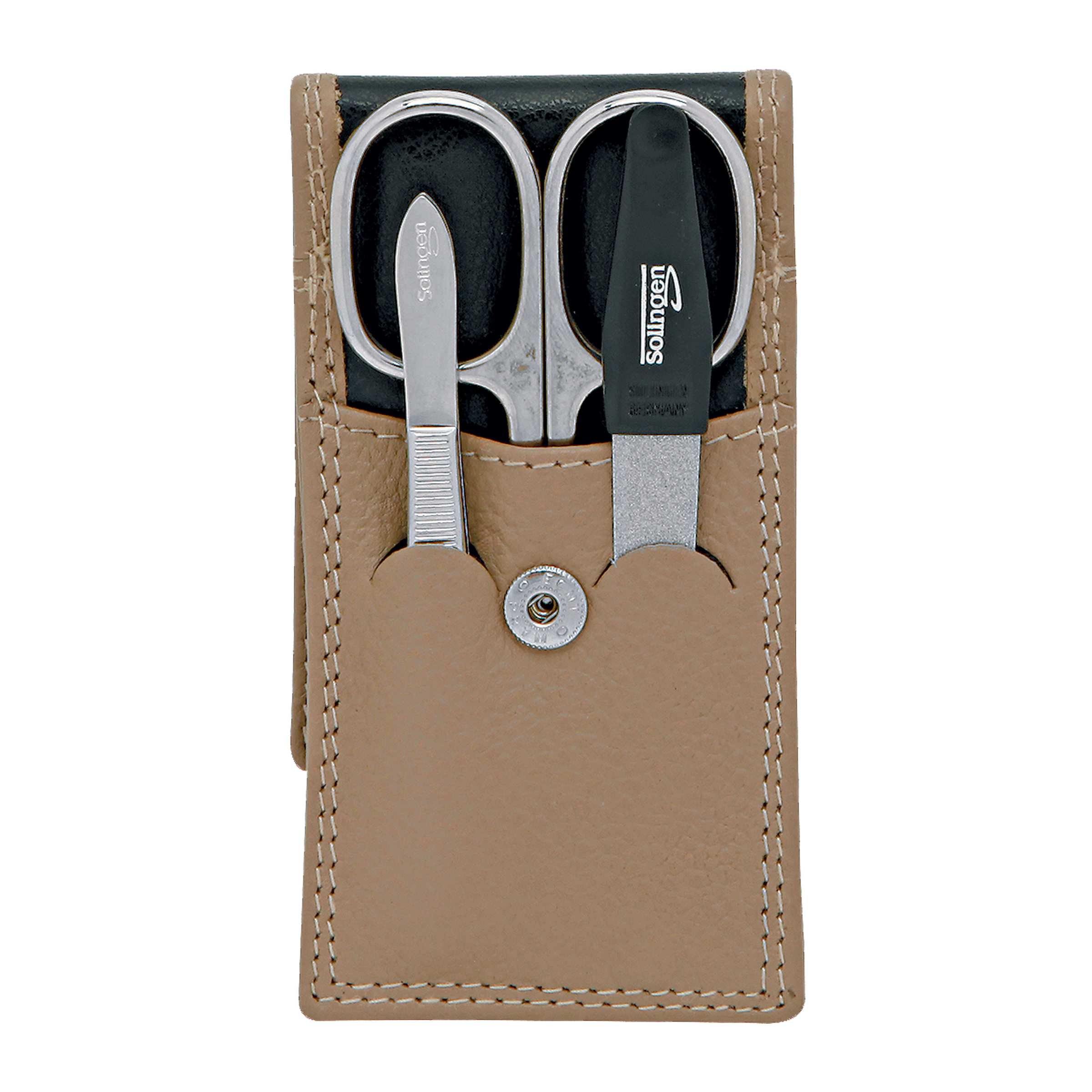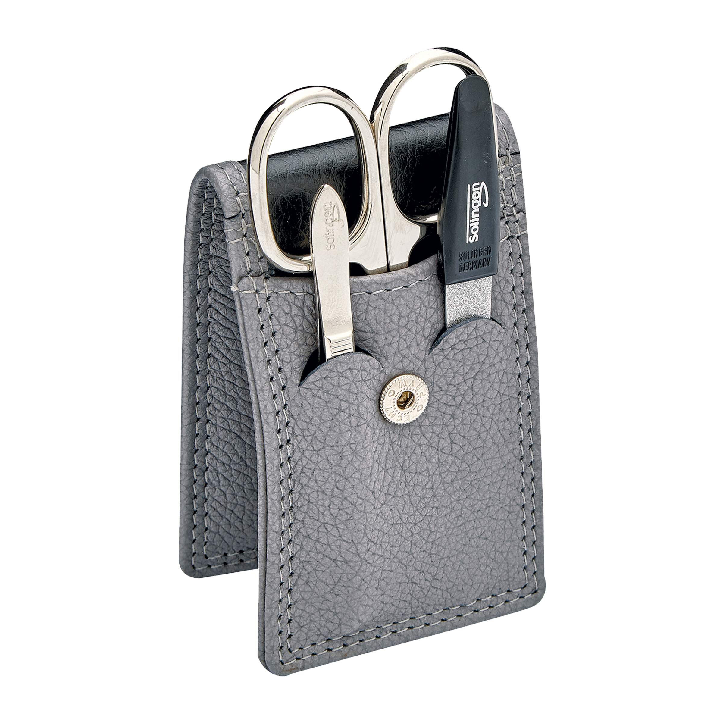 Nůžtičky, pinzeta a pilník - vše v praktickém koženém pouzdře, takže se hodí do každé tašky či kabelky. Na malou úpravu nehtů budete odteď vždy připraveni.