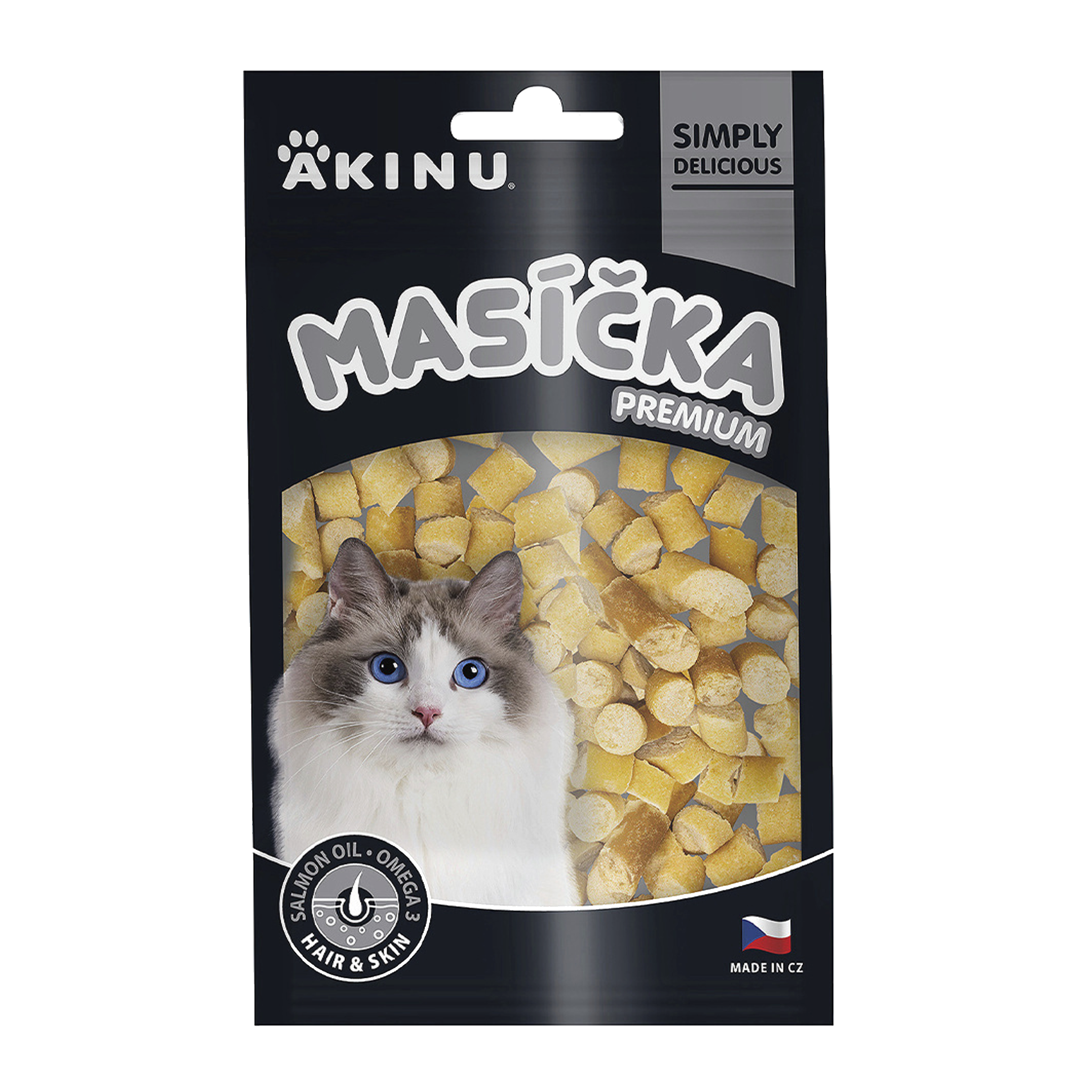 Masíčka Premium Hair & Skin dodají kočce výživu, která podpoří její krásnou srst i zdravou pokožku zevnitř. Rybí receptura s lososovým olejem a omega-3 mastnými kyselinami posiluje kvalitu srsti, pomáhá udržet její přirozený lesk a zároveň zklidňuje suchou či podrážděnou pokožku. Díky podpoře pevnosti chlupů omezují nadměrné vypadávání, přispívají k vitalitě a posilují imunitní systém, což ocení i citlivější kočky. Jemné složení bez zbytečných příměsí tak dodává každému soustu nejen skvělou chuť, ale i účinnou péči o srst, pokožku a celkovou pohodu.