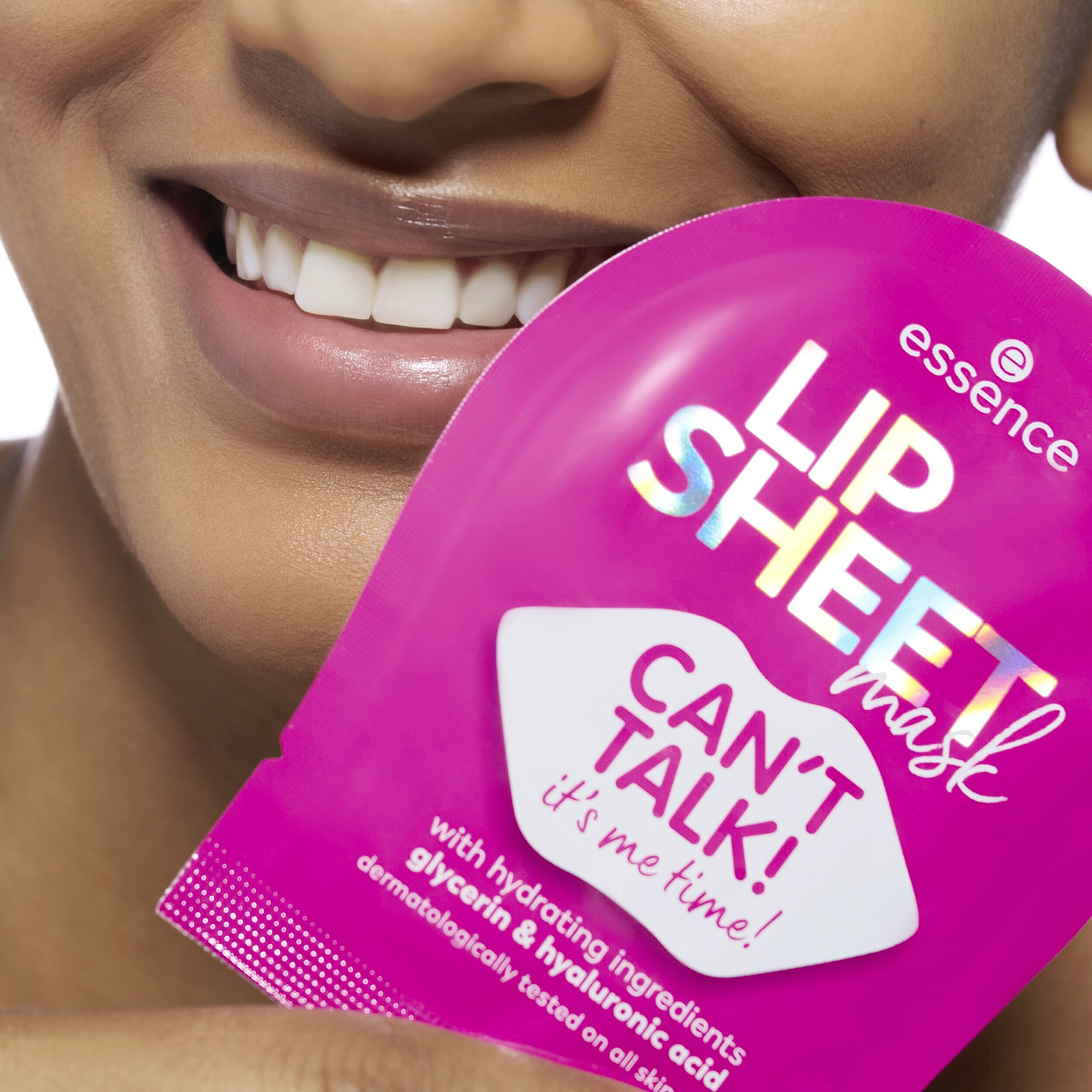 Udělejte si chvilku sami pro sebe s essence Lip sheet mask 01 Can't talk! It's me time! a dopřejte svým rtům okamžitou dávku péče. Tato průhledná plátýnková maska s růžovým potiskem promění běžnou rutinu v příjemný self-care rituál. Pečující složení s kyselinou hyaluronovou a glycerinem intenzivně hydratuje, zjemňuje a pomáhá vyhladit suché rty. Po aplikaci zanechává rty hebké, hladké a viditelně ošetřené. Masku stačí přiložit na čisté a suché rty a nechat působit, zatímco si dopřejete chvíli odpočinku. Ideální jako rychlá vzpruha po náročném dni nebo jako milý beauty moment pro sebe i někoho blízkého.