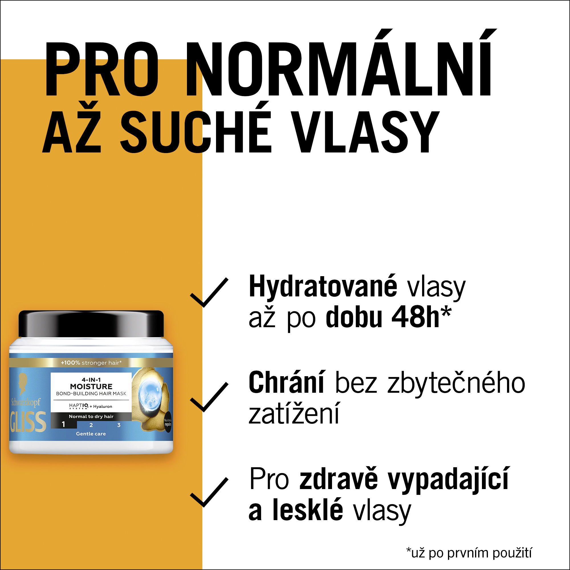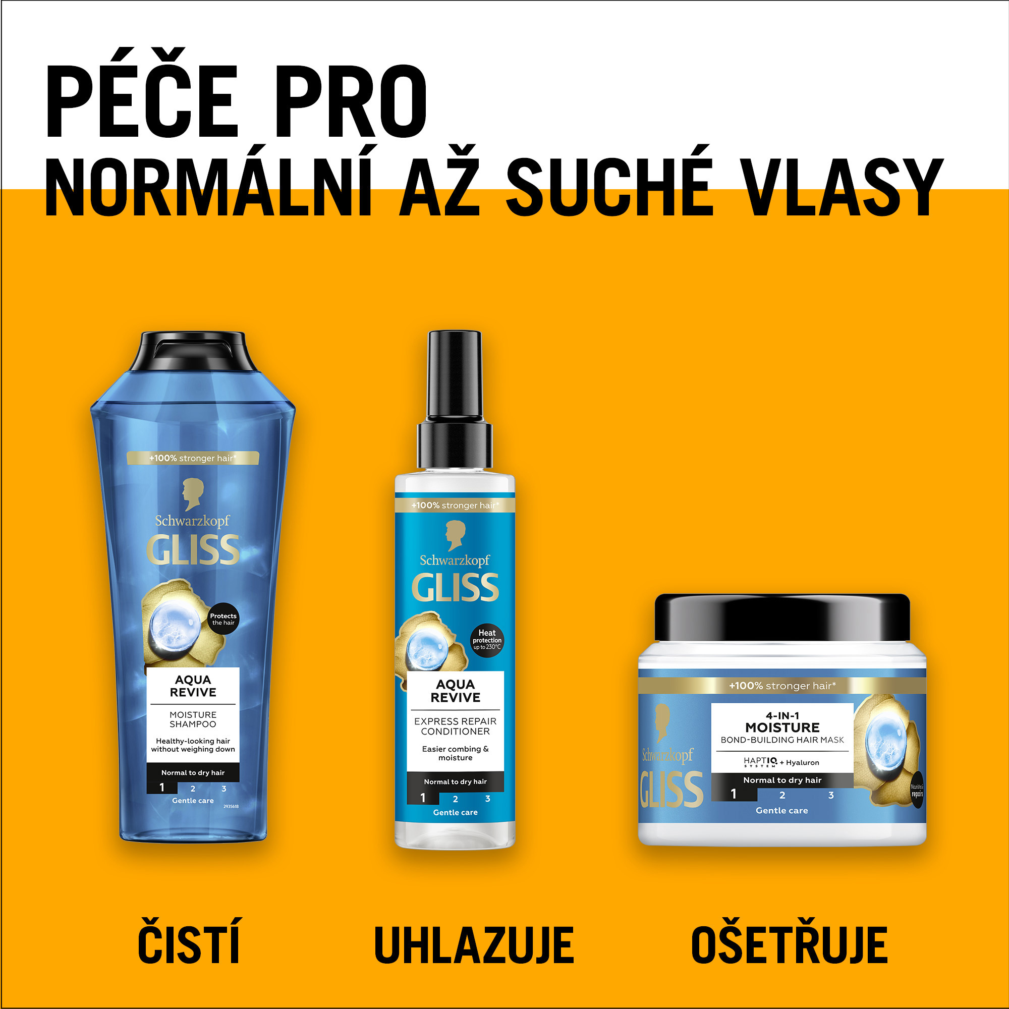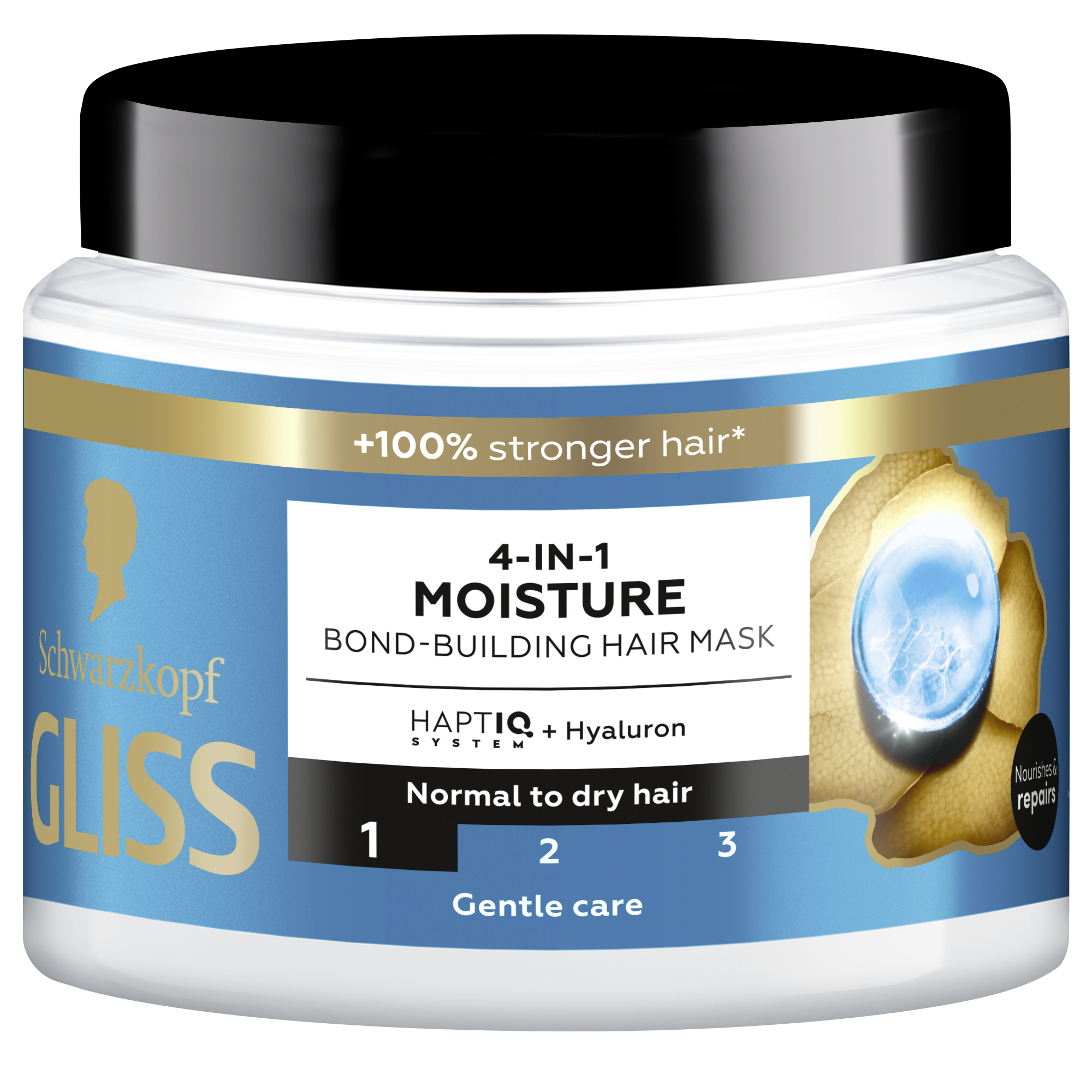 Schwarzkopf Gliss Aqua Revive 4v1 hydratační a vyživující maska pro normální až suché vlasy Stejně jako vaše pokožka potřebuje hydratovat, i vaše vlasy potřebují speciální péči. Hydratační maska na vlasy Gliss Aqua Revive kombinuje HAPTIQ systém a hyaluron, aby zajistila intenzivní regeneraci a pocit hydratovaných vlasů po dobu až 48 hodin již po prvním použití. Hydratační kúra s lehkou krémovou texturou poskytuje intenzivní výživu a zanechává vlasy lesklé a zdravě vypadající bez nadměrného zatížení. Tato vlasová kúra Gliss se systémem HAPTIQ vytváří mikrovazby a posiluje vlasovou strukturu. Pro krásné výsledky, které můžete vidět i cítit.