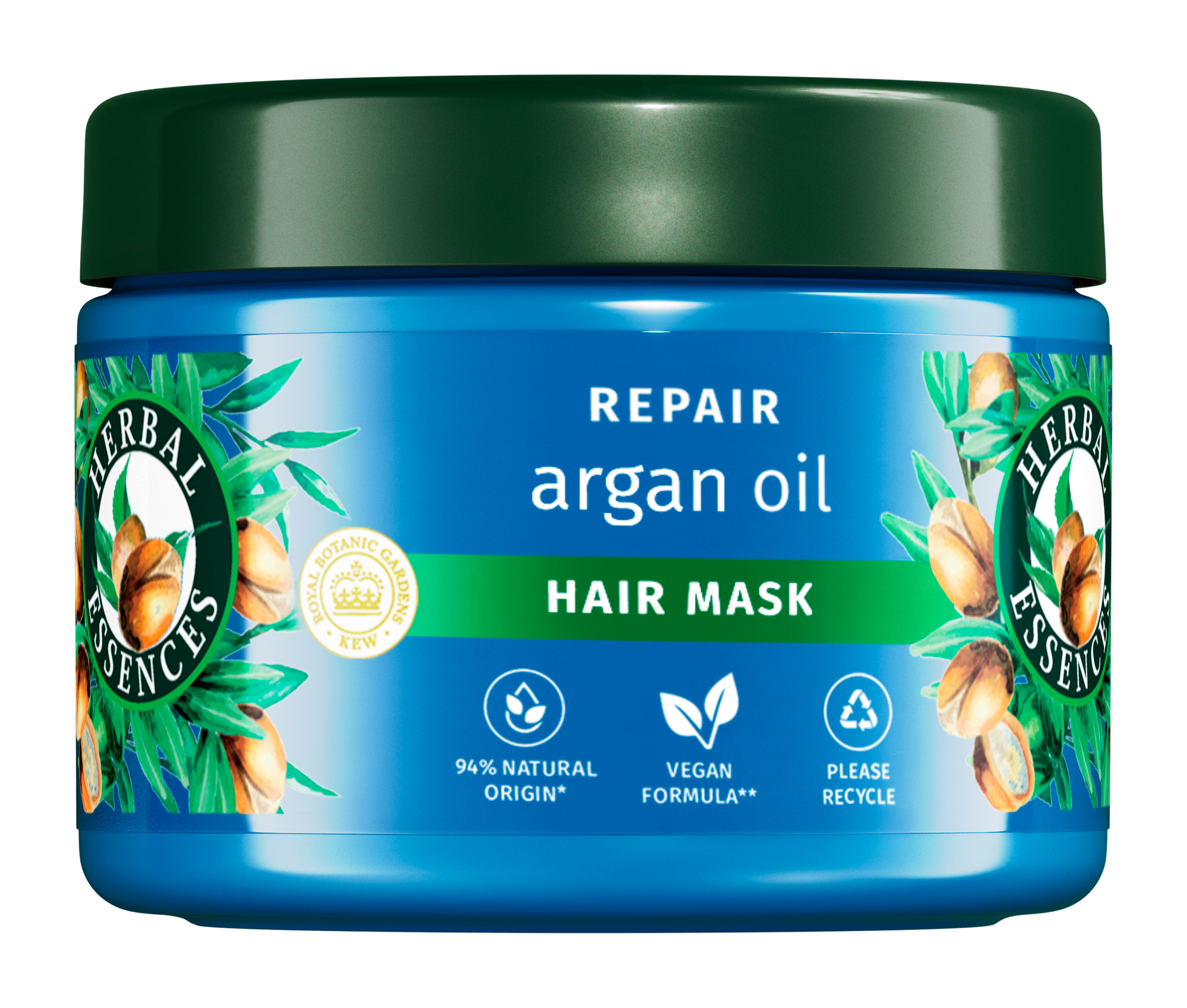 Dodejte svým vlasům výživu pocházející z přírody. Obnovující maska na vlasy s arganovým olejem Herbal Essences Argan Oil Repair pomáhá vyživovat velmi suché vlasy, propůjčí vám pocit rovnováhy, zahltí vaše smysly příjemnou kokosovou vůní a zanechá ve vás pocit revitalizace. Naše směs rostlinných výživných látek je obohacena o vzácný arganový olej pocházející z ručně sbíraných marockých ořechů, díky čemuž se vyznačuje veganským složením pro hloubkovou hydrataci lámavých vlasů. Naše balení s 25krát koncentrovanějším složením přípravku pro 3denní regenerační bylinnou kúru. Dopřejte si obnovu na přírodní bázi od prvního použití. Maska na vlasy obsahuje pečlivě vybrané složky přírodního původu, a proto budete moci ve své koupelně využívat ohromující sílu přírody. Vraťte svým vlasům přirozenou krásu a potěšte své smysly díky kompletní péči s naší obnovující kolekcí s arganovým olejem.