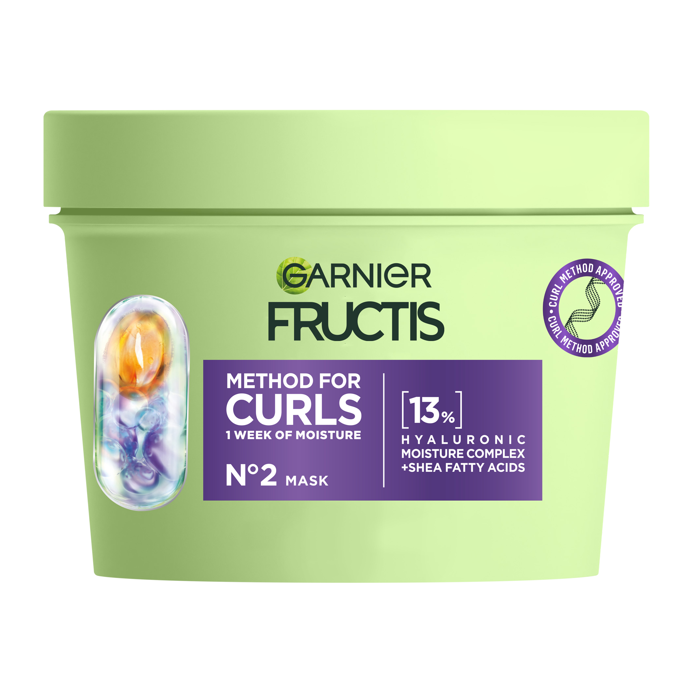 Hydratační maska na vlasy Fructis Curly Hair pro suché vlnité a kudrnaté vlasy proniká do hloubky až 5 vrstev vlasového vlákna a poskytuje dlouhotrvající hydrataci a definuje vlny i kudrny. Složení masky je obohaceno o 13% hydratační hyaluronový komplex a mastné kyseliny z bambuckého másla.