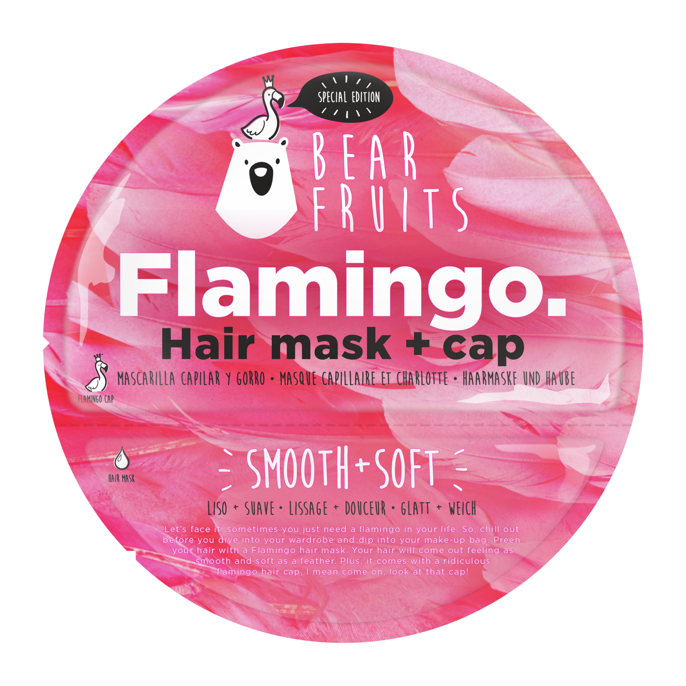 Vlasová maska Bear Fruits + Díky čepici Plameňák jsou vlasy hladké jako samet. Nasaďte si čepici a s úsměvem počkejte, až maska hloubkový balzám na vlasy odvede svou práci! Díky kombinaci arganového oleje a aloe vera budou vaše vlasy tak hebké, že se jich nebudete chtít přestat dotýkat. Je to stejné jako s pleťovou maskou, jen je tahle na vlasy.