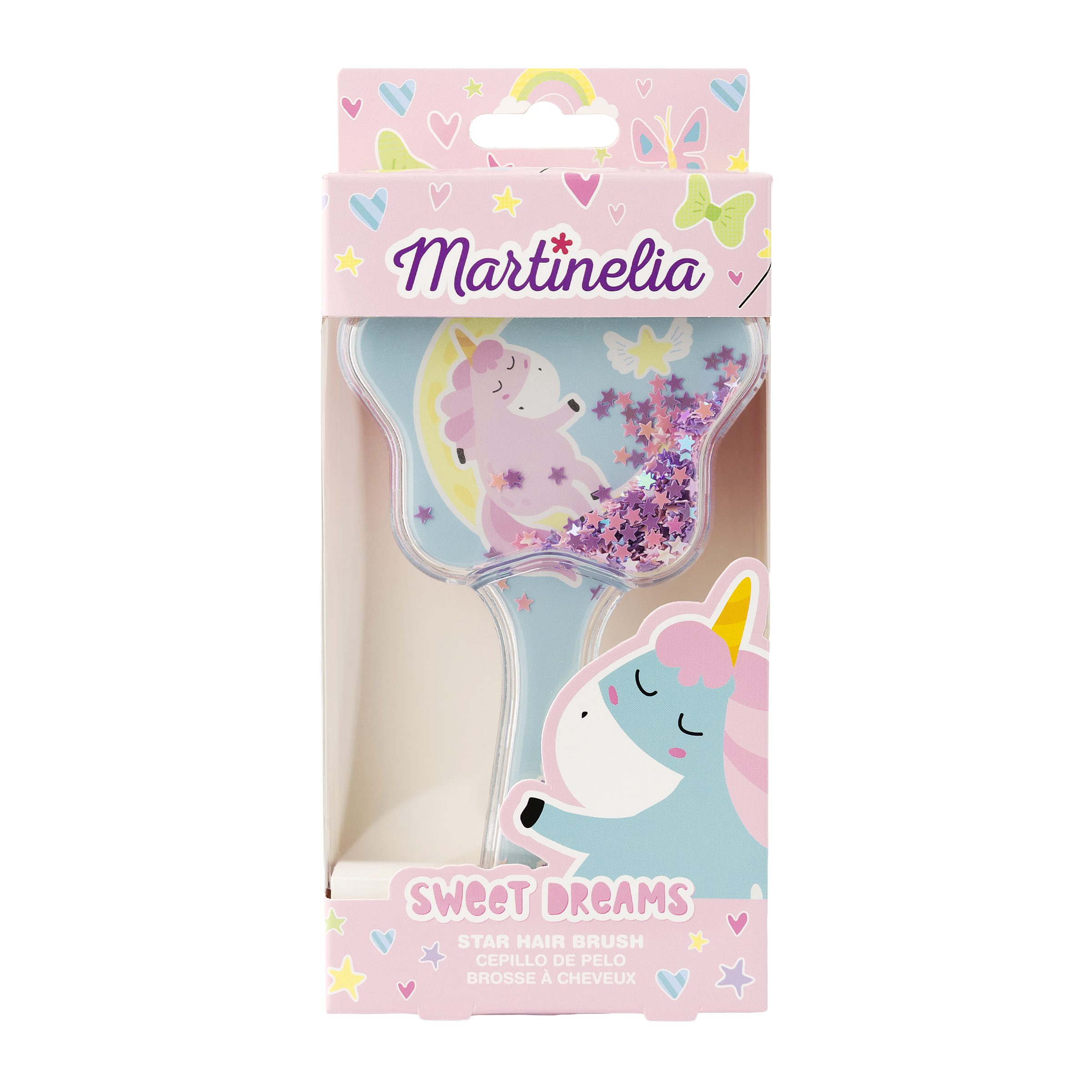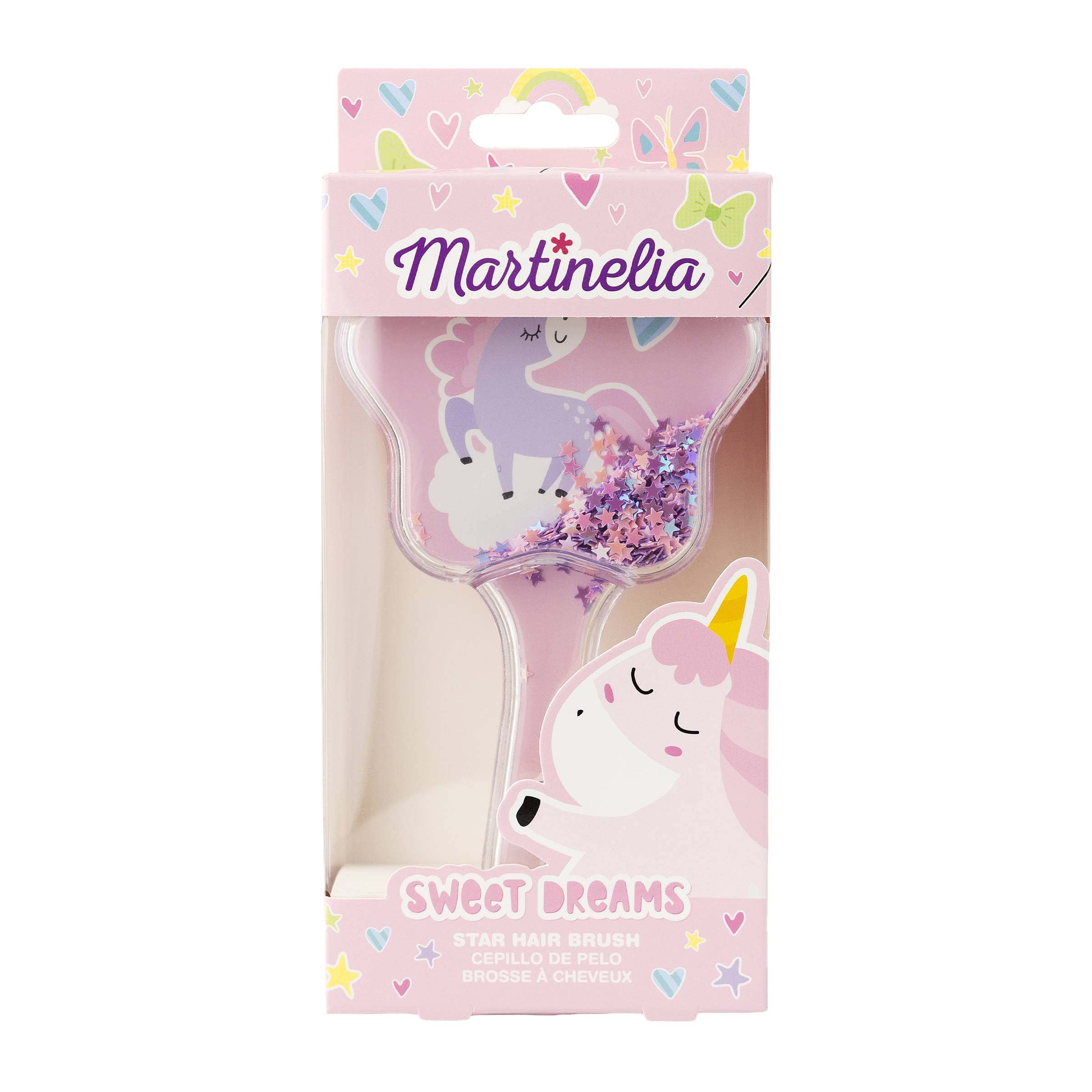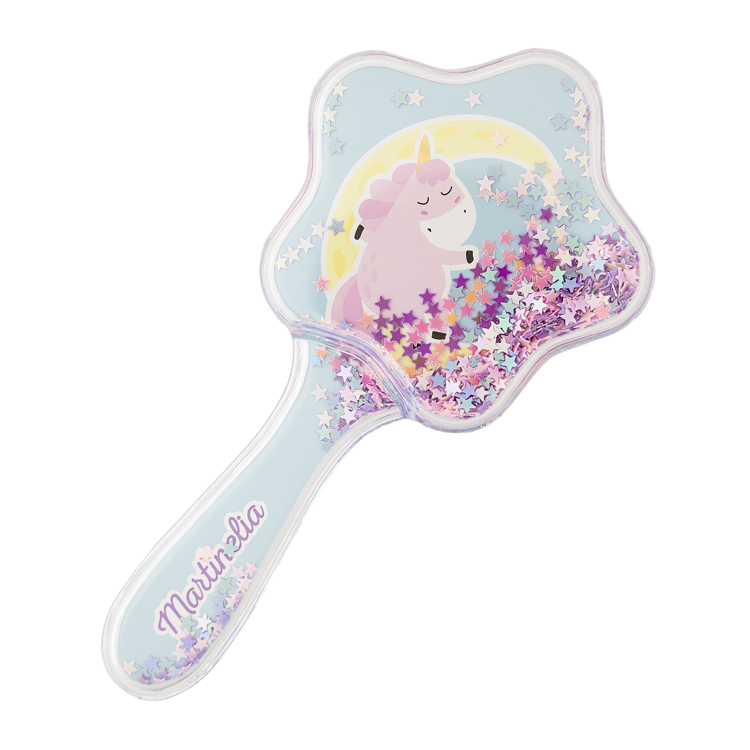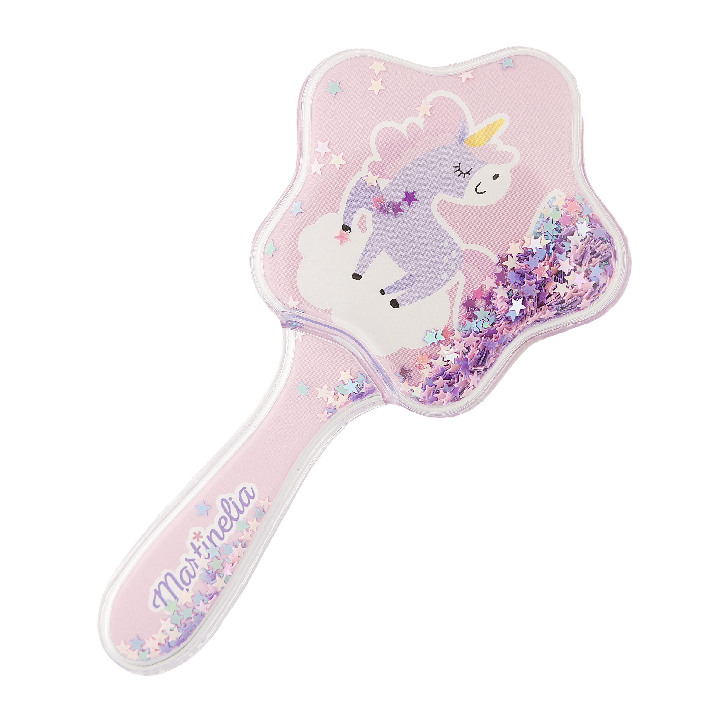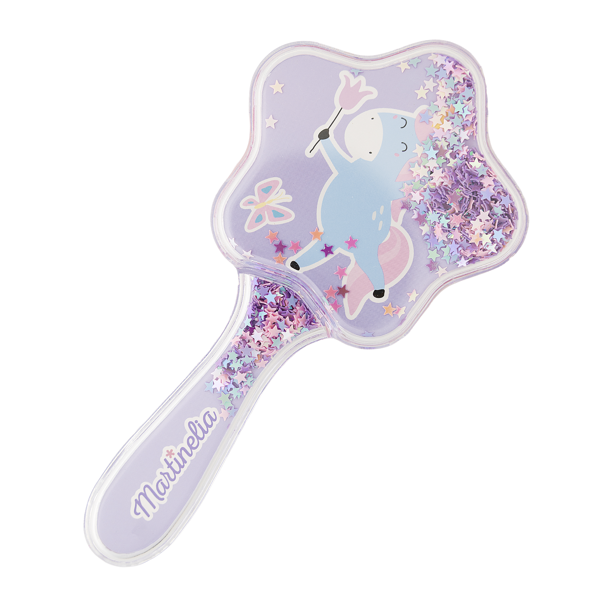 Měkký kartáč na vlasy Martinelia Unicorn je ideální volbou pro šetrné rozčesávání dětských vlasů. Díky měkkým štětinám jemně rozčesává vlasy bez tahání a nepříjemného pocitu, zatímco hravý design s přesýpacími glitry promění každodenní česání v zábavu. Kartáč je vhodný pro děti od 3 let a potěší nejen funkčností, ale i svým kouzelným a barevným provedením, které si děti okamžitě zamilují.