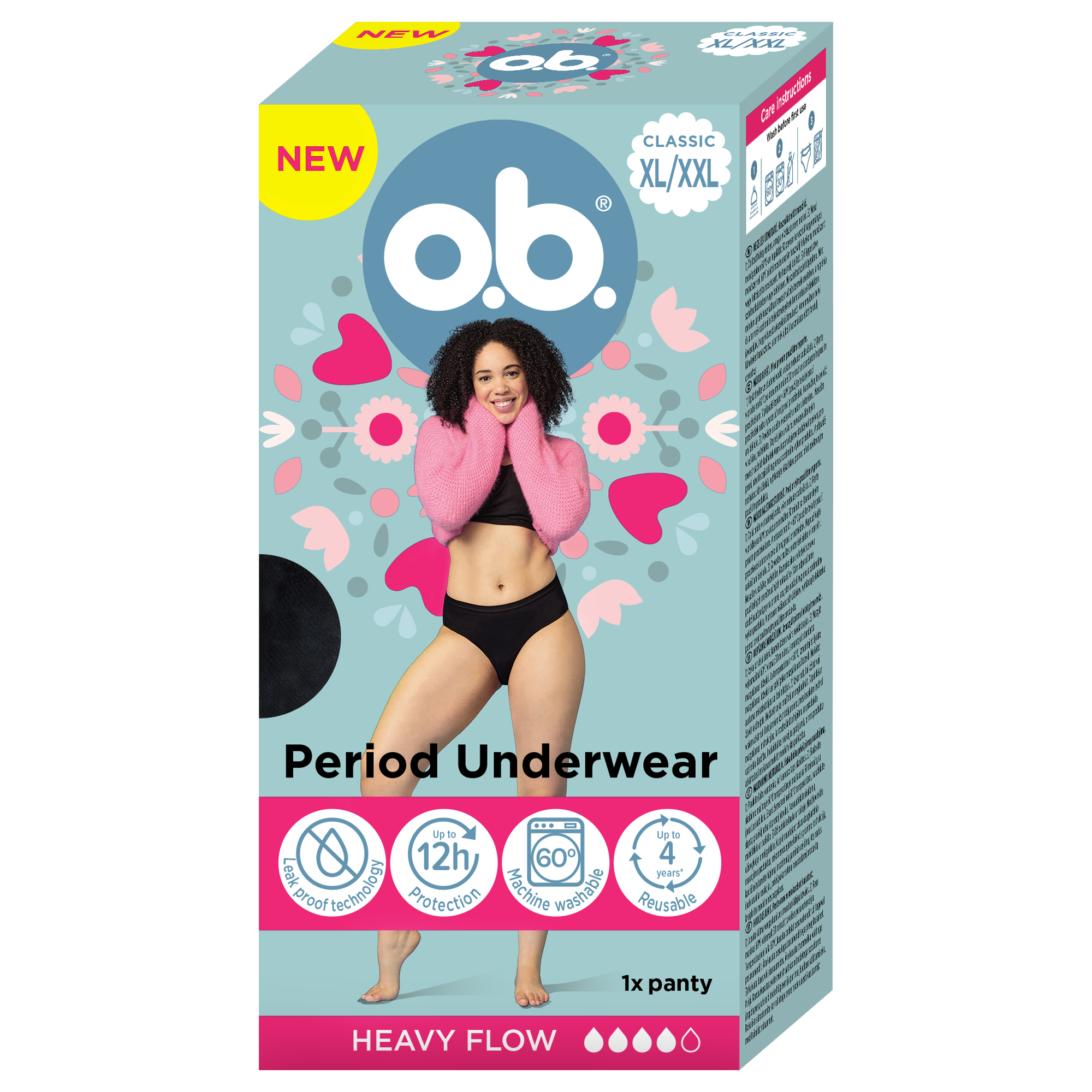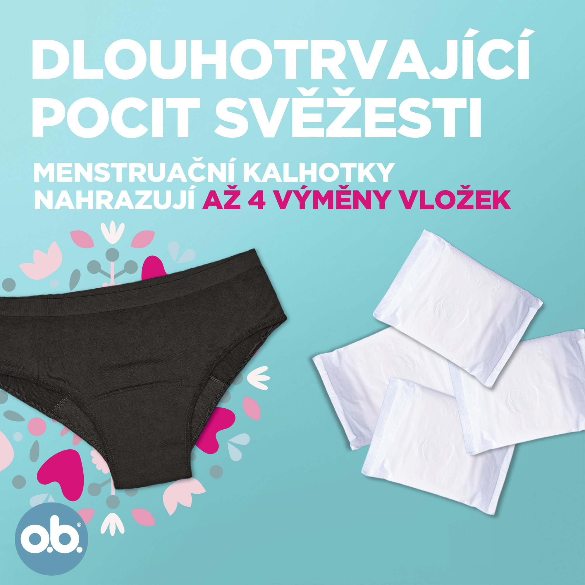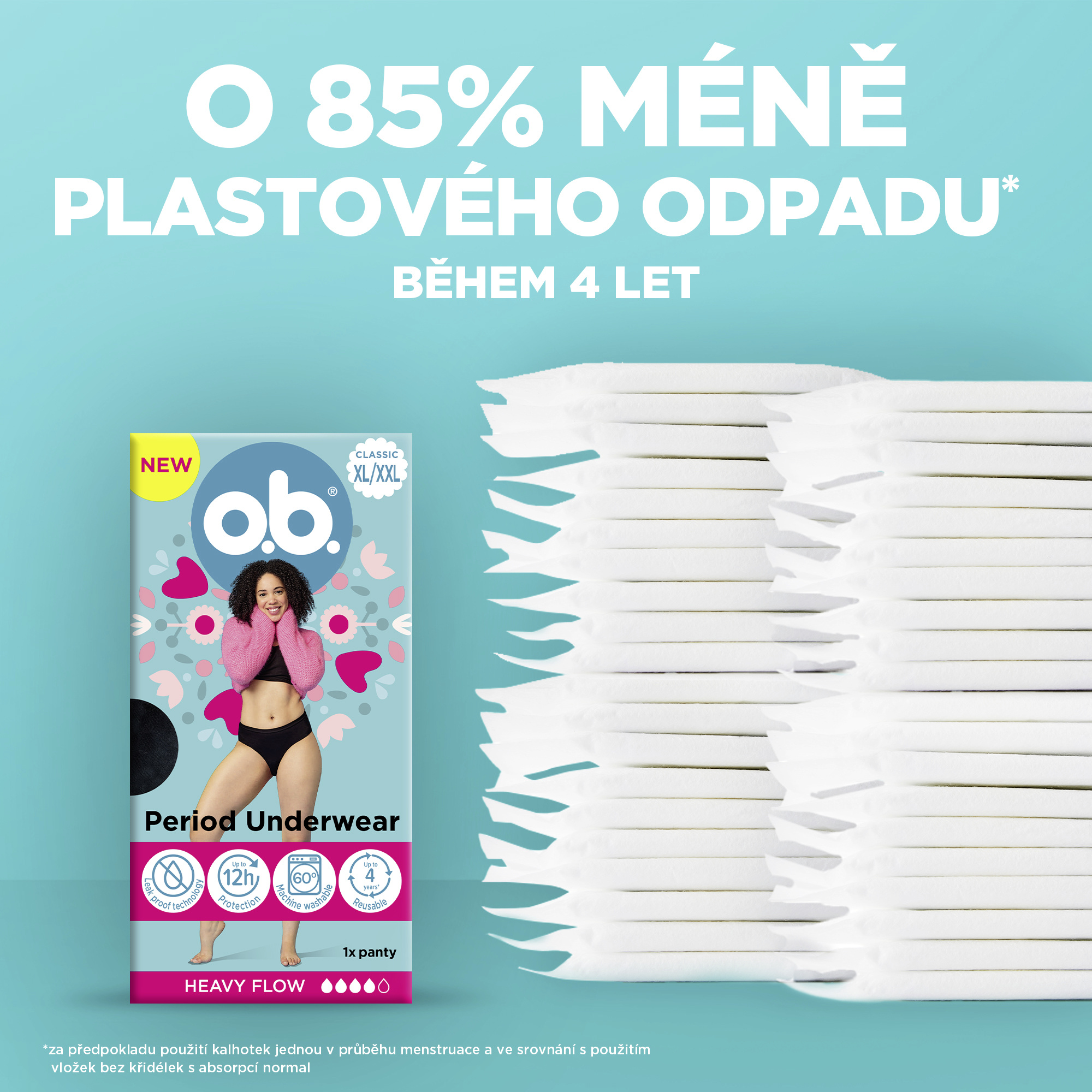 o.b.® menstruační kalhotky vyvinuté Vaším důvěryhodným expertem na menstruaci s více než 70letou zkušeností. S technologií odolnou proti protečení poskytují menstruační kalhotky až 12hodinovou ochranu, lze je prát v pračce na 60°C a jsou znovupoužitelné až po dobu 4 let*. Bez biocidů.