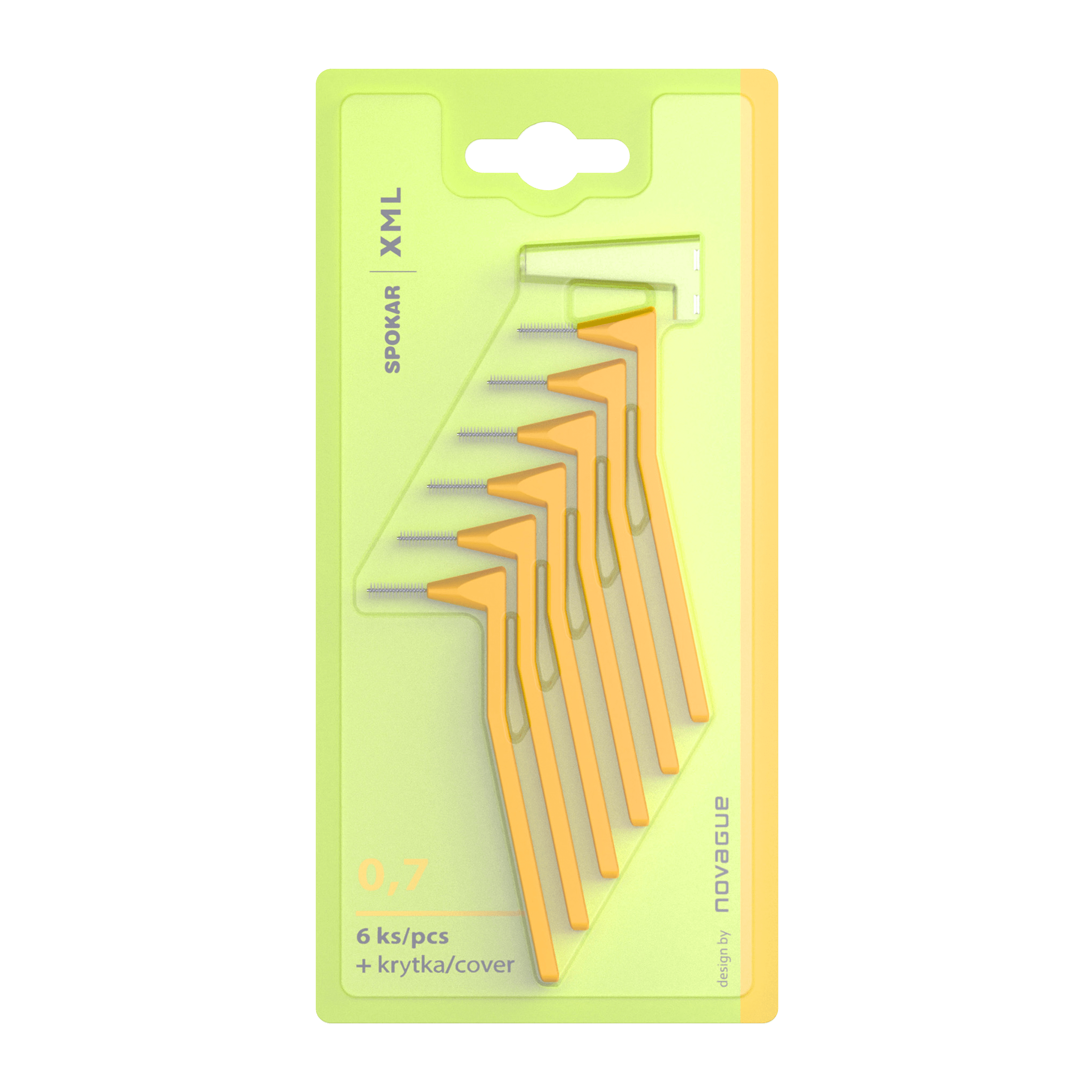 Mezizubní kartáčky SPOKAR XML slouží k preciznímu čištění mezizubních prostorů. Držadlo s průřezem tvaru X se pohodlně drží, zalomený tvar umožňuje snadný dosah do zadních mezizubních prostorů. Tvar kartáčku navrhl přední český designér Petr Novague. Kartáček SPOKAR XML získal prestižní mezinárodní ocenění German Design Award.